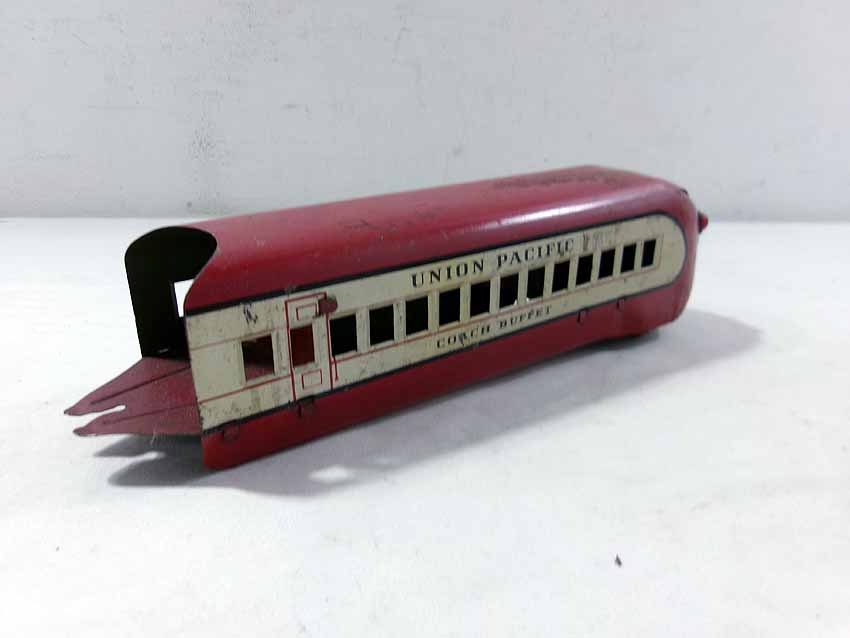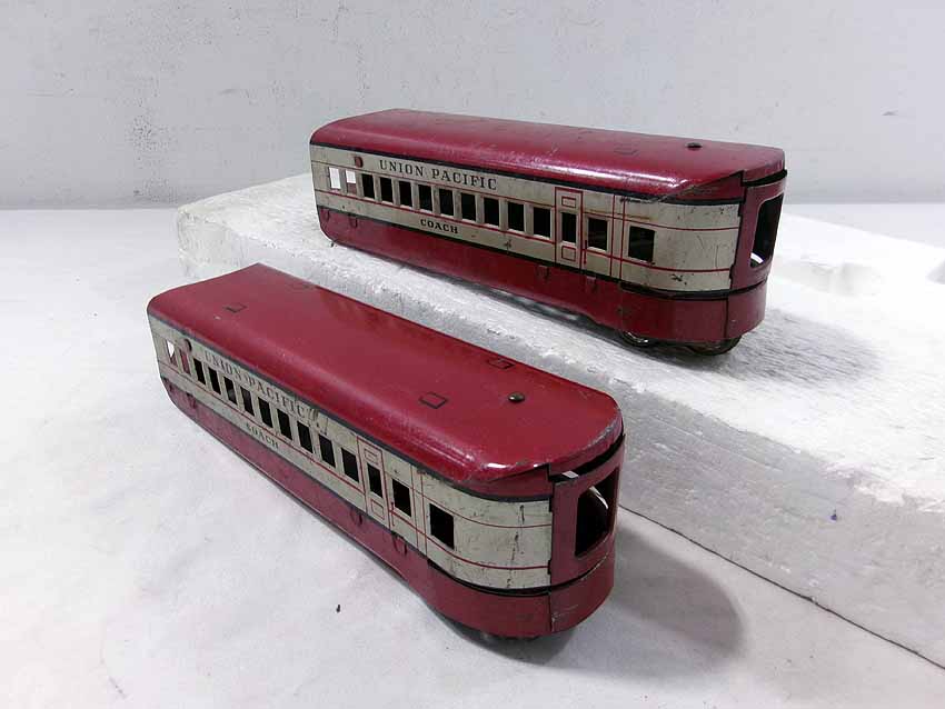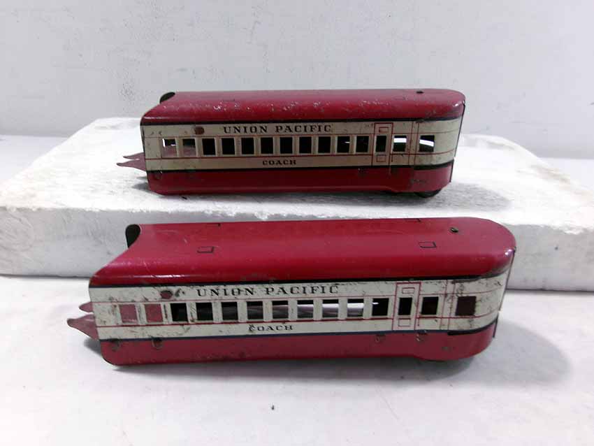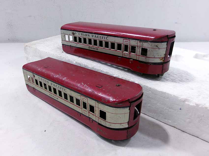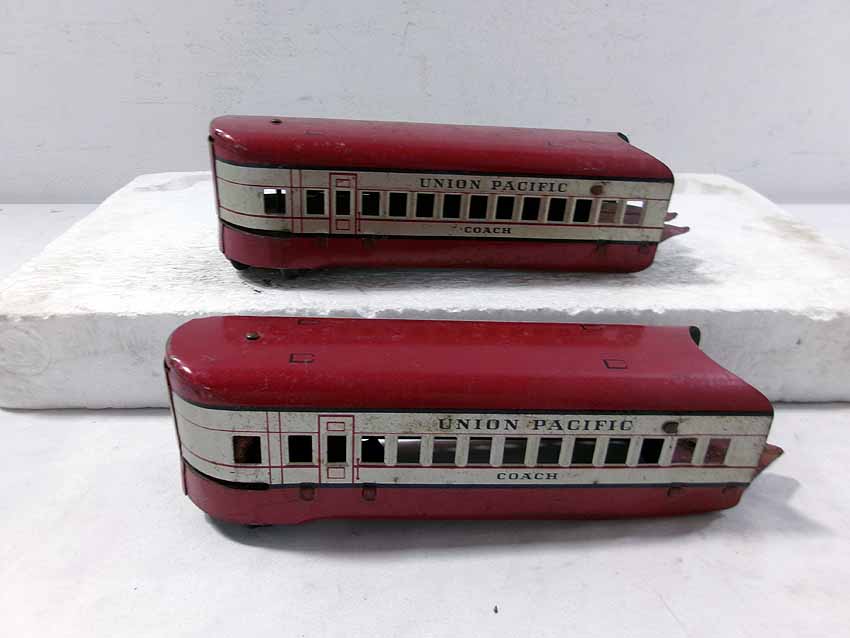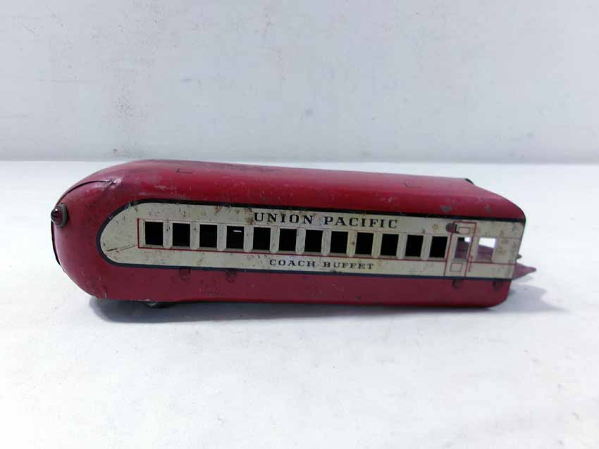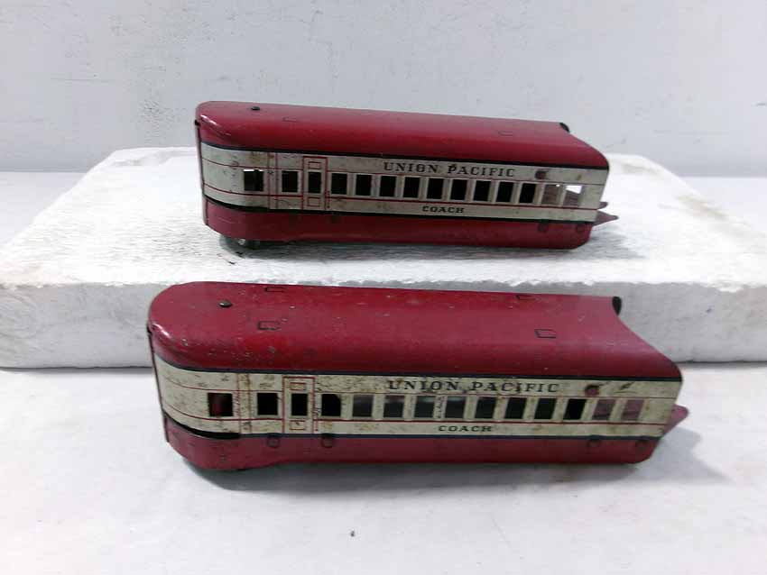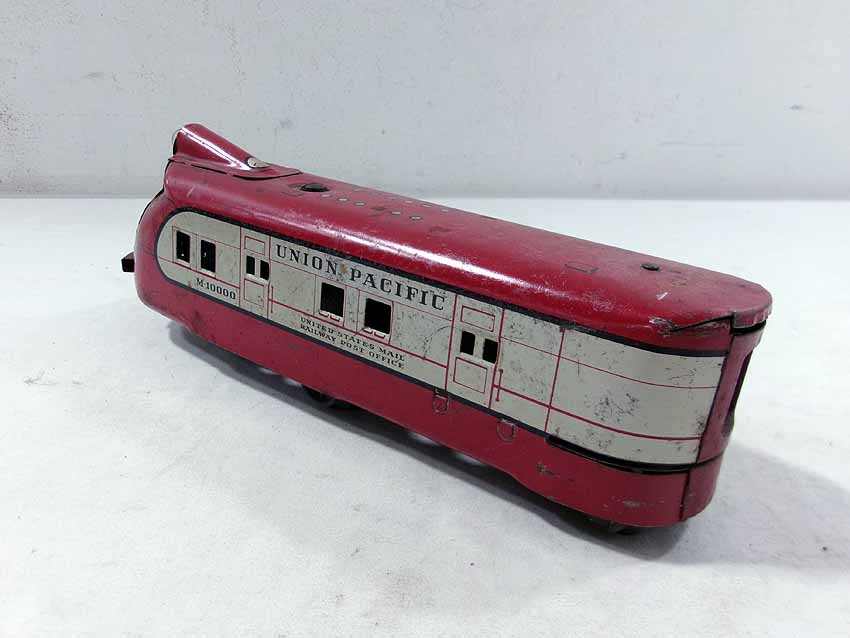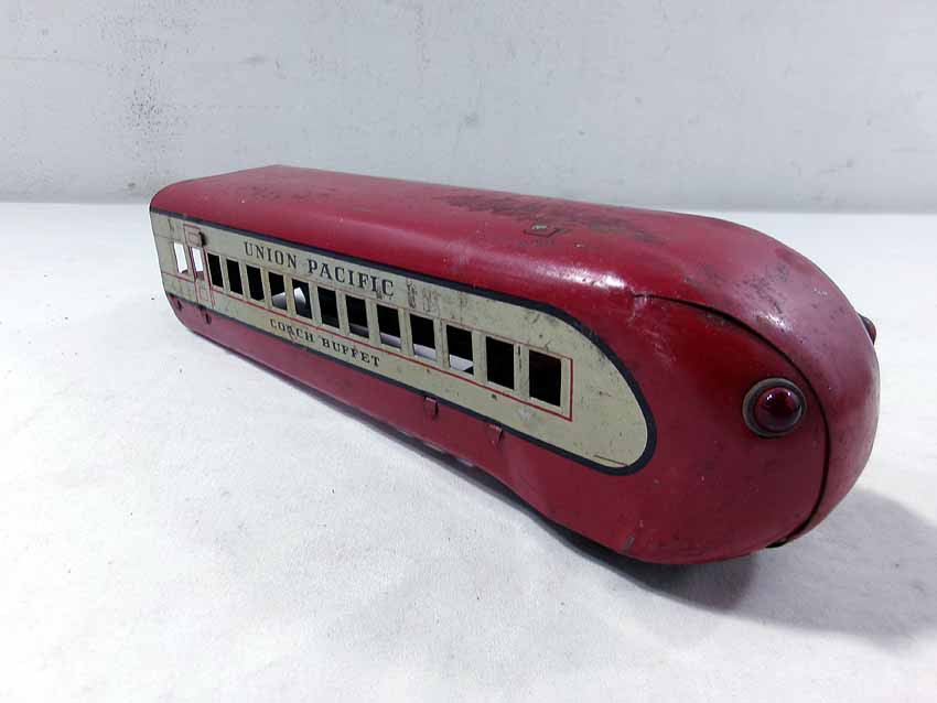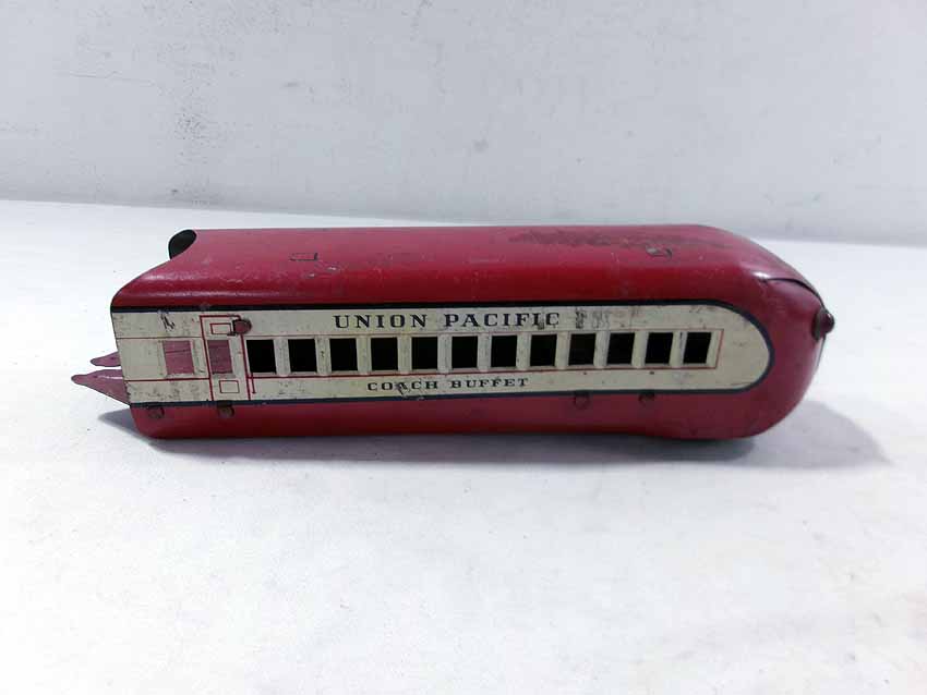 This is the Marx #M10000 UP Streamline Diesel Passenger Set from the 1940s. No Boxes. Examine closely; what is pictured is what you will receive. Please add $35.00 for US-48 Shipping and Insurance (more west of the Mississippi). |