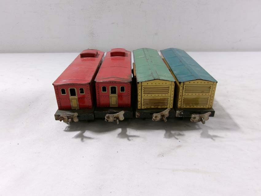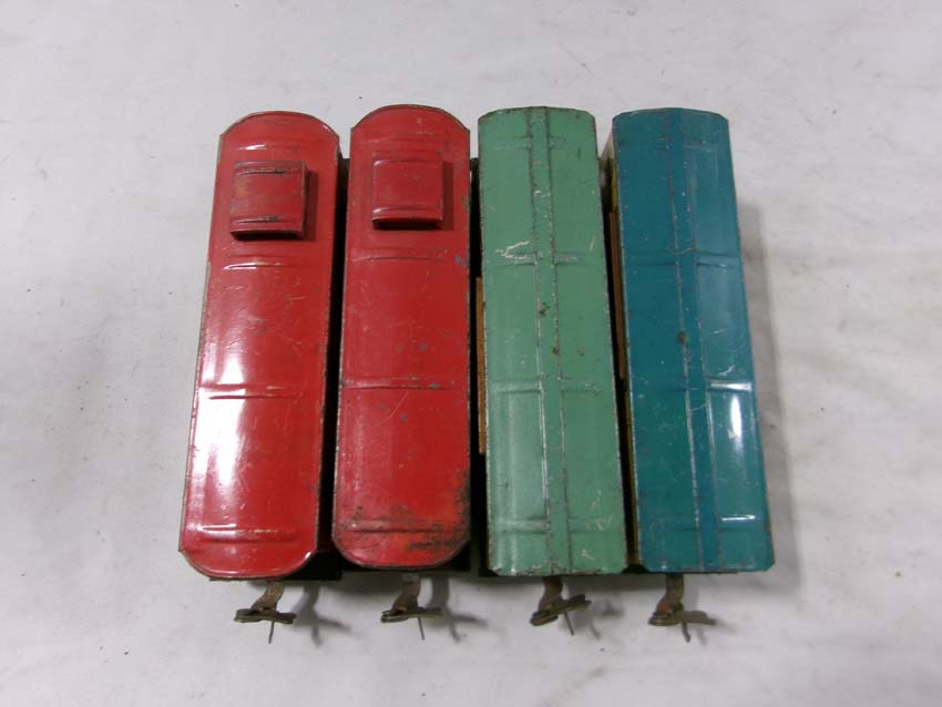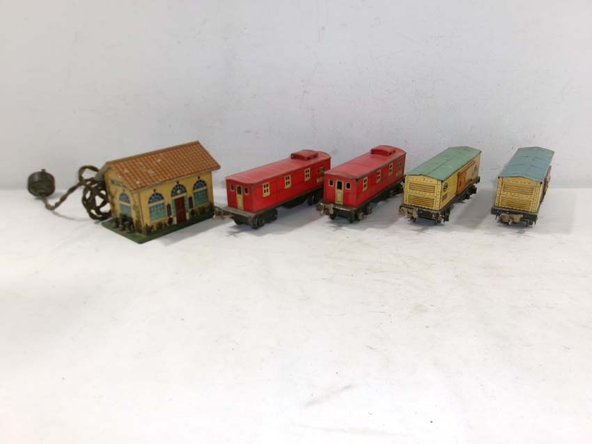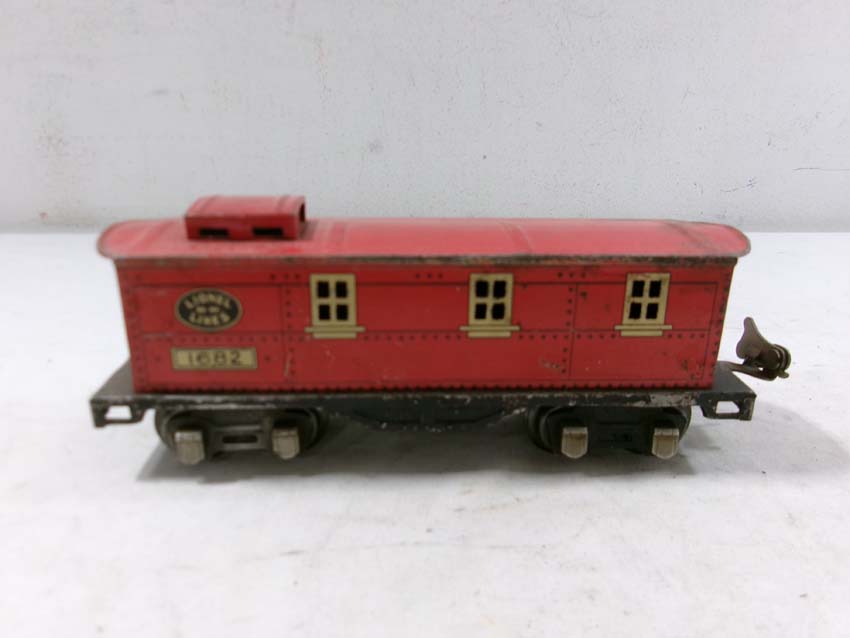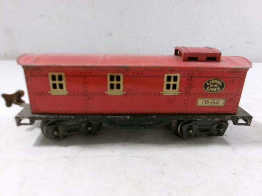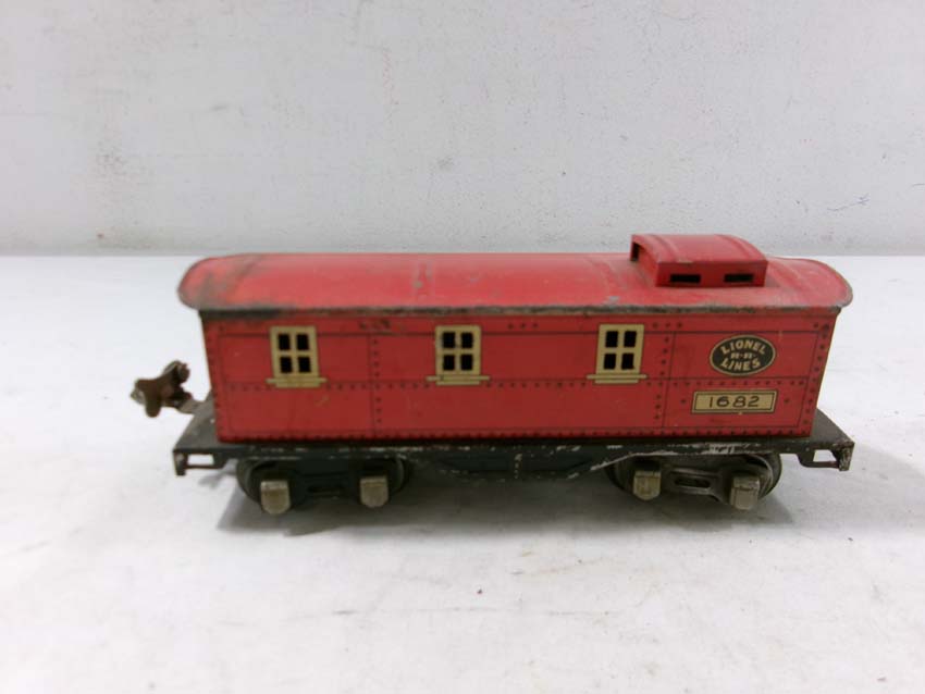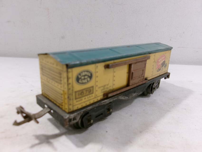 These are two #1679 Baby Ruth Box Cars, 2 #1682 Cabooses and #1017 Transformer Station that Lionel made Pre War. No Boxes. Examine very closely; what is pictured is what you will receive. Please add $45.00 for US-48 Shipping and Insurance (more west of the Mississippi).