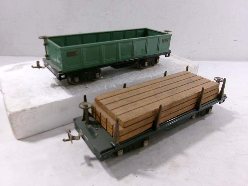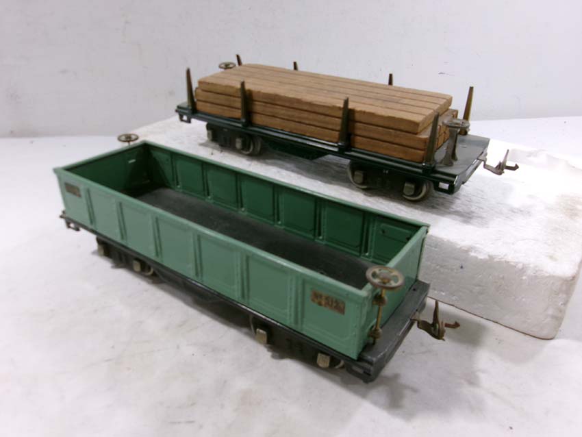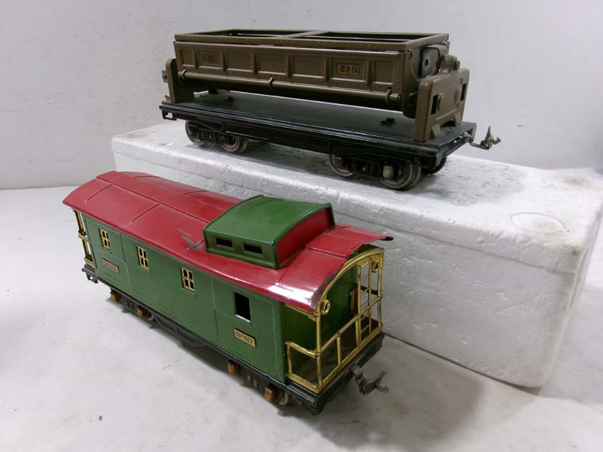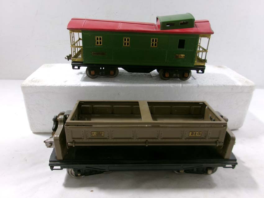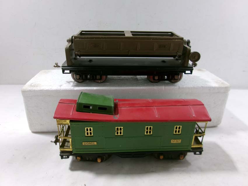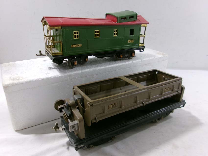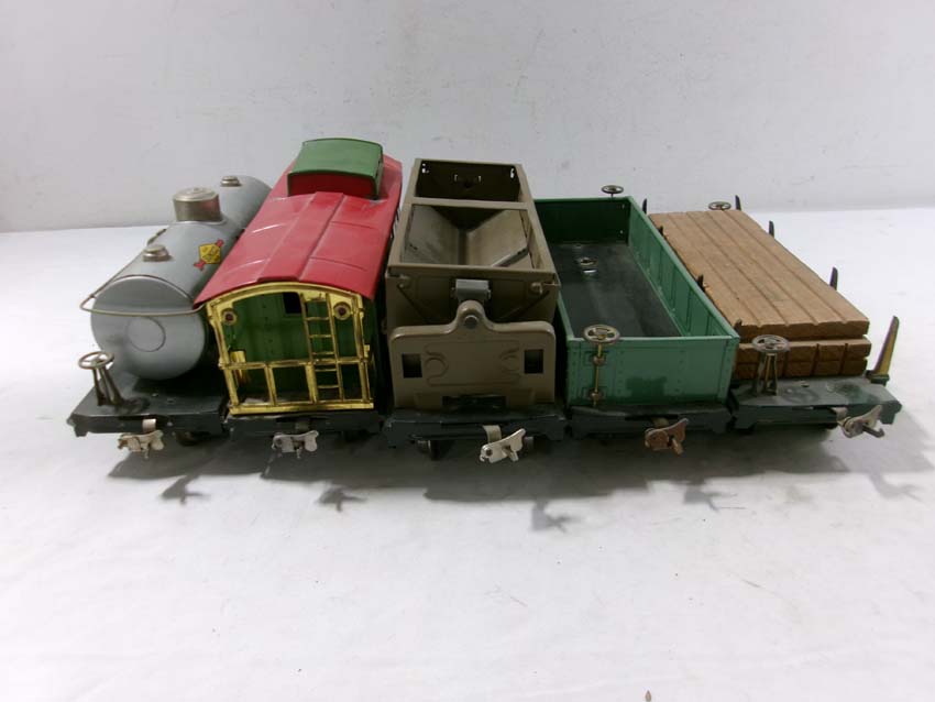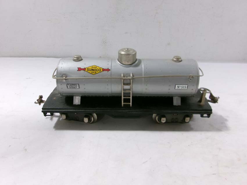 These are the #515 Sunoco Tank Car, #512 Gondola, #218 Operating Dump Car, #517 Caboose, and #511 Flat Car w/Lumber that Lionel made Standard Gauge Pre War. Original Box. Examine very closely; what is pictured is what you will receive. Please add $60.00 for US-48 Shipping and Insurance (more west of the Mississippi).