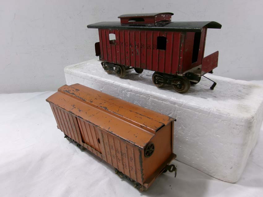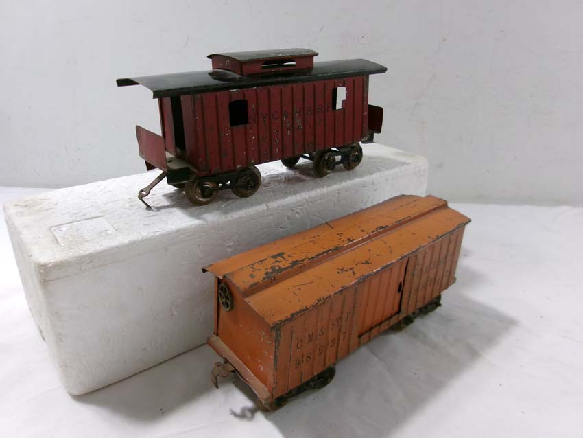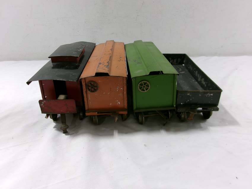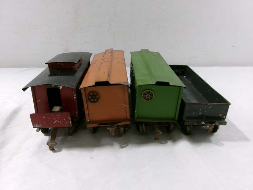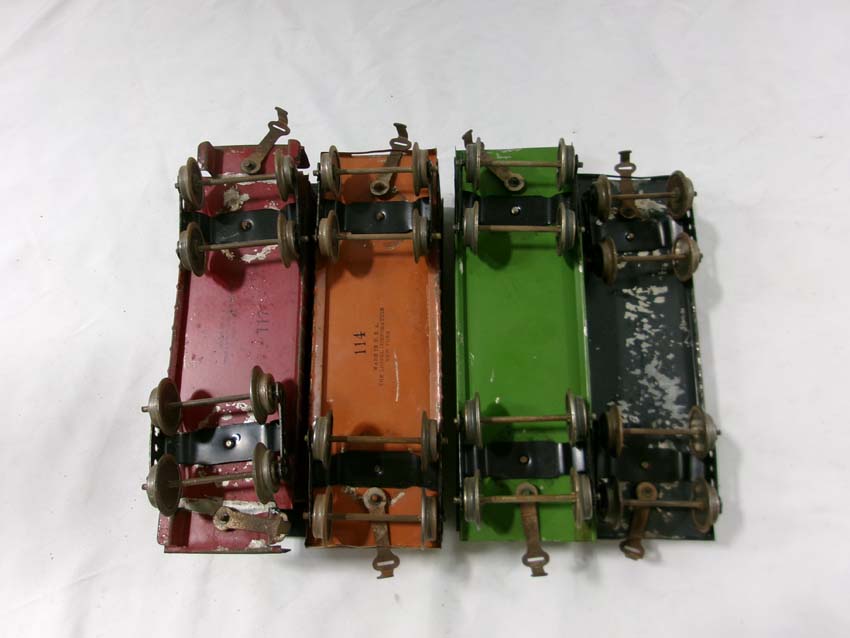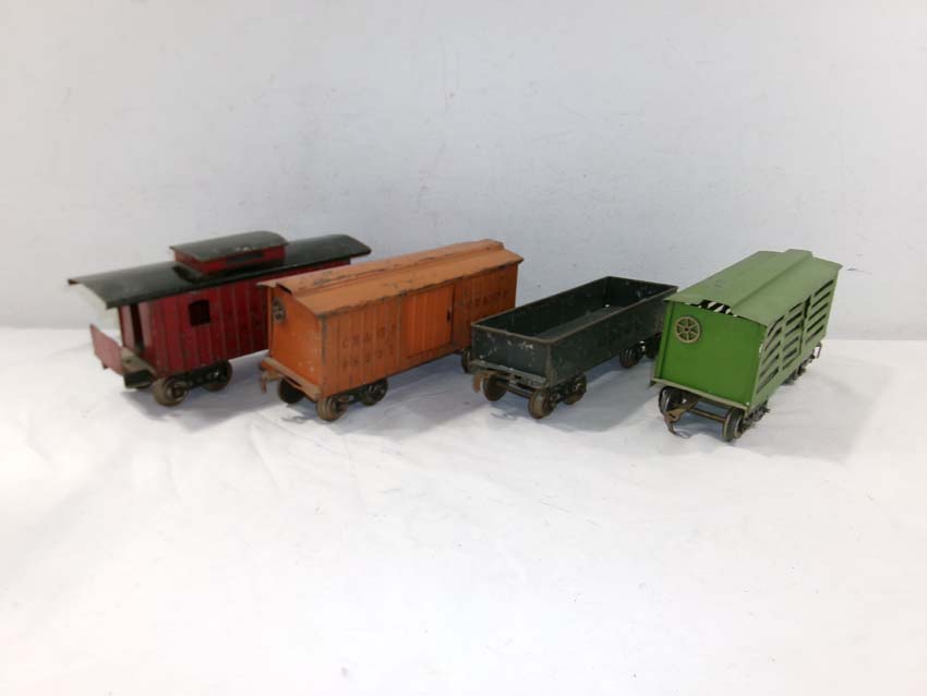 These are the Standard Gauge #112 Lake Shore Gondola, #113 Cattle Car, #114 CM&StP Box Car and #117 NYC&HRRR Caboose that Lionel made in the 1910s/20s. No Boxes. Examine very closely; what is pictured is what you will receive. Please add $50.00 for US-48 Shipping and Insurance (more west of the Mississippi).
