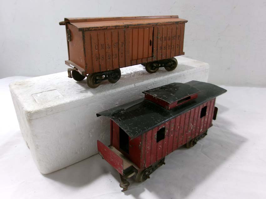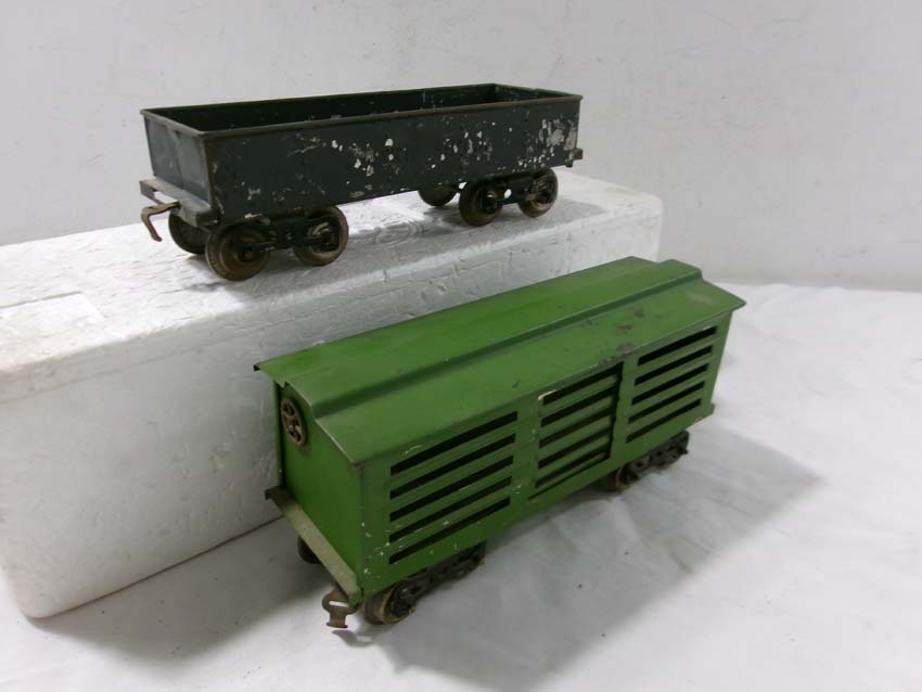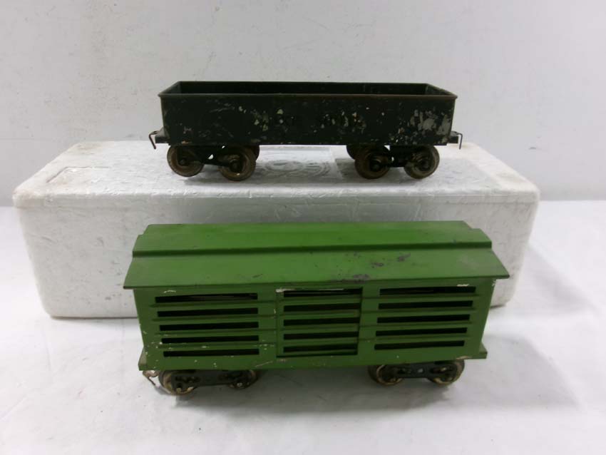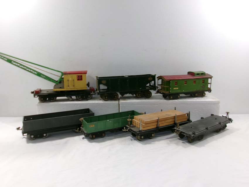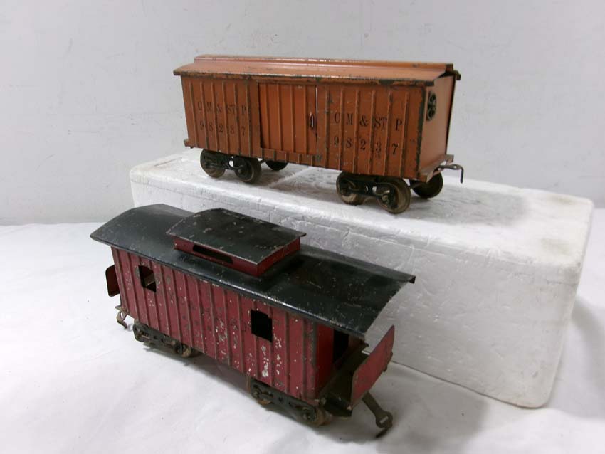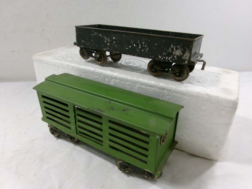 These are the Standard Gauge #112 Lake Shore Gondola, #113 Cattle Car, #114 CM&StP Box Car and #117 NYC&HRRR Caboose that Lionel made in the 1910s/20s. No Boxes. Examine very closely; what is pictured is what you will receive. Please add $50.00 for US-48 Shipping and Insurance (more west of the Mississippi).