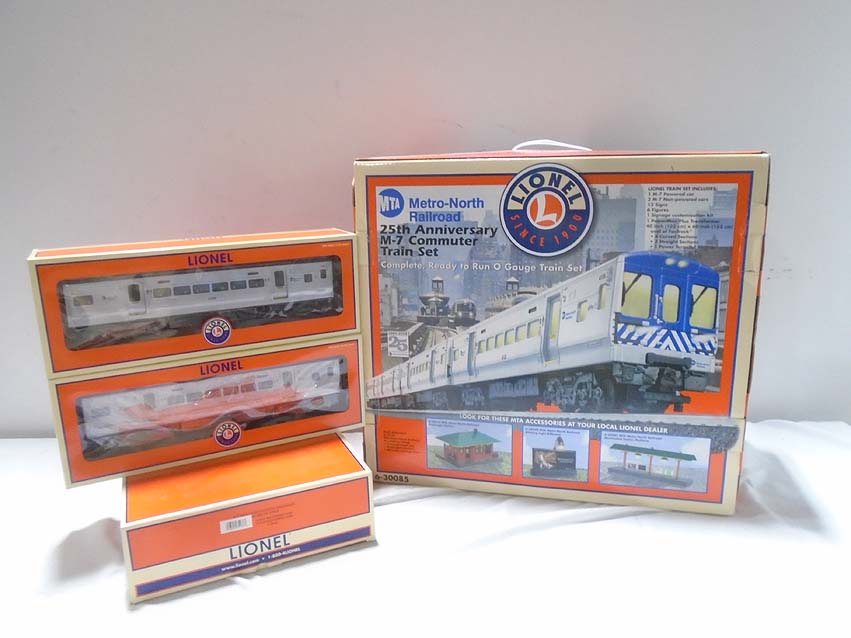 Lionel #30085 MTA Metro North RR 25th Anniversary M-7 Commuter Train Set (missing transformer) and #35133 MTA Metro North RR M-7 Add-On 2-Pack/OBs
