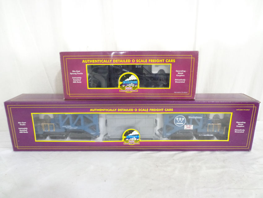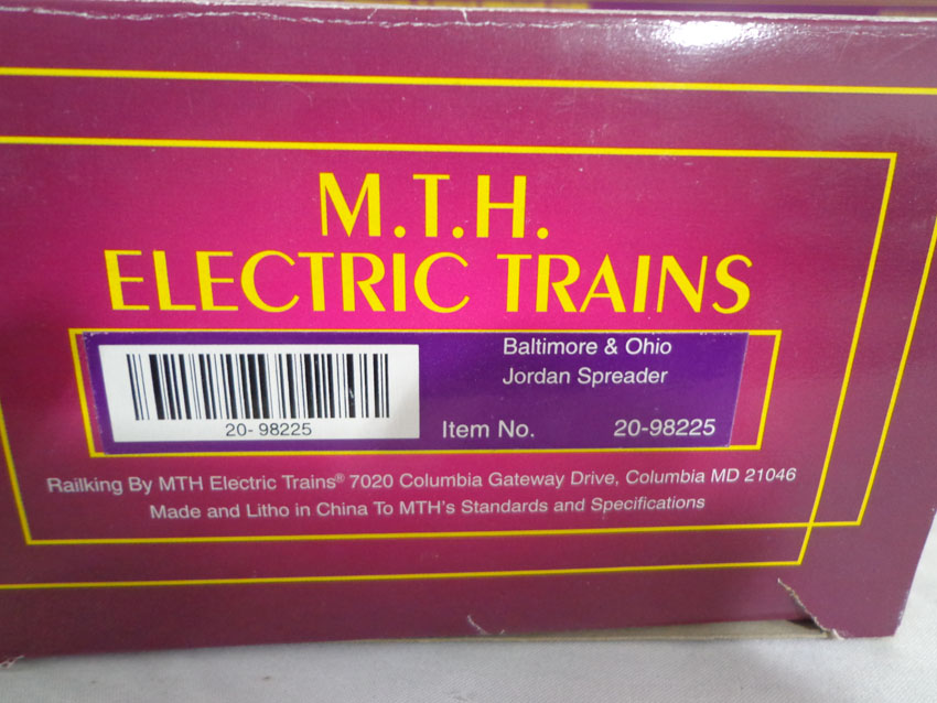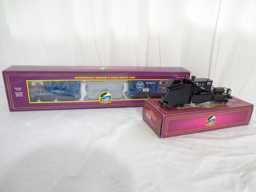 These are the #20-98232 Westinghouse Schnabel Flat Car and the #20-98225 Baltimore and Ohio Jordan Spreader that MTH made a few years ago. Our Opinion is that they are generally in Mint Condition. Original Boxes. All Original in our Opinion. Please add $45.00 for US-48 Shipping and Insurance (more west of the Mississippi).