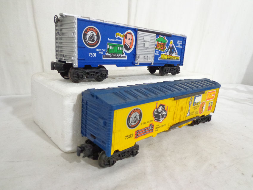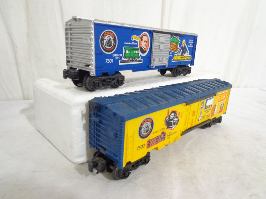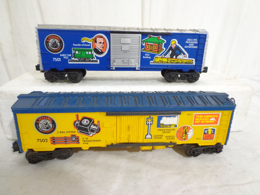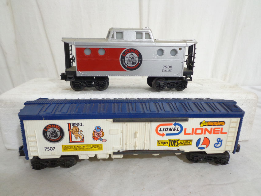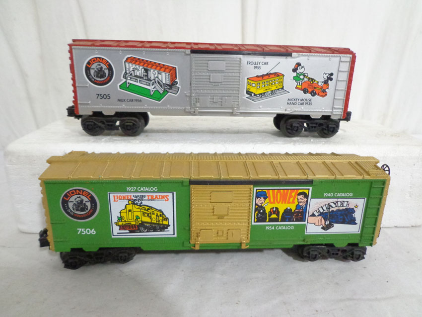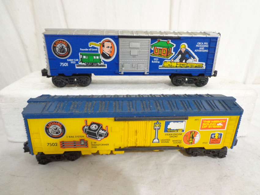 This is the #1585 75th Anniversary Set produced by Lionel circa 1975. This Set includes the #7500 U36B Diesel, the #7506 Famous Catalogs Box Car, the #7505 On-Track Accessories Box Car, the #7501 Founders Box Car, the #7507 Logo Reefer, the #7504 Off-Track Accessories Covered Hopper, the #7502 Famous Engines Reefer Car, the #7503 Innovations Reefer Car and the #7508 N5C Caboose. Our Opinion is that the Set is generally in Excellent Condition. No Boxes. Examine closely; what is pictured is what you will receive. Please add $50.00 for US-48 Shipping and Insurance (more west of Mississippi).