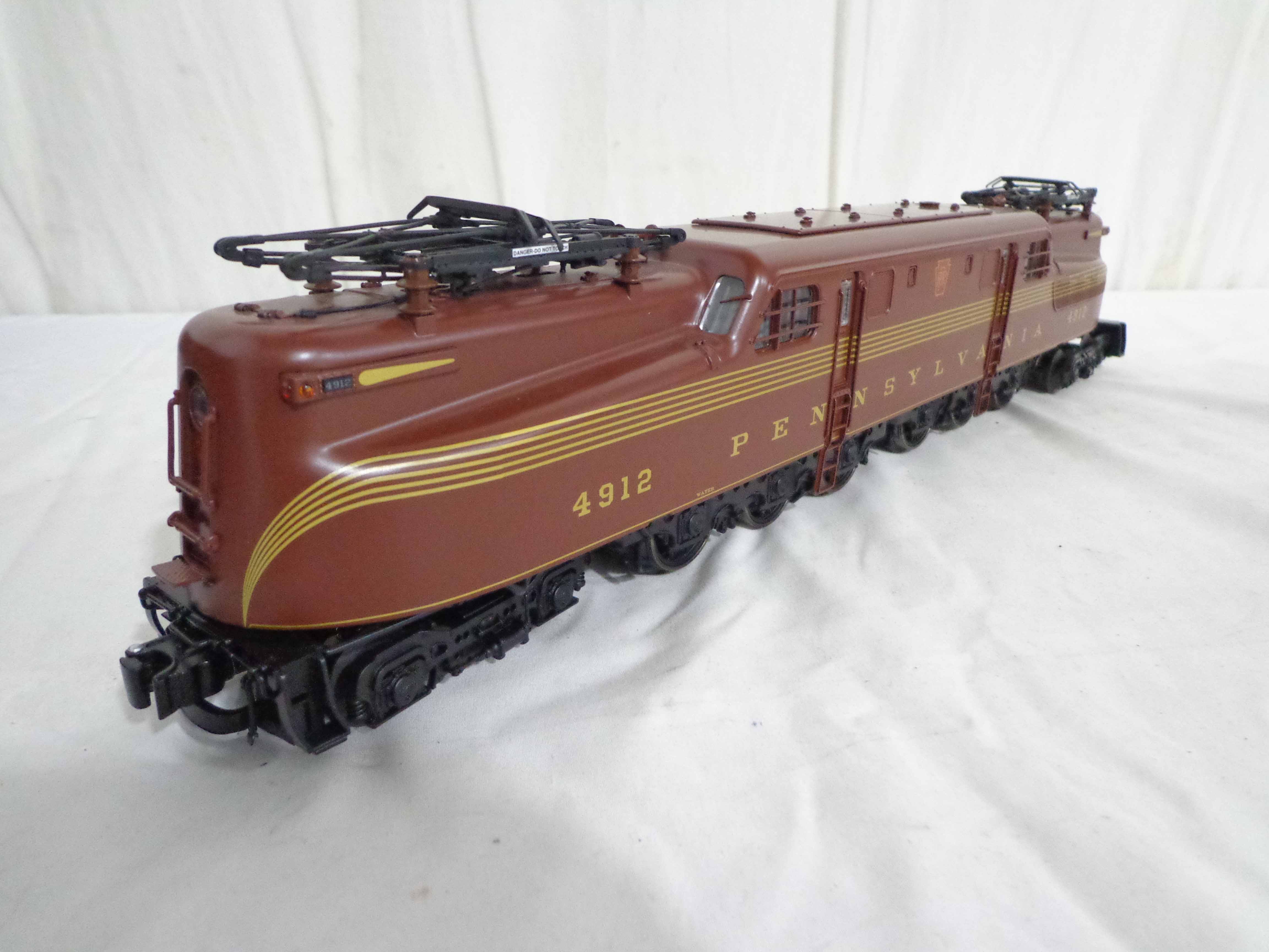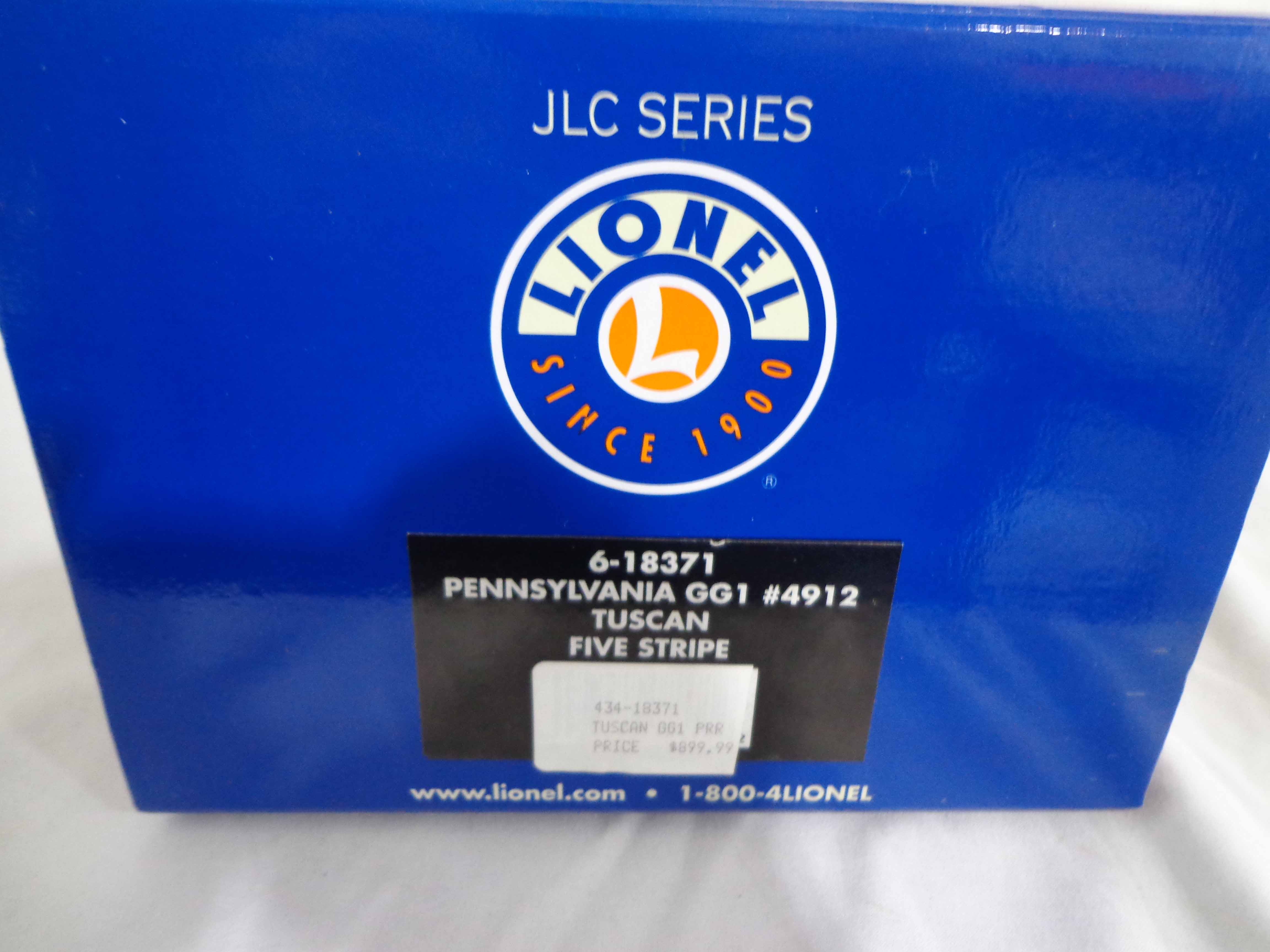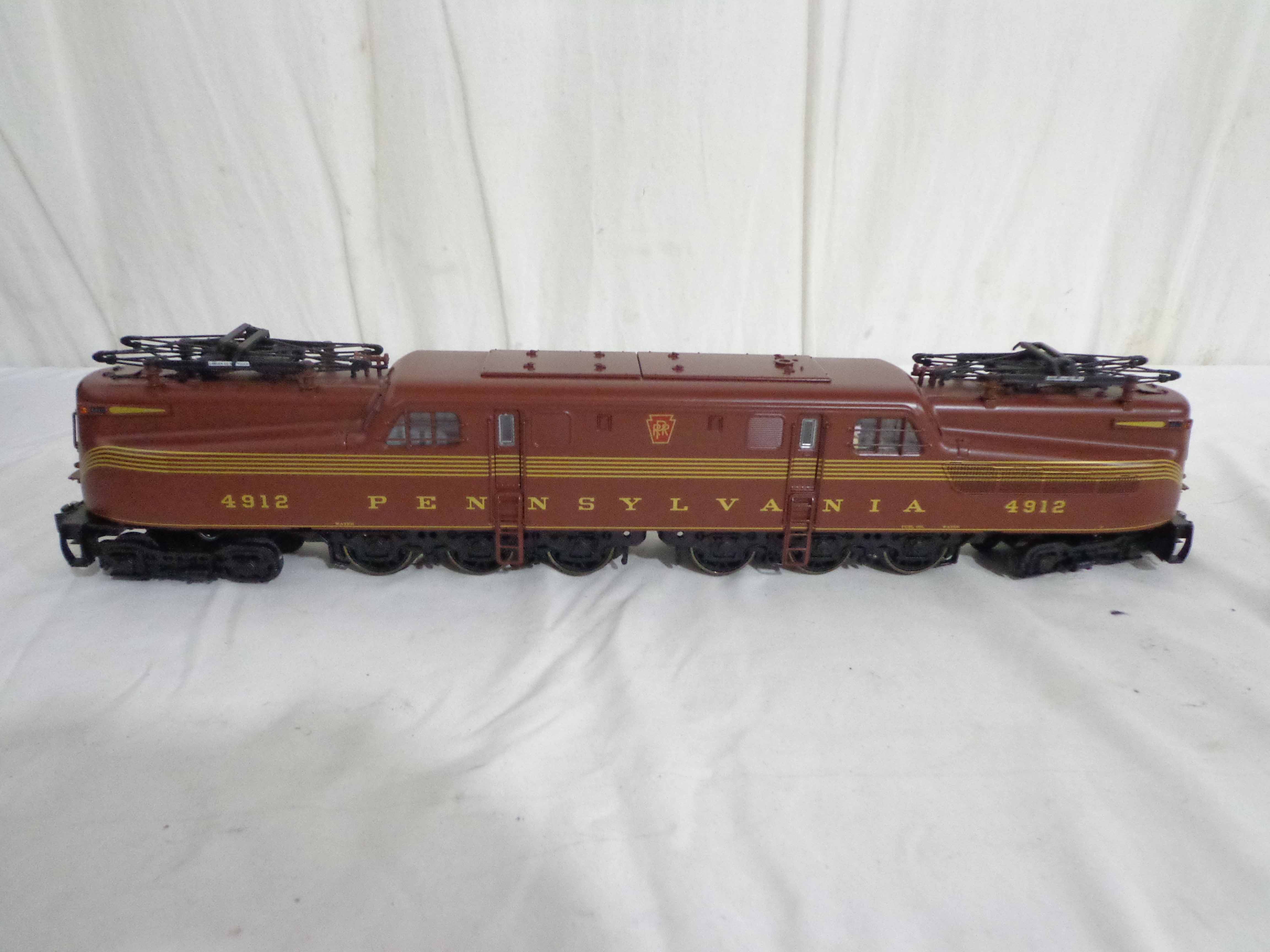 This is the #18371 Pennsylvania GG1 4912 Tuscan Five Stripe Scale Electric Engine that Lionel made a few years ago. Part of the Premium JLC Series, it features Command Control, the Odyssey System, Railsounds and Electrocouplers. Our Opinion is that it is generally in Like New Condition. Original Box. All Original in our Opinion. Please add $50.00 for US-48 Shipping and Insurance (more west of the Mississippi).