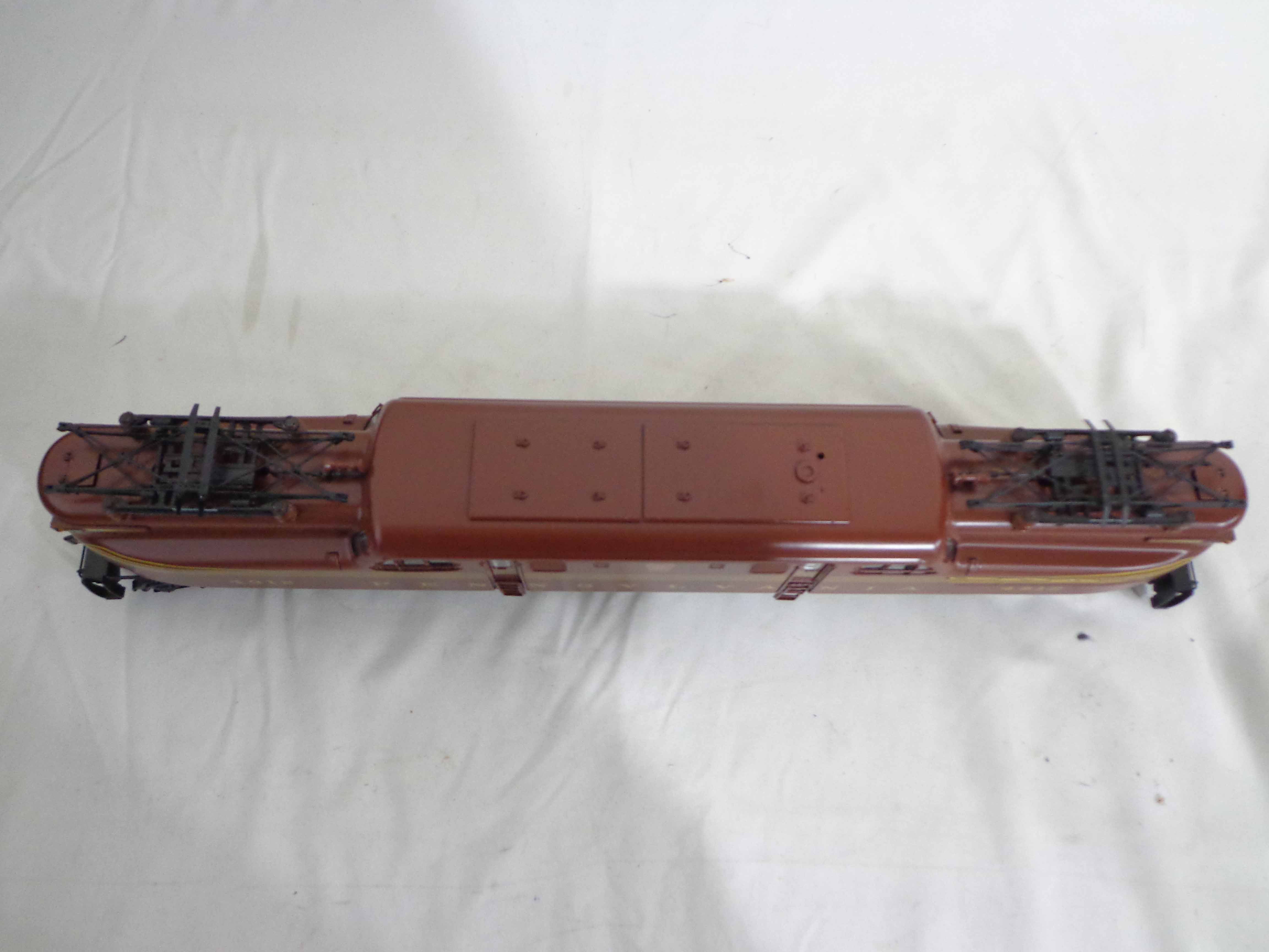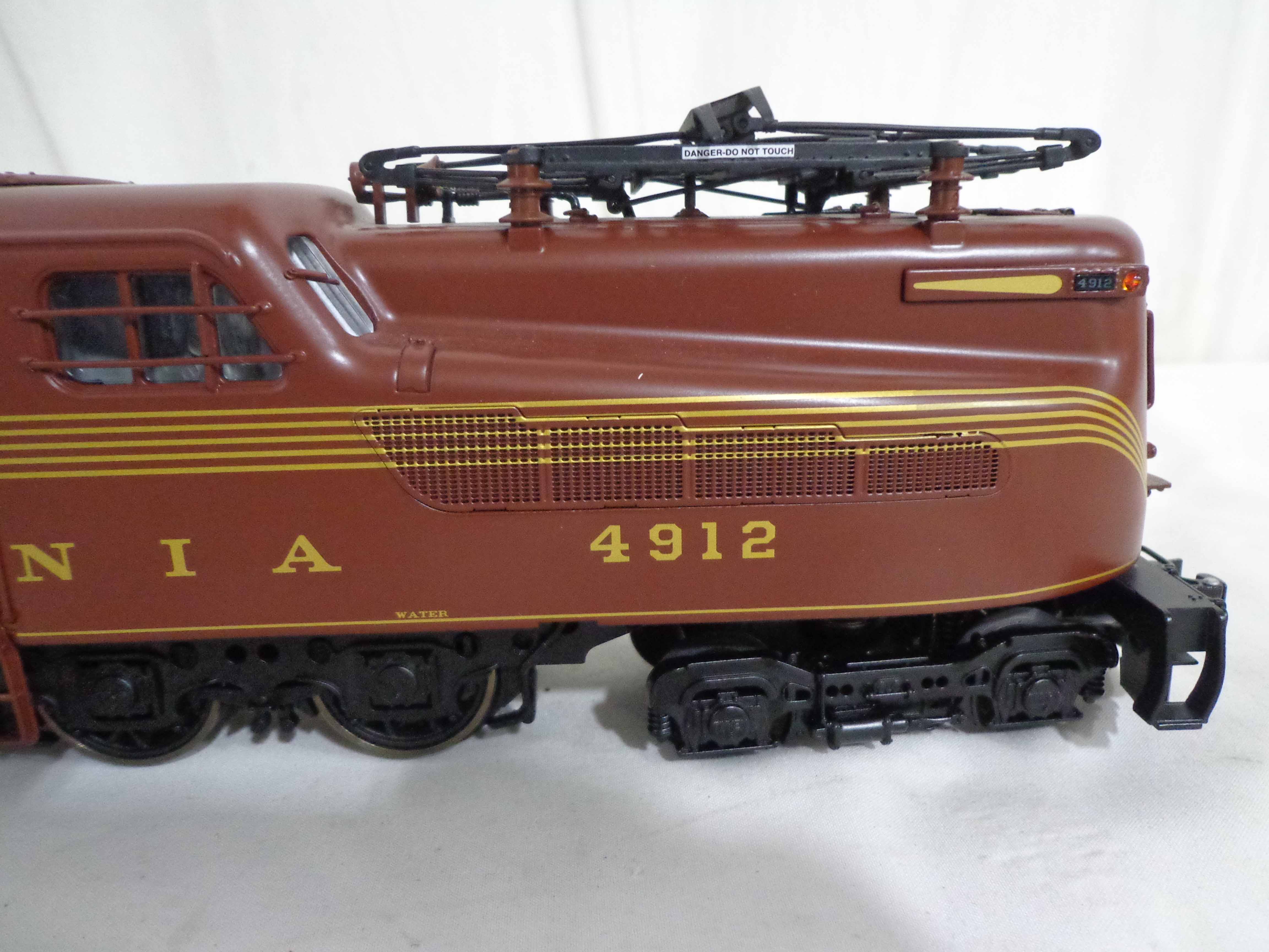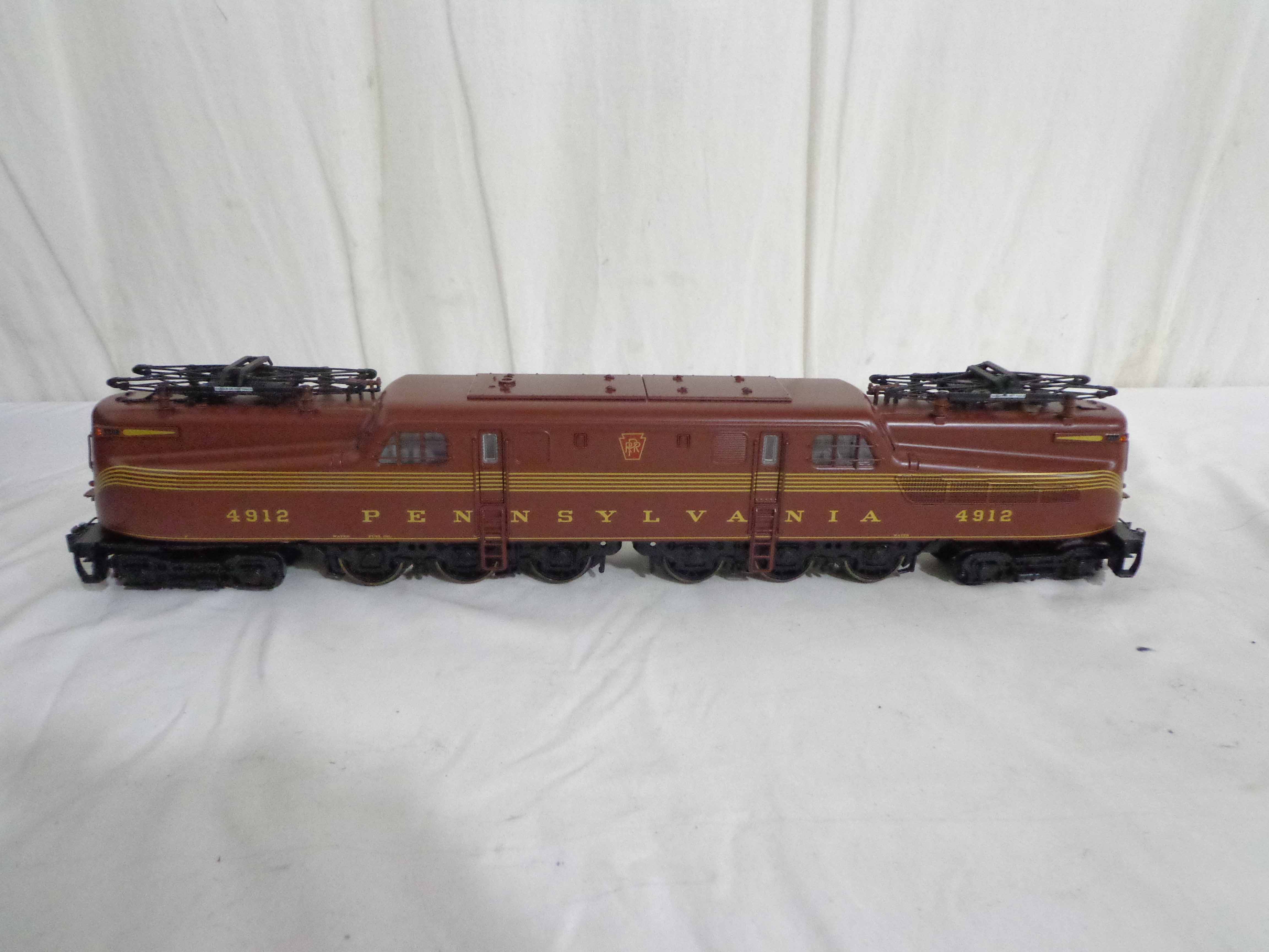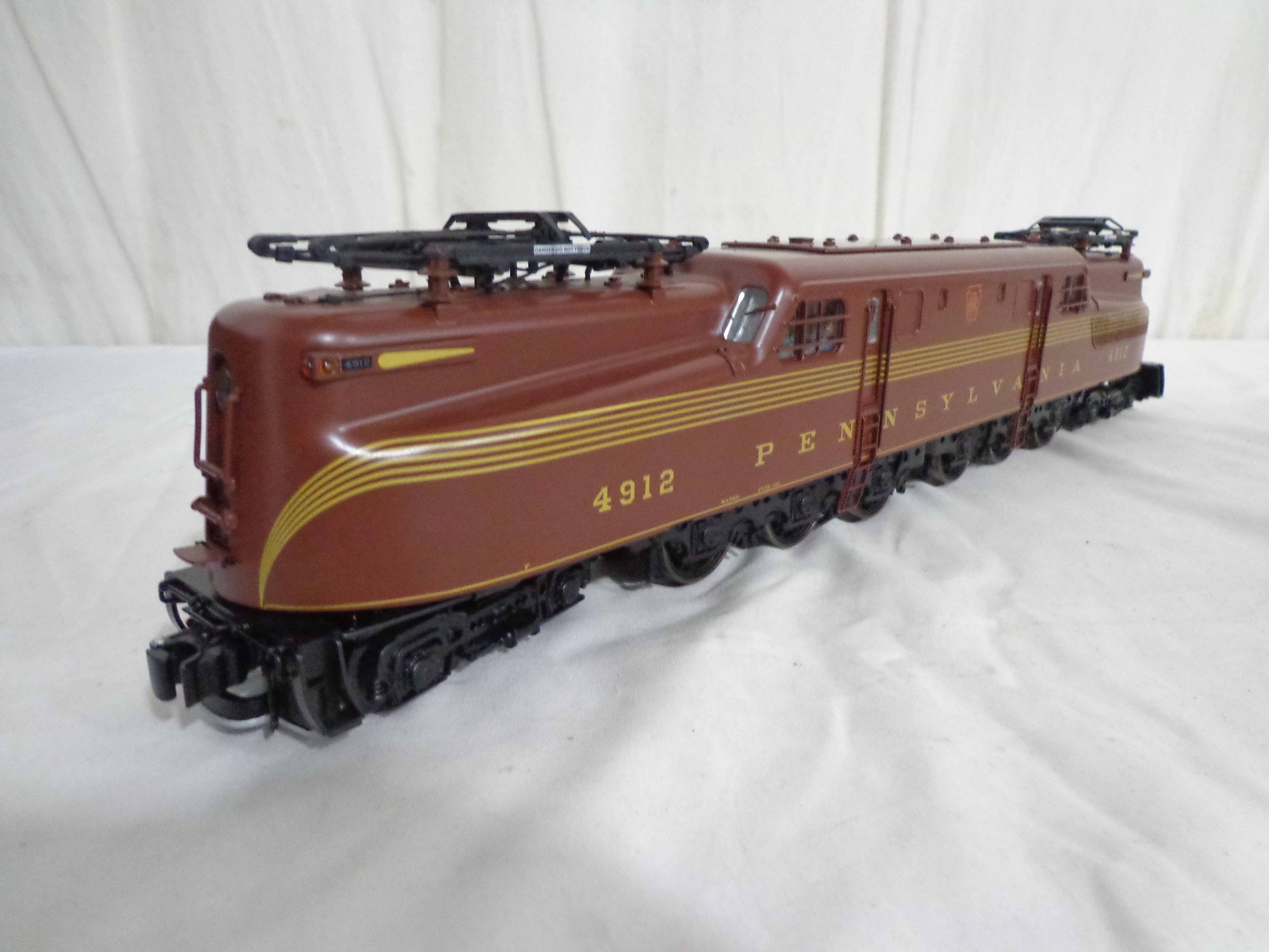 This is the #18371 Pennsylvania GG1 4912 Tuscan Five Stripe Scale Electric Engine that Lionel made a few years ago. Part of the Premium JLC Series, it features Command Control, the Odyssey System, Railsounds and Electrocouplers. Our Opinion is that it is generally in Like New Condition. Original Box. All Original in our Opinion. Please add $50.00 for US-48 Shipping and Insurance (more west of the Mississippi).