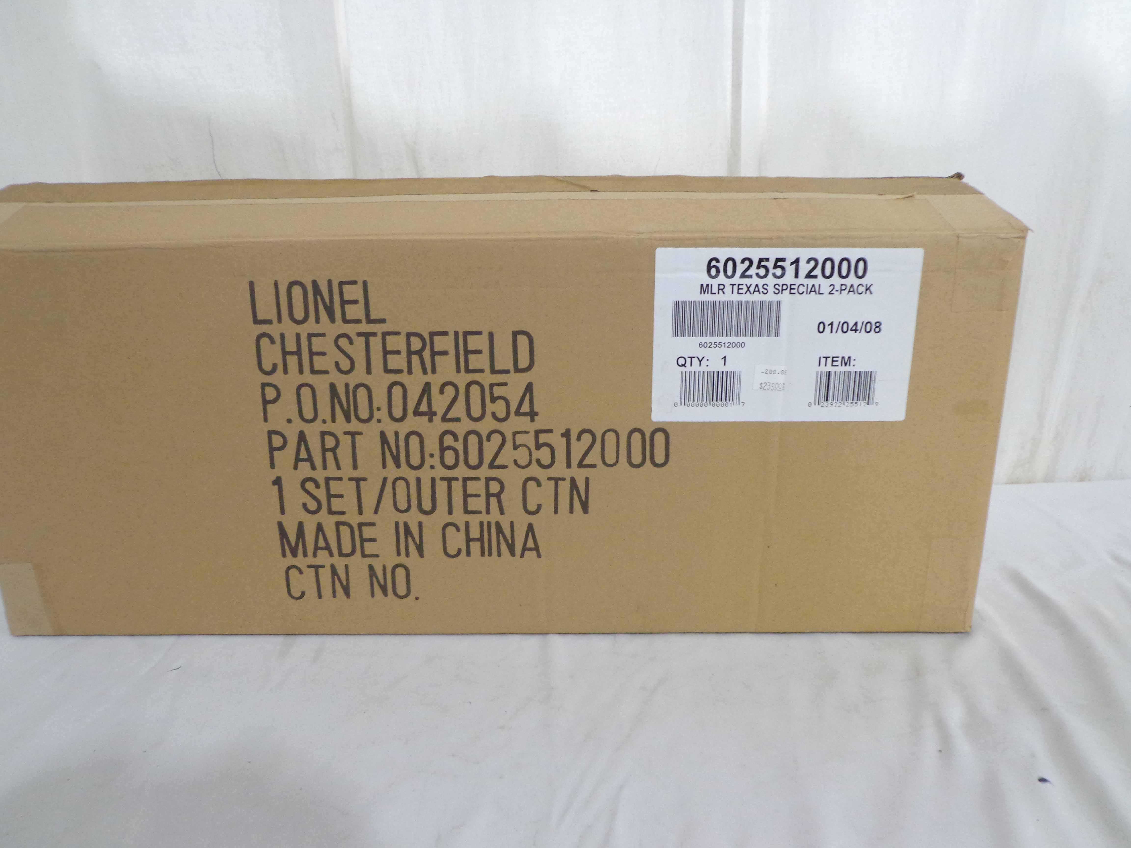 This is the #25512 Texas Special Aluminum Car (2-Pack) that Lionel made a few years ago. Our Opinion is that the Set is generally in Mint Condition. Original Box. All Original in our Opinion. Please add $40.00 for US-48 Shipping and Insurance (more west of the Mississippi).