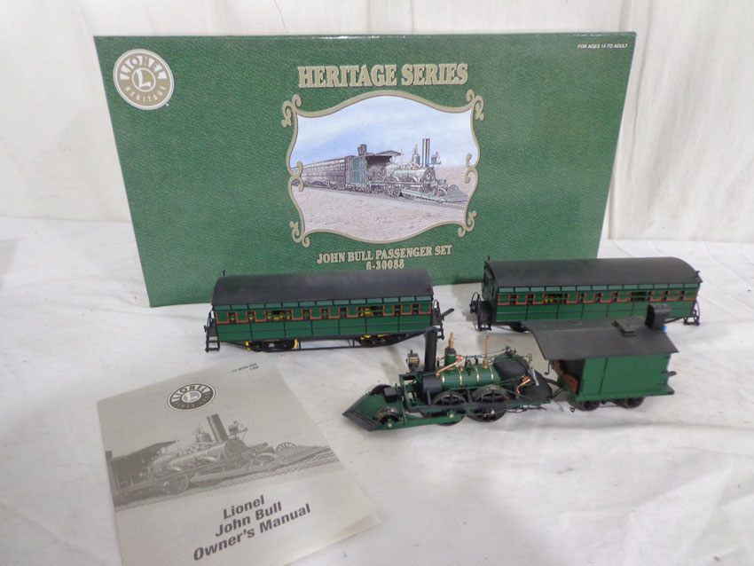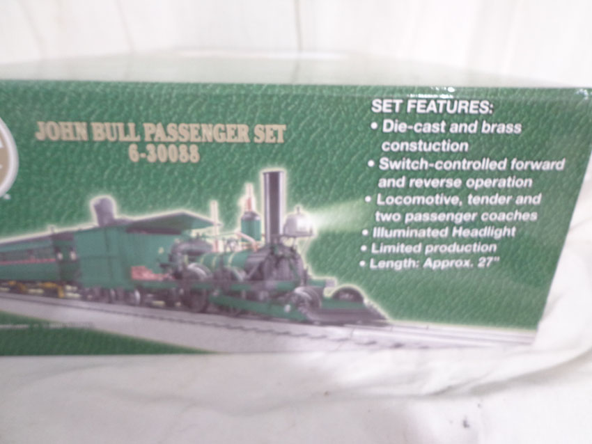 This is the #30088 John Bull Passenger Set that Lionel made circa 2008 for O Gauge. Our Opinion is that this Set is generally in Mint Condition. Original Box. All Original in our Opinion. Please add $35.00 for US-48 Shipping and Insurance (more west of the Mississippi). |