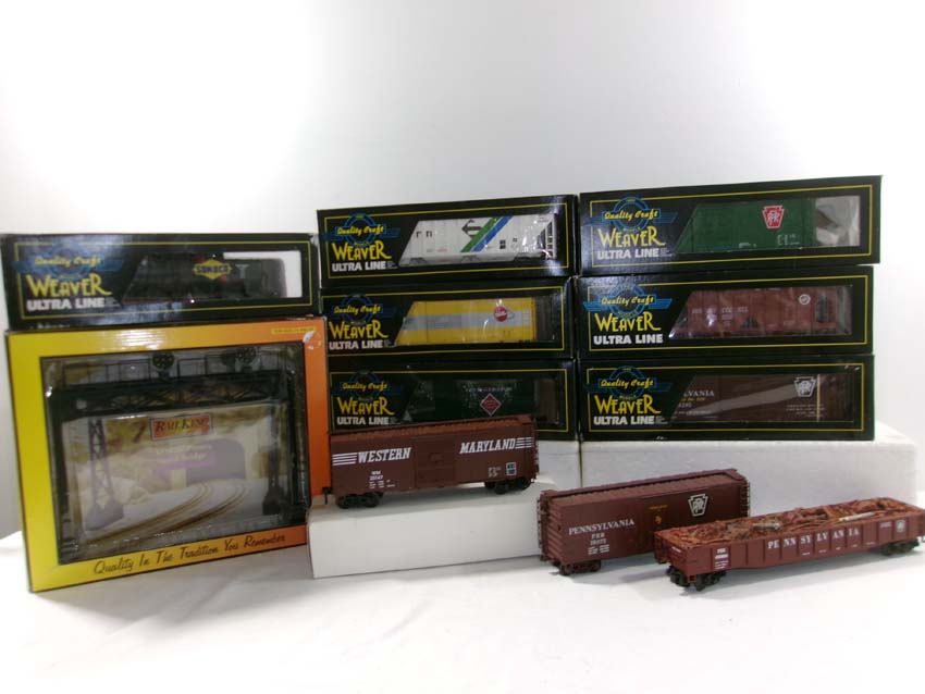 11 Assorted MTH/Atlas/Weaver Assorted Freight Cars & Signal Bridge/OBs