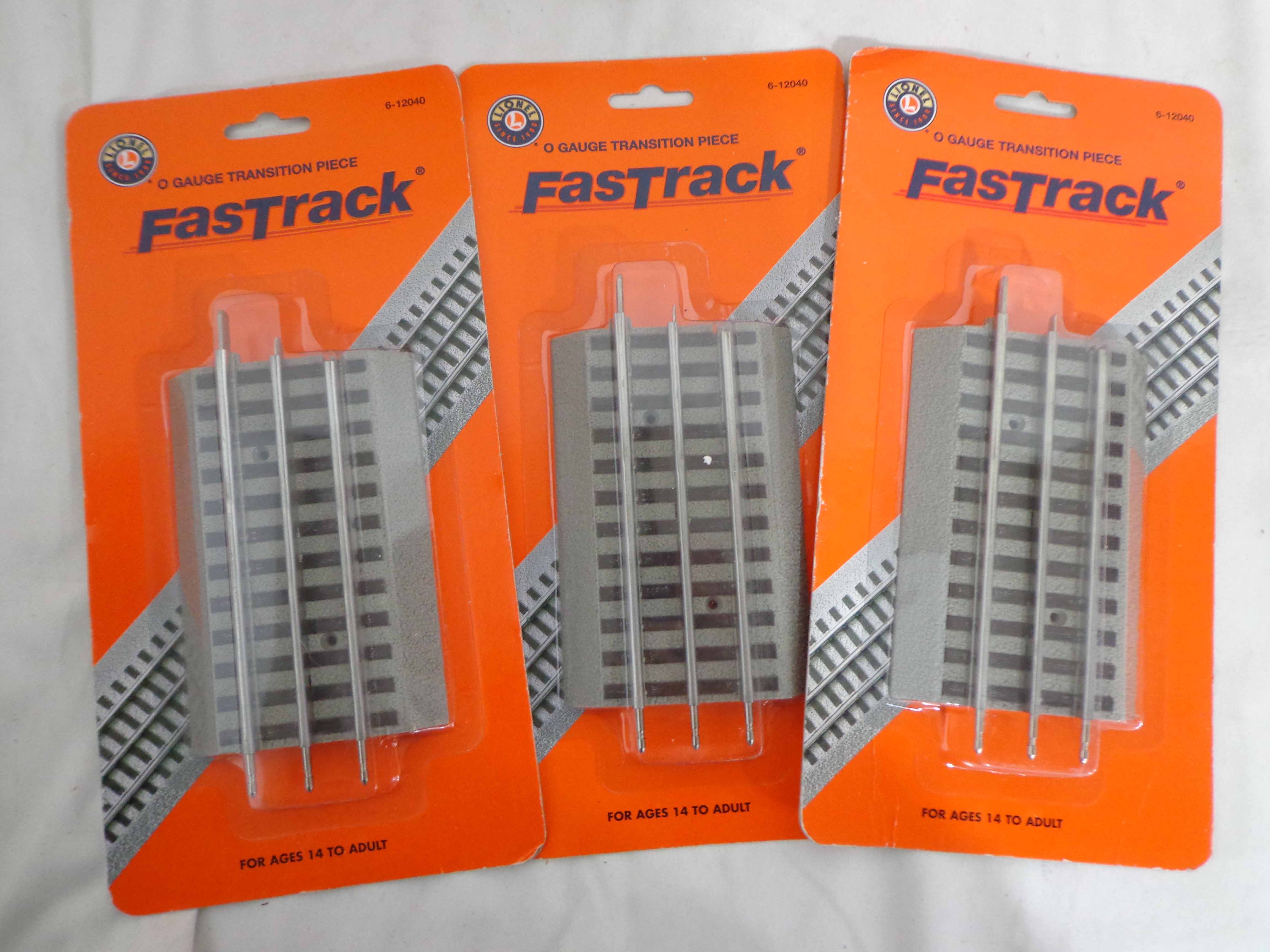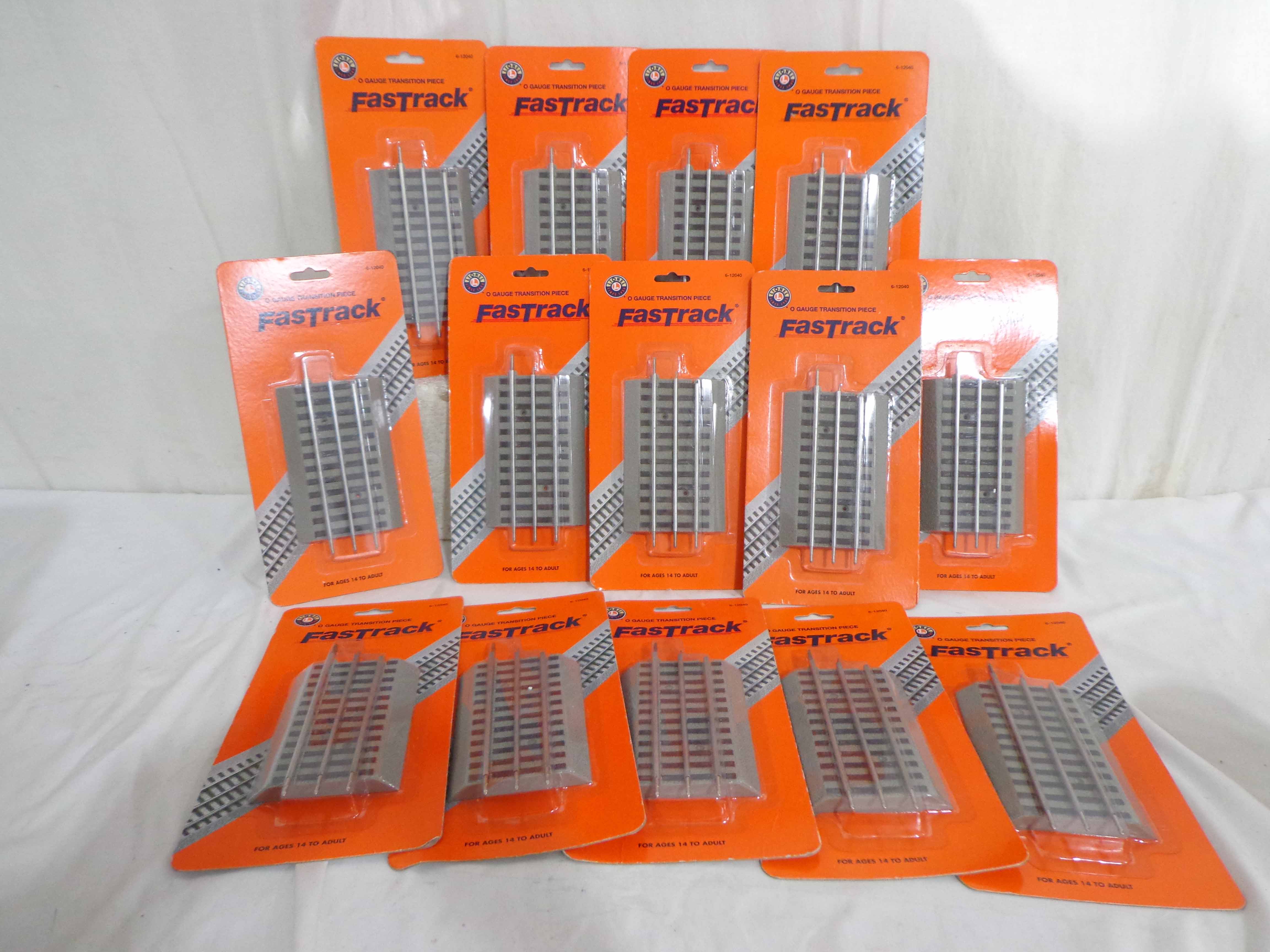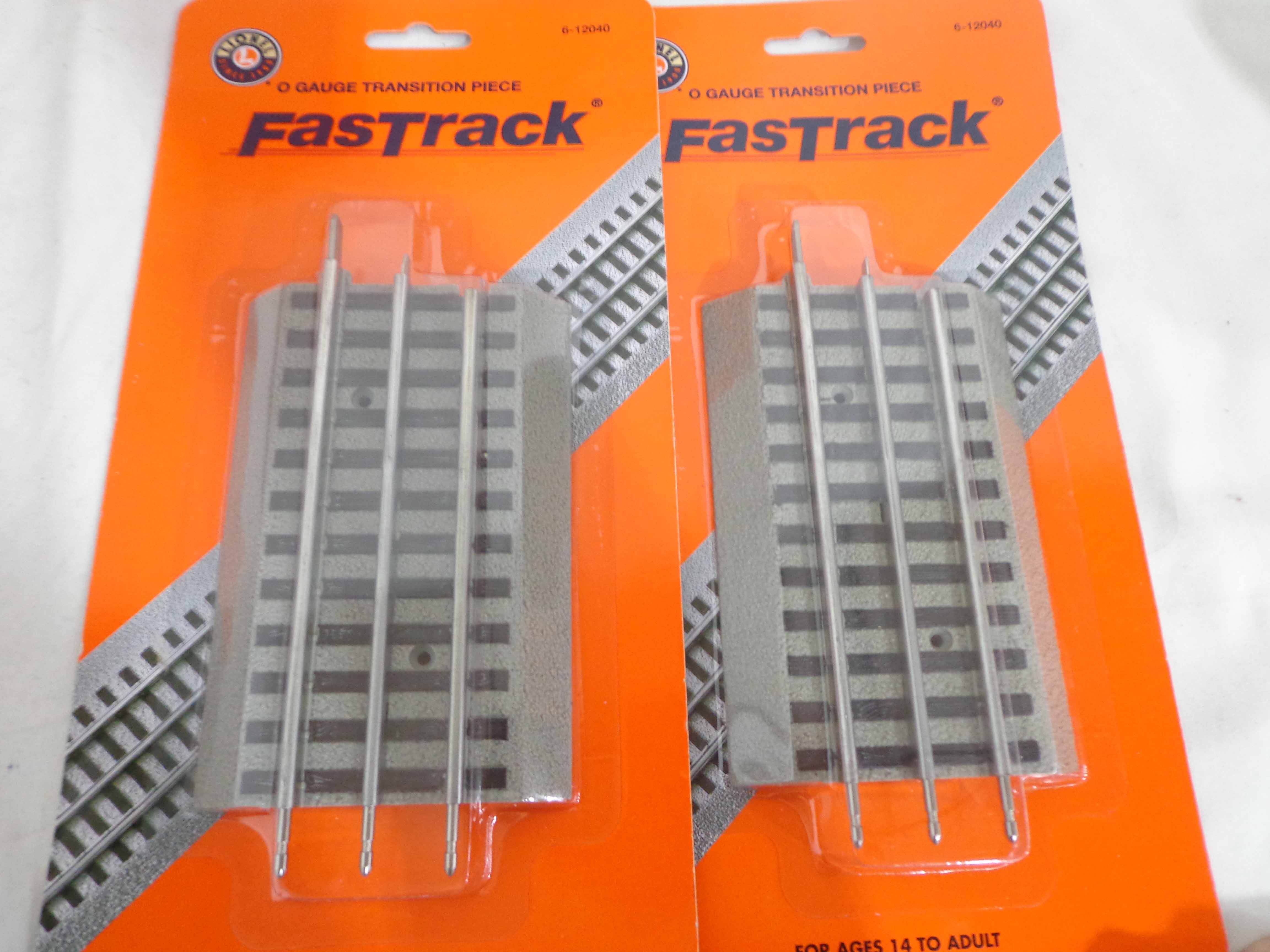 These are fourteen #12030 Lionel Fastrack Transition Tracks. Our Opinion is that they are generally in Mint Condition. Blister Packs. All Original in our Opinion. Please add $45.00 for US-48 Shipping and Insurance (more west of the Mississippi).