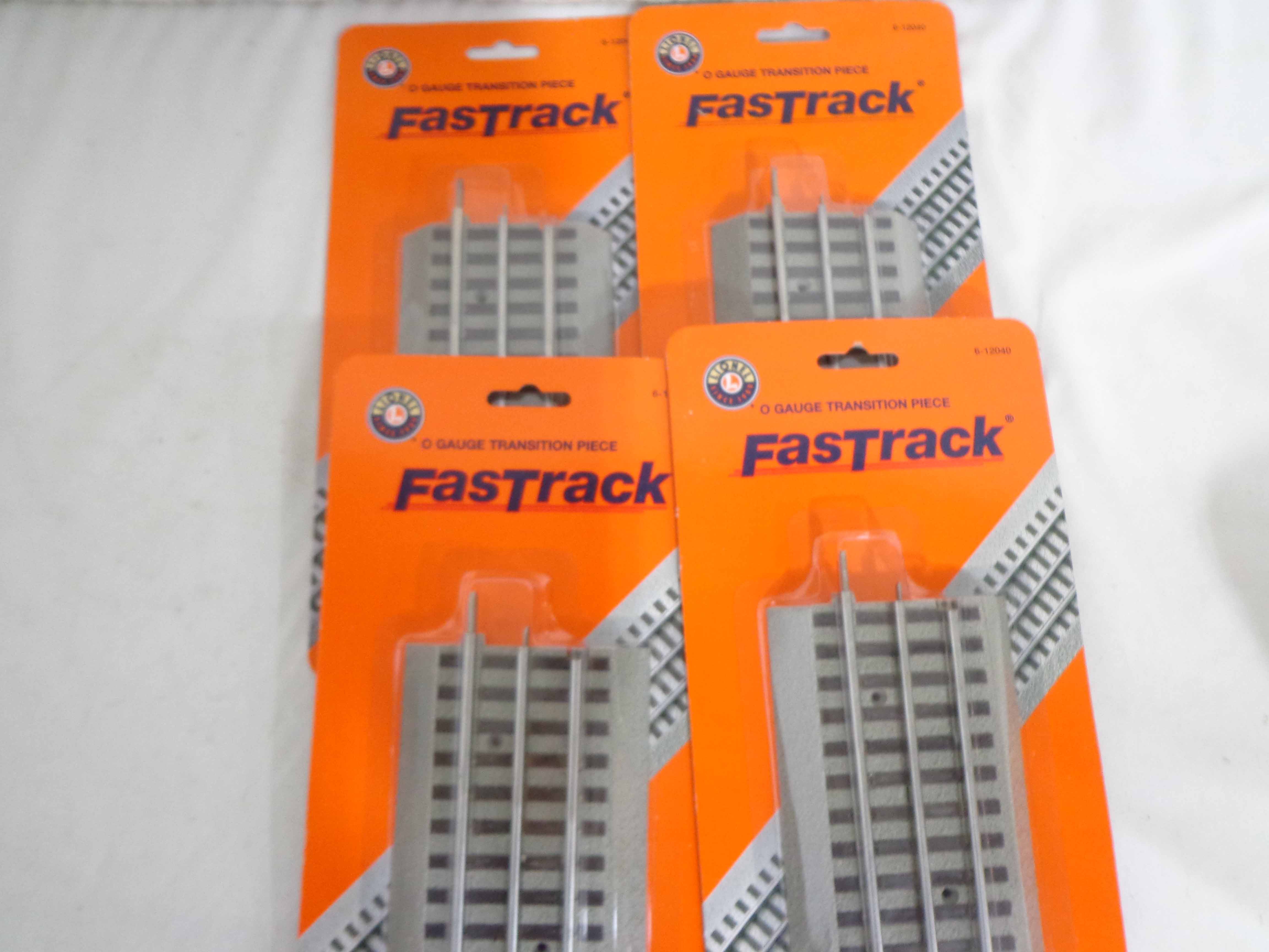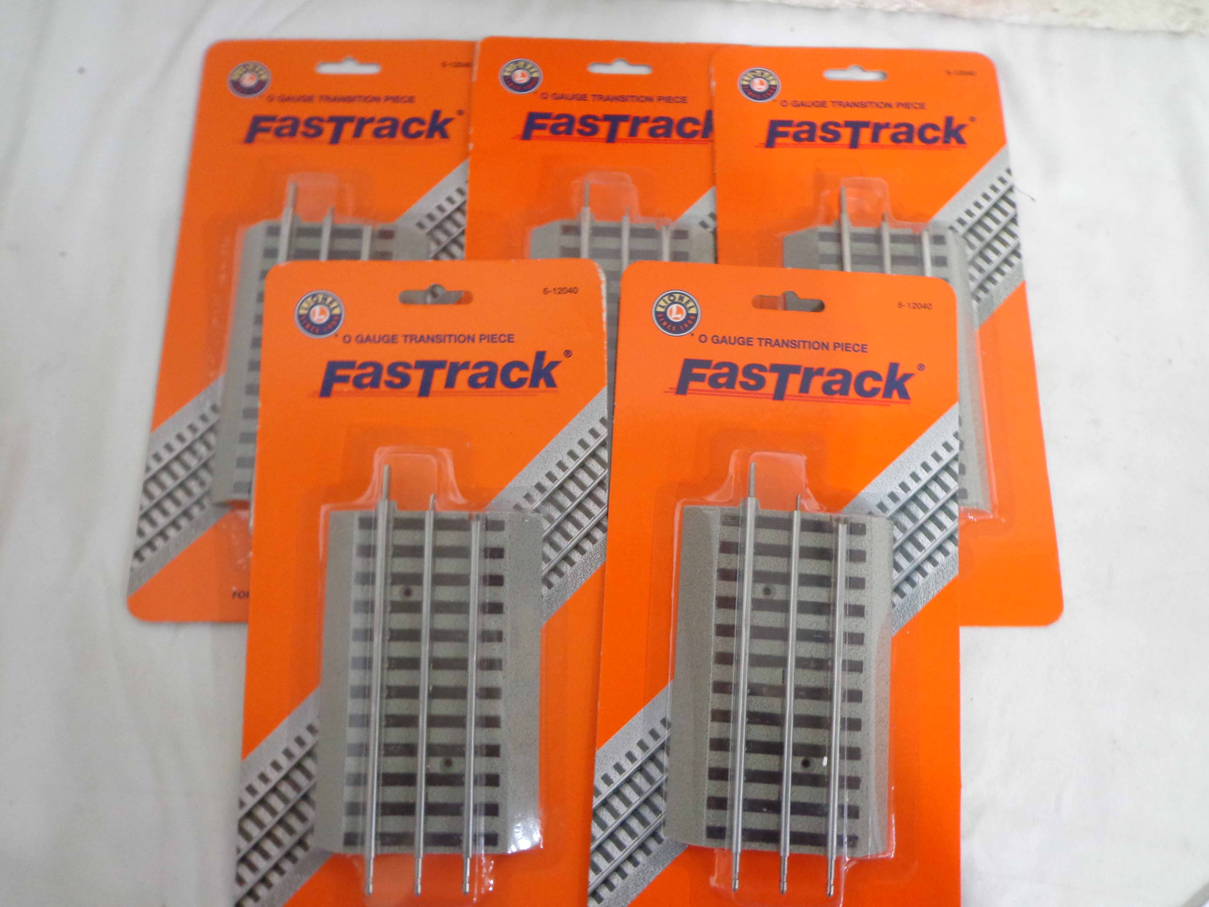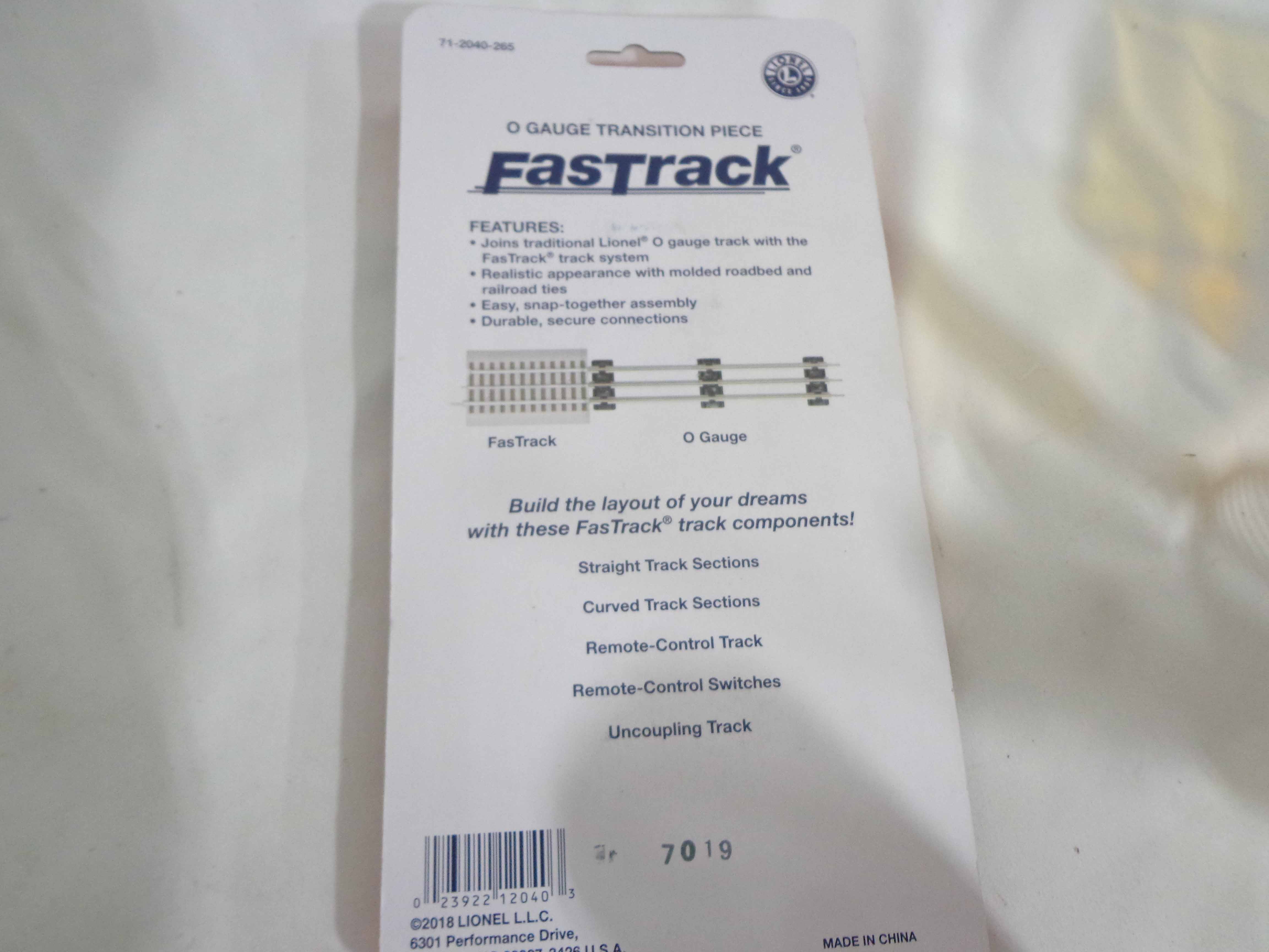 These are fourteen #12030 Lionel Fastrack Transition Tracks. Our Opinion is that they are generally in Mint Condition. Blister Packs. All Original in our Opinion. Please add $45.00 for US-48 Shipping and Insurance (more west of the Mississippi).