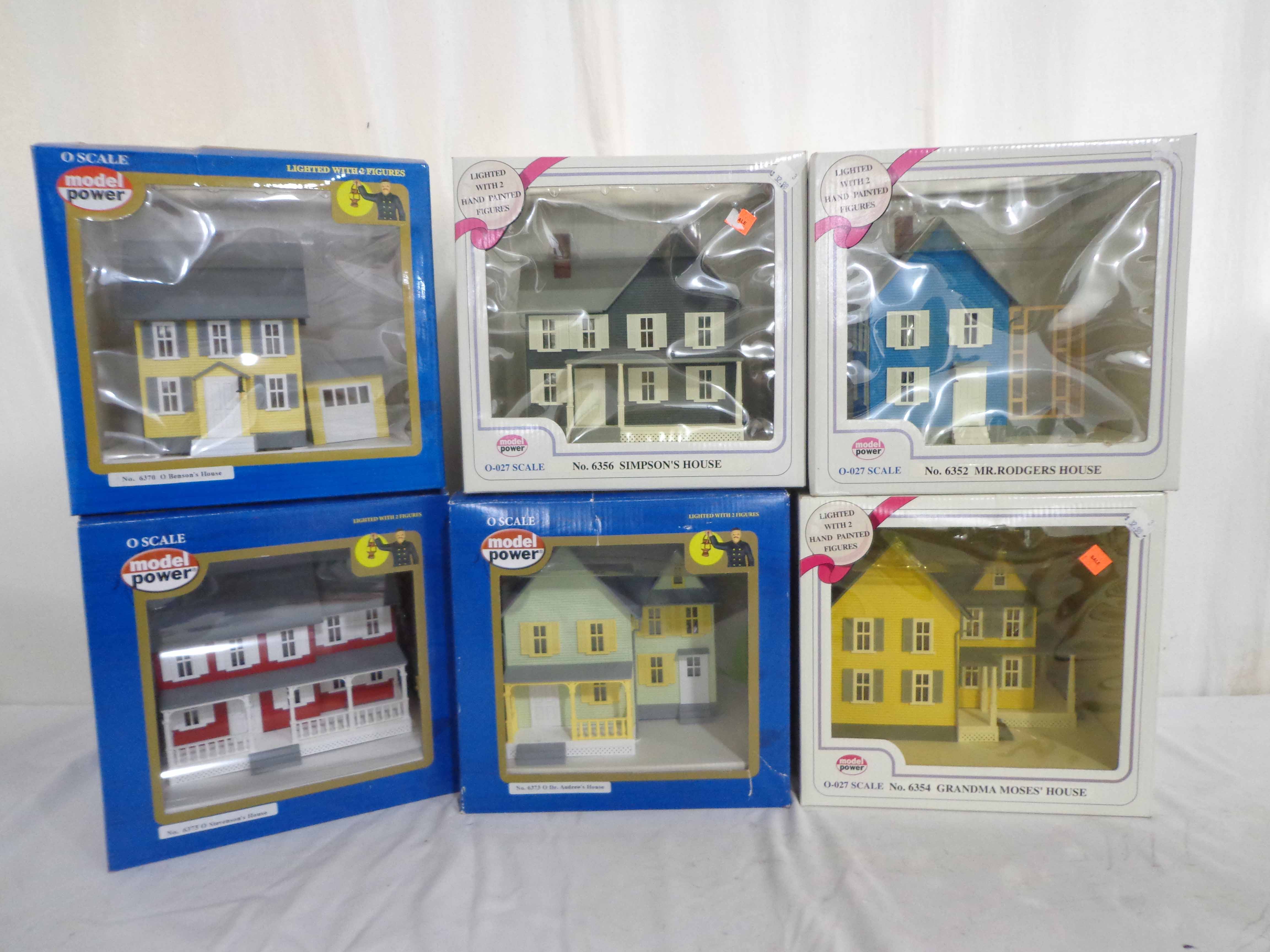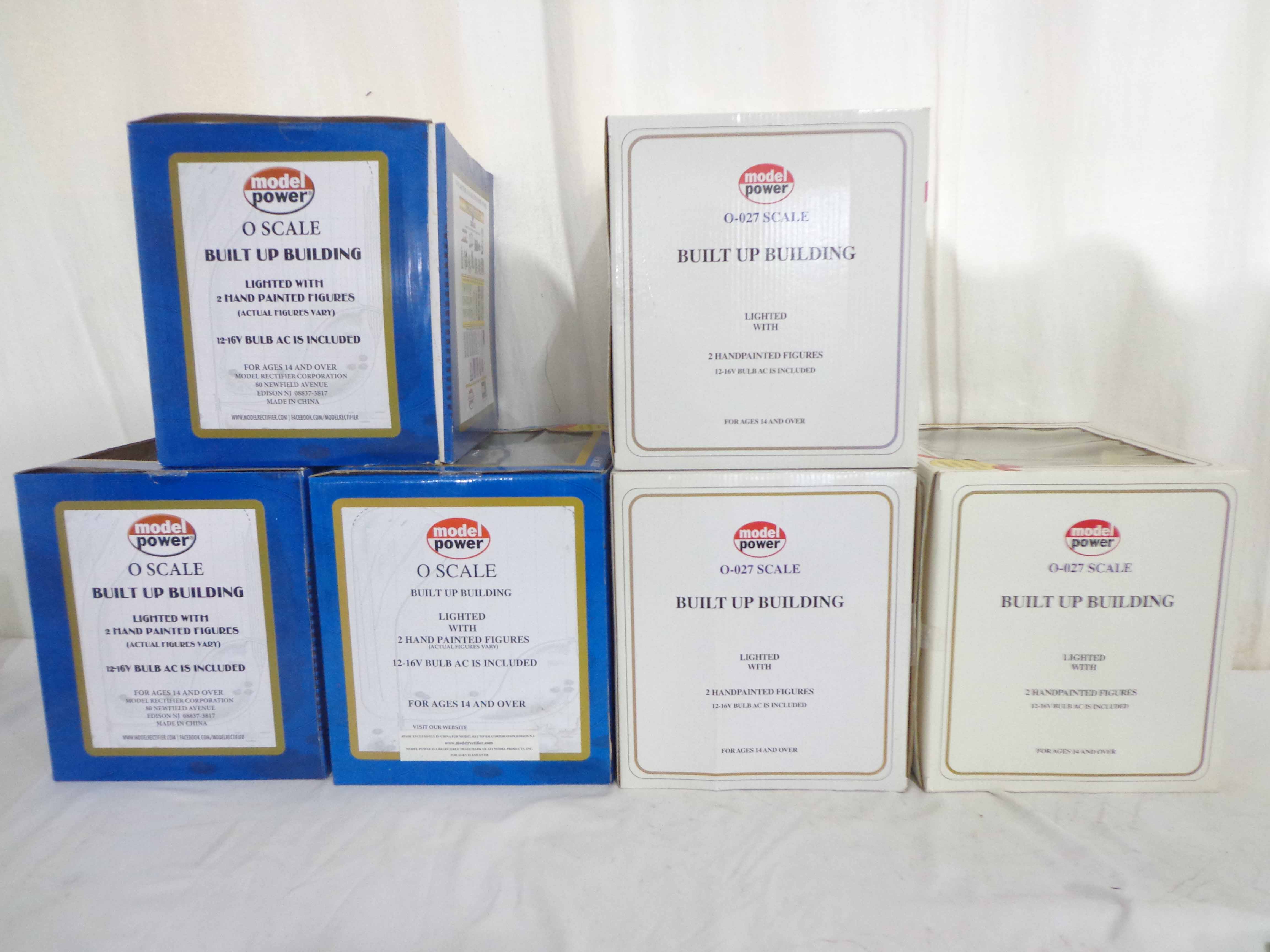 These are six Assorted Model Power Lighted Buildings. Our Opinion is that they are generally in Like New or Better Condition. Original Boxes. Examine closely; what is pictured is what you will receive. Please add $50.00 for US-48 Shipping and Insurance (more west of the Mississippi).
