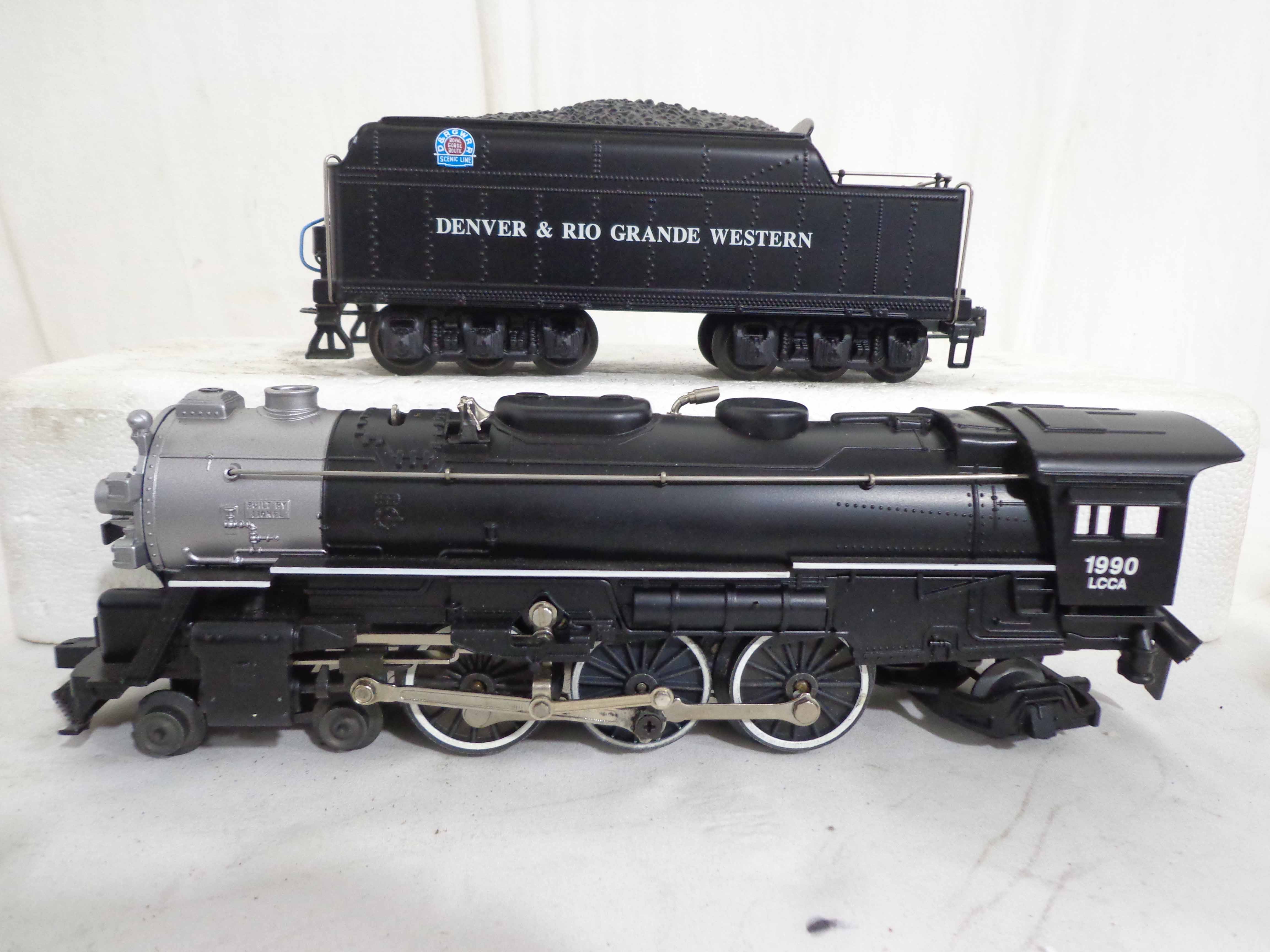 These are the #8603 Chesapeake and Ohio 4-6-4 Engine and Tender and the #1990 LCCA Denver and Rio Grande Western 4-6-2 Engine and Tender with Sound that Lionel made a few years ago. Our Opinion is that they are generally in Excellent Condition. Original Boxes. Examine closely; what is pictured is what you will receive. Please add $50.00 for US-48 Shipping and Insurance (more west of the Mississippi).
