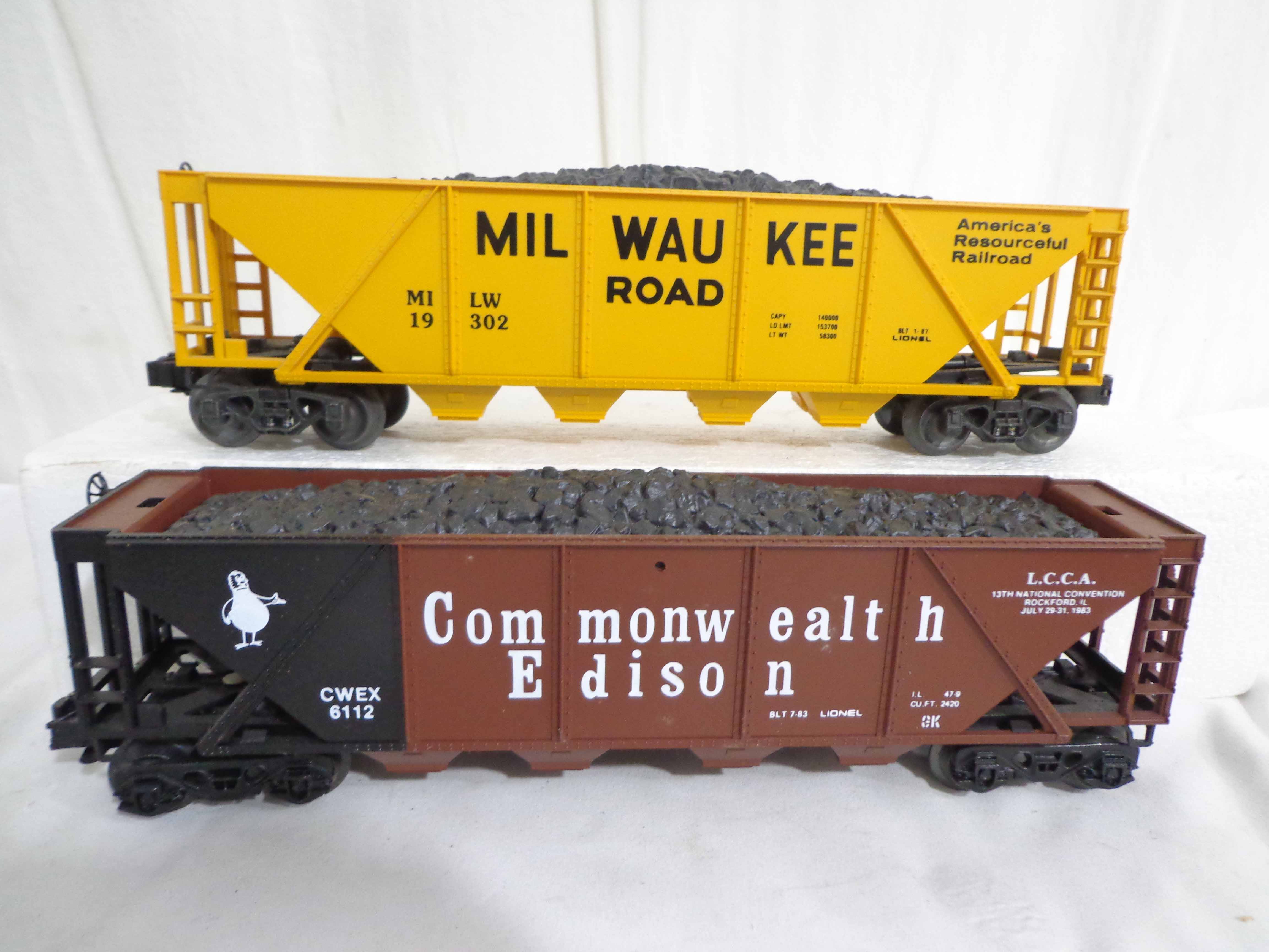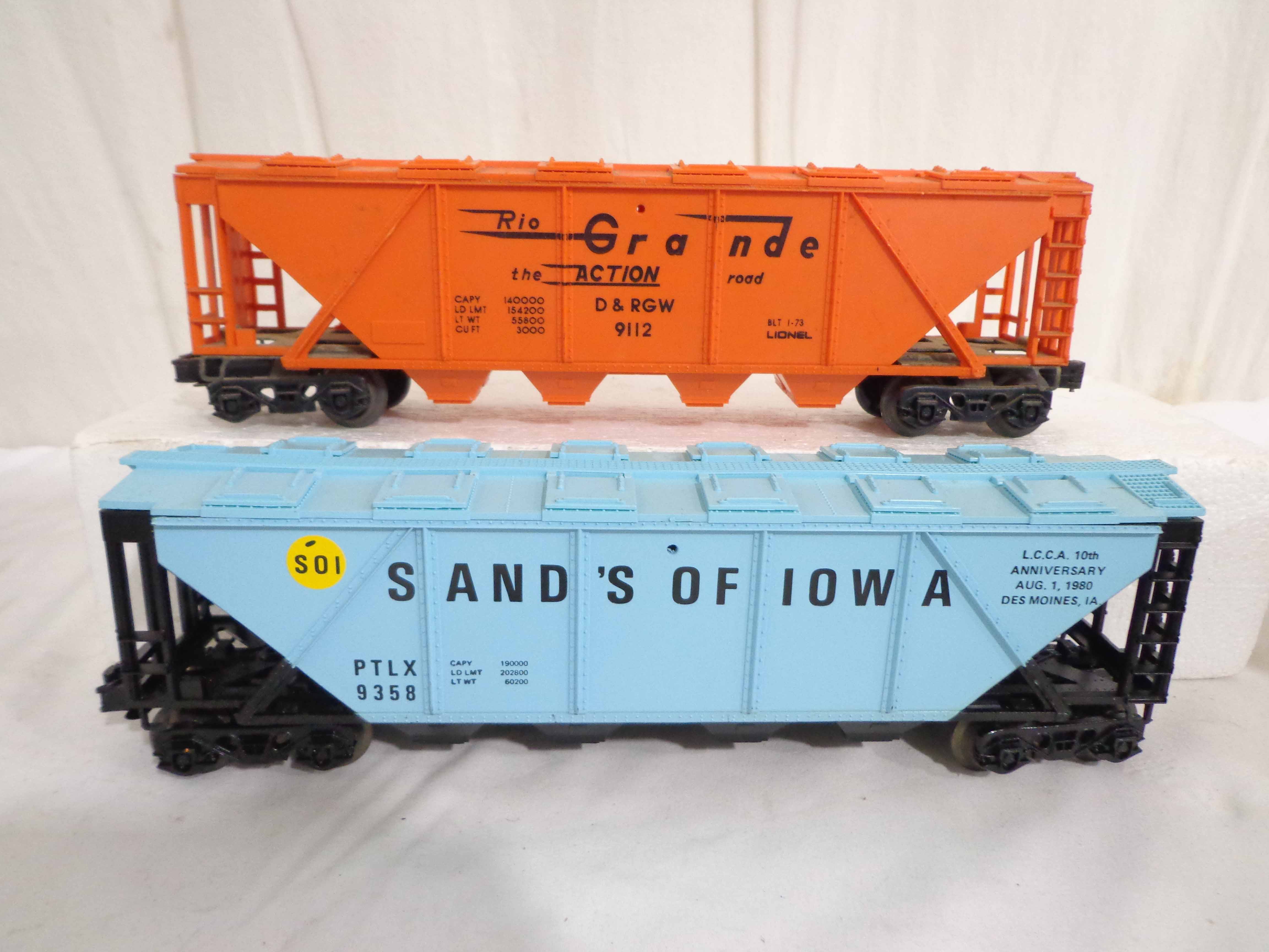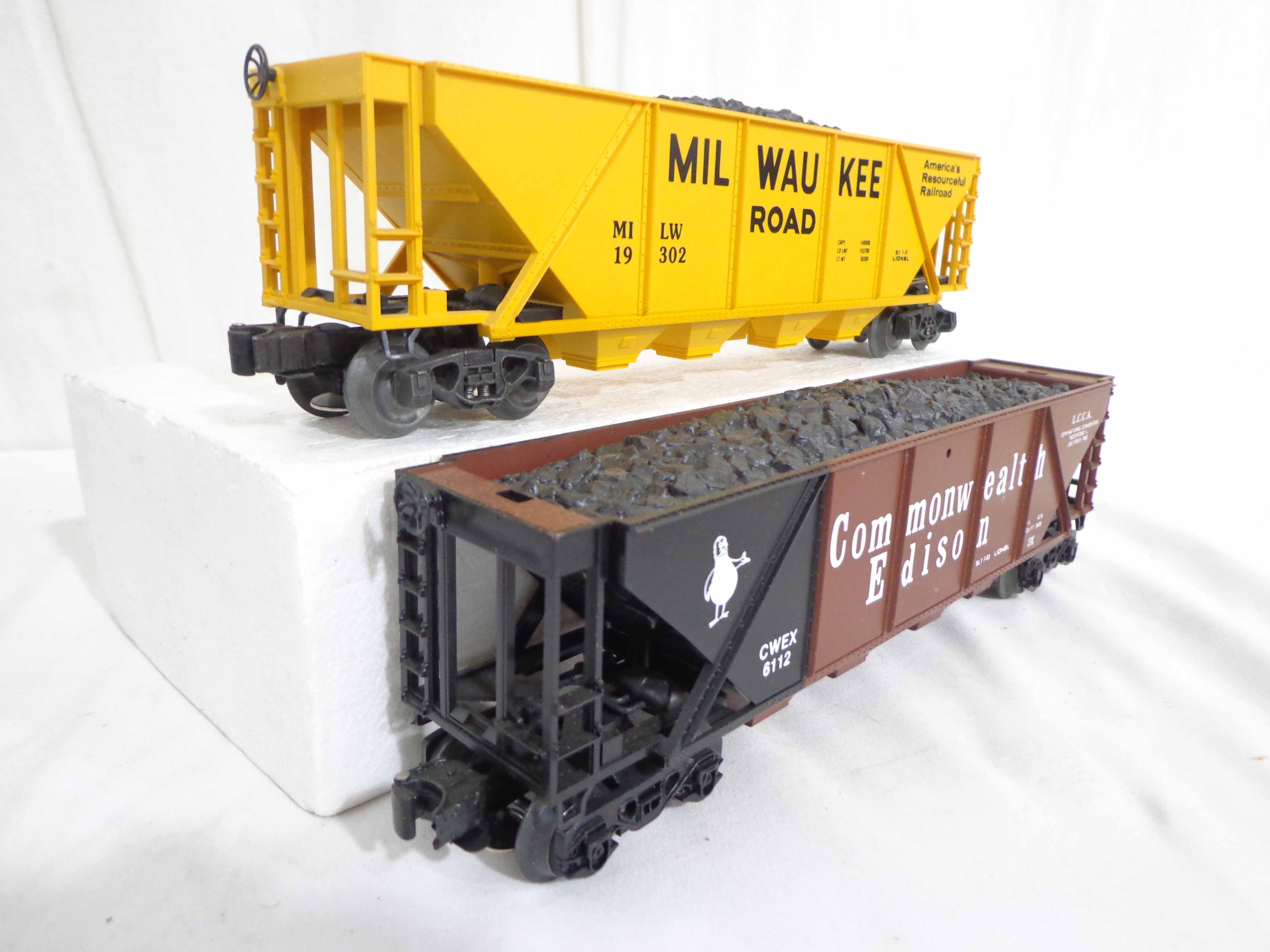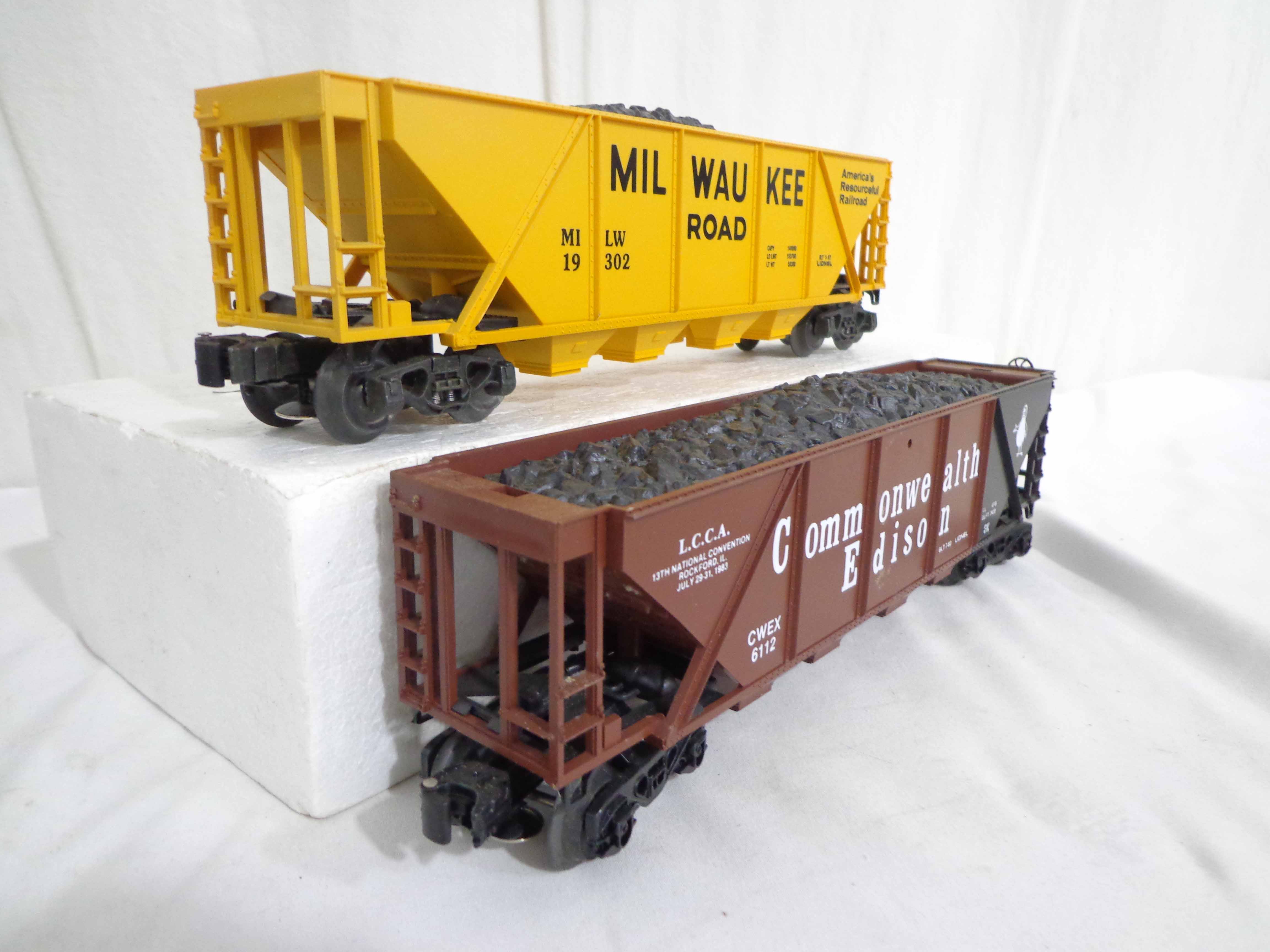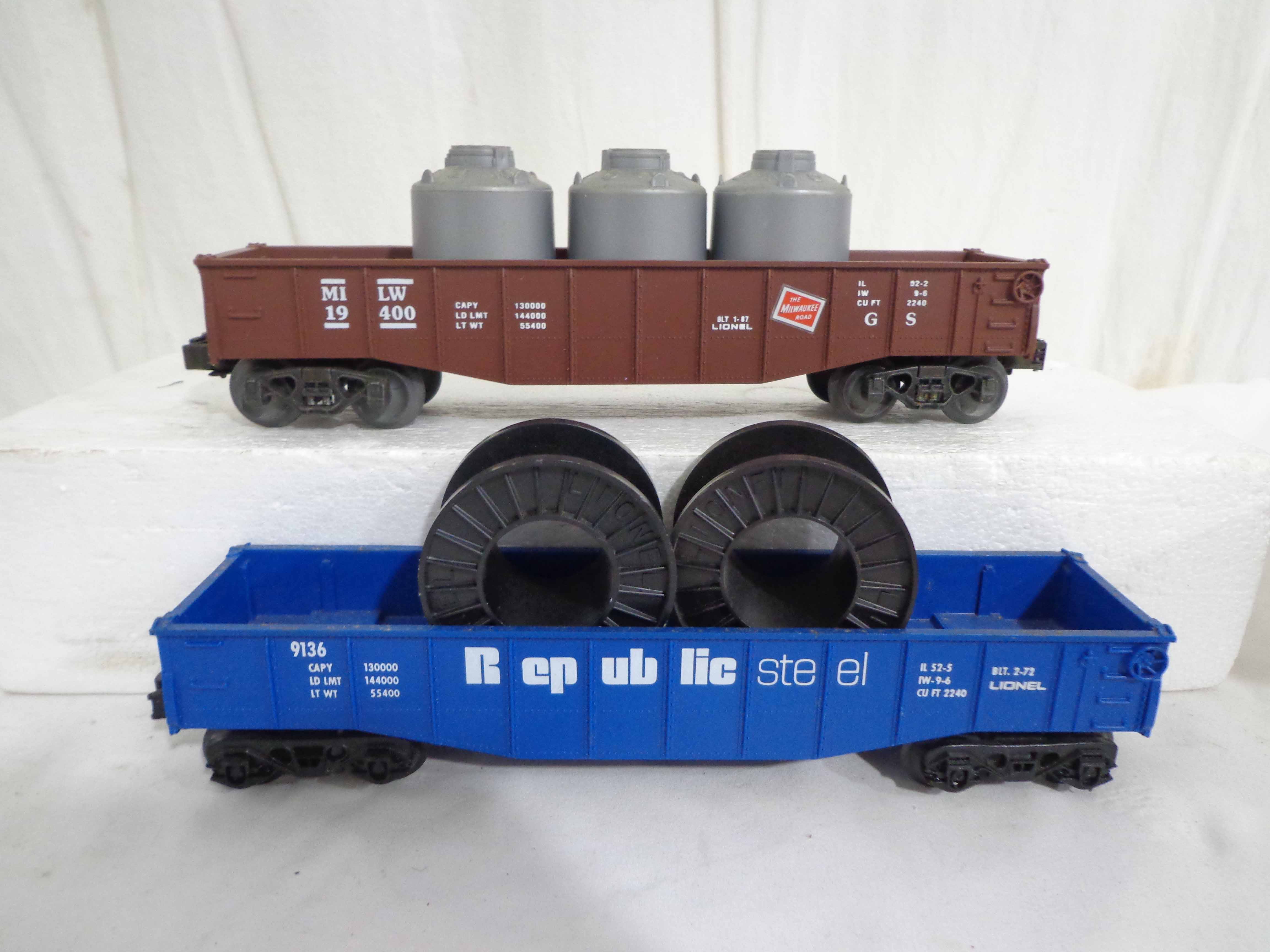 These are twenty-one Assorted Cars that Lionel made a few years ago. Our Opinion is that they are generally in Excellent Condition. No Boxes. Examine closely; what is pictured is what you will receive. Please add $60.00 for US-48 Shipping and Insurance (more west of the Mississippi). |