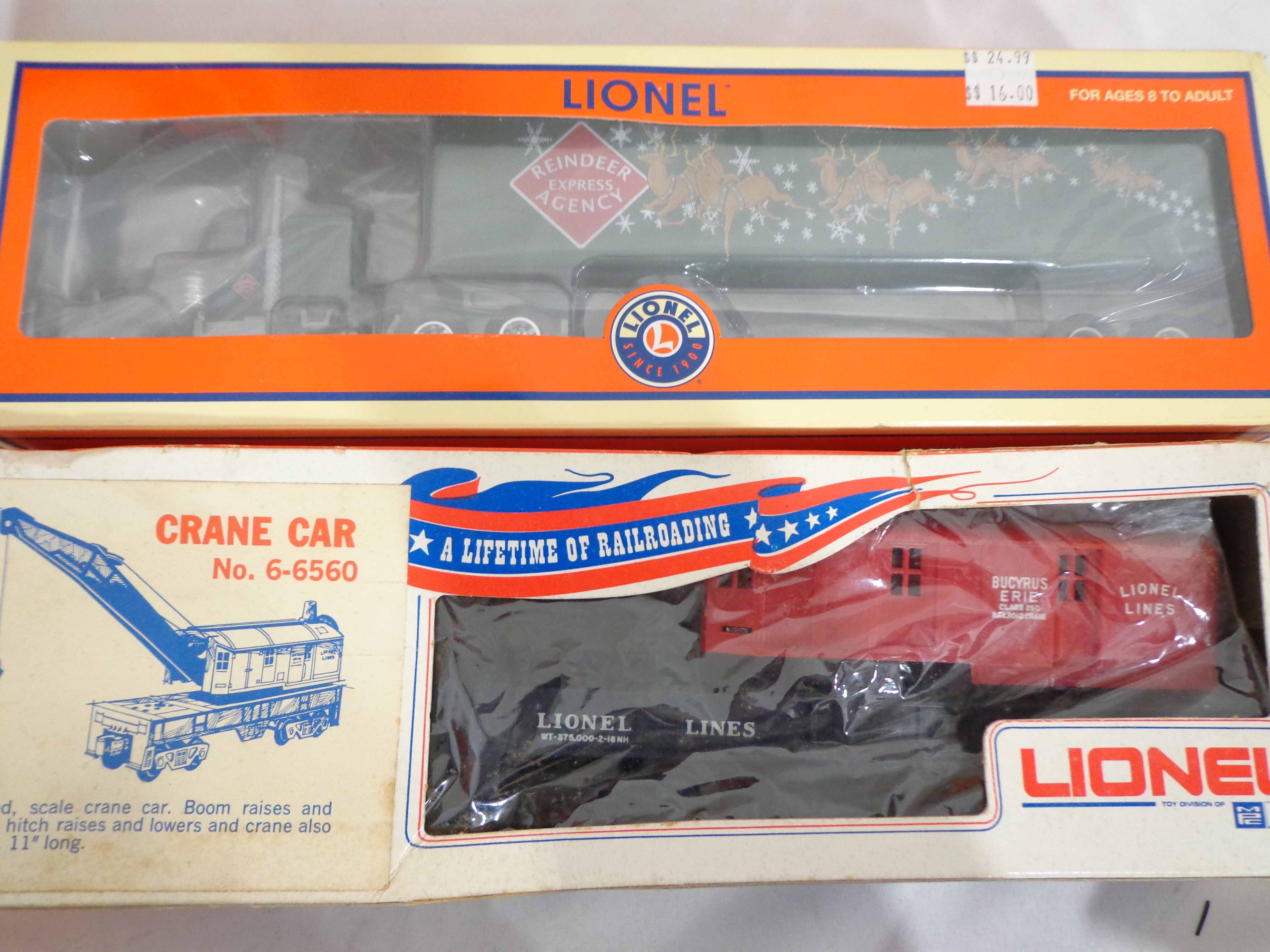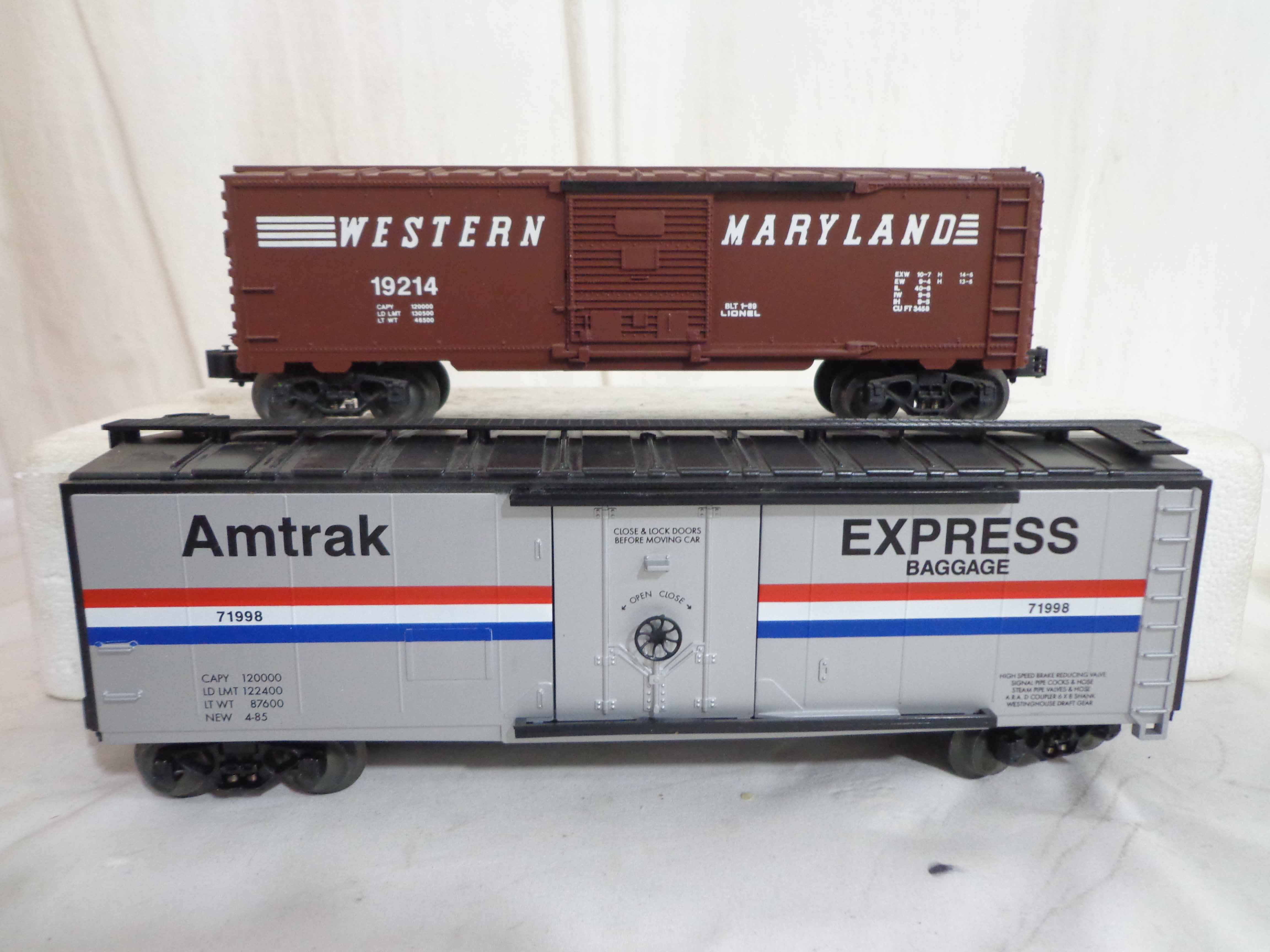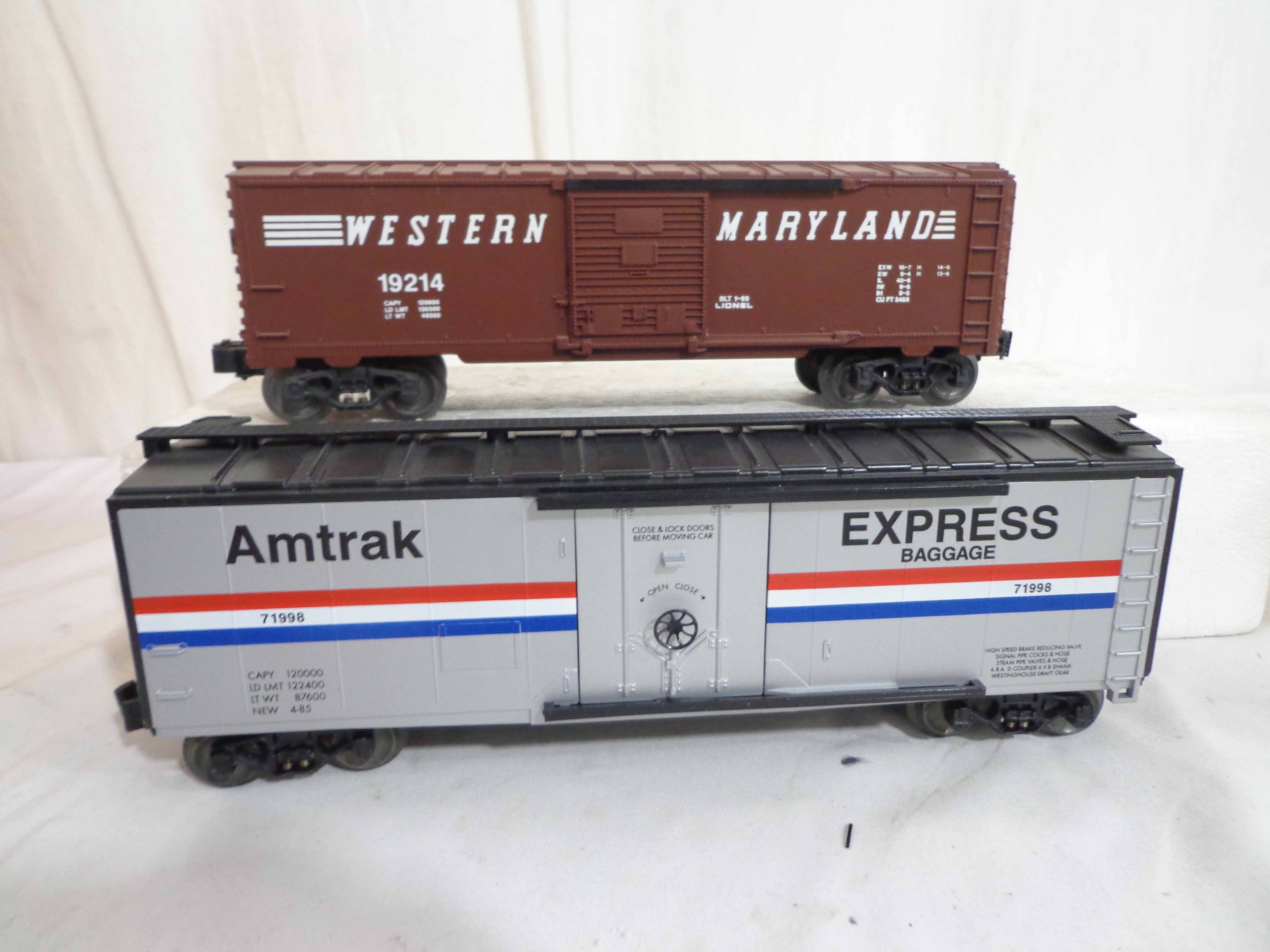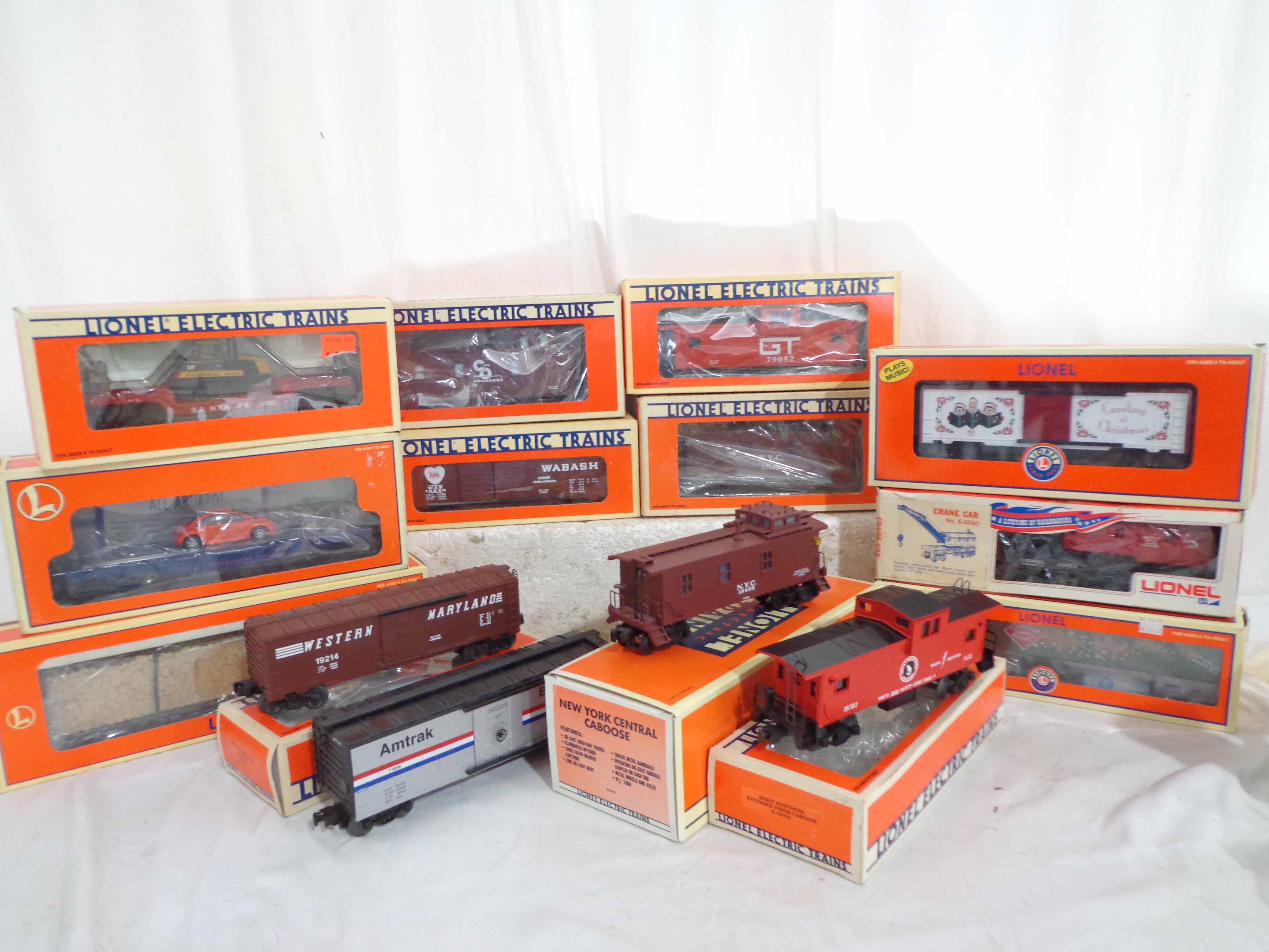 These are the #71998 Amtrak Baggage Car and thirteen Assorted Cars that Lionel made a few years ago. Our Opinion is that they are generally in Like New Minus or Better Condition. Thirteen Original Boxes. All Original in our Opinion. Examine closely; what is pictured is what you will receive. Please add $50.00 for US-48 Shipping and Insurance (more west of the Mississippi).