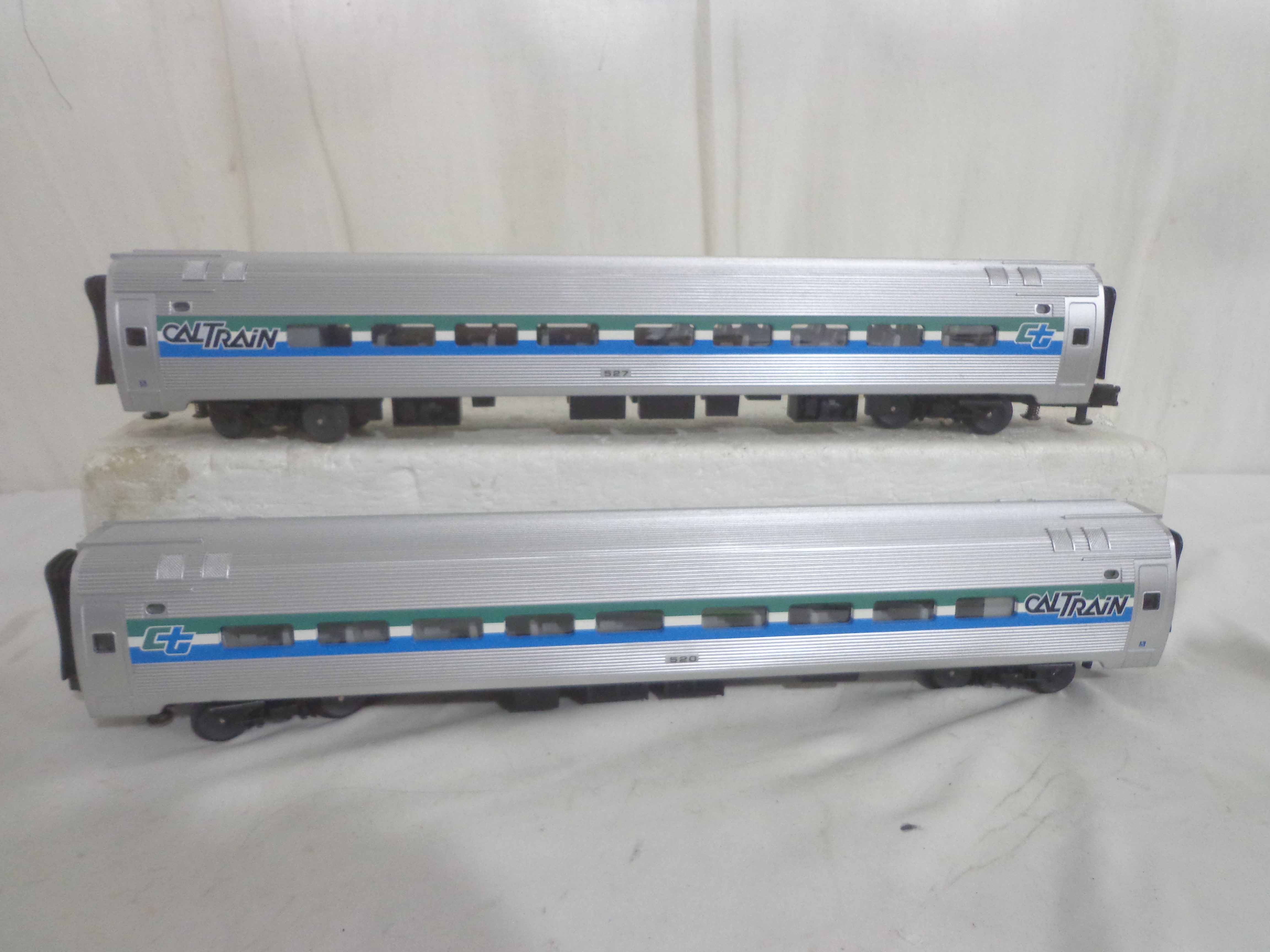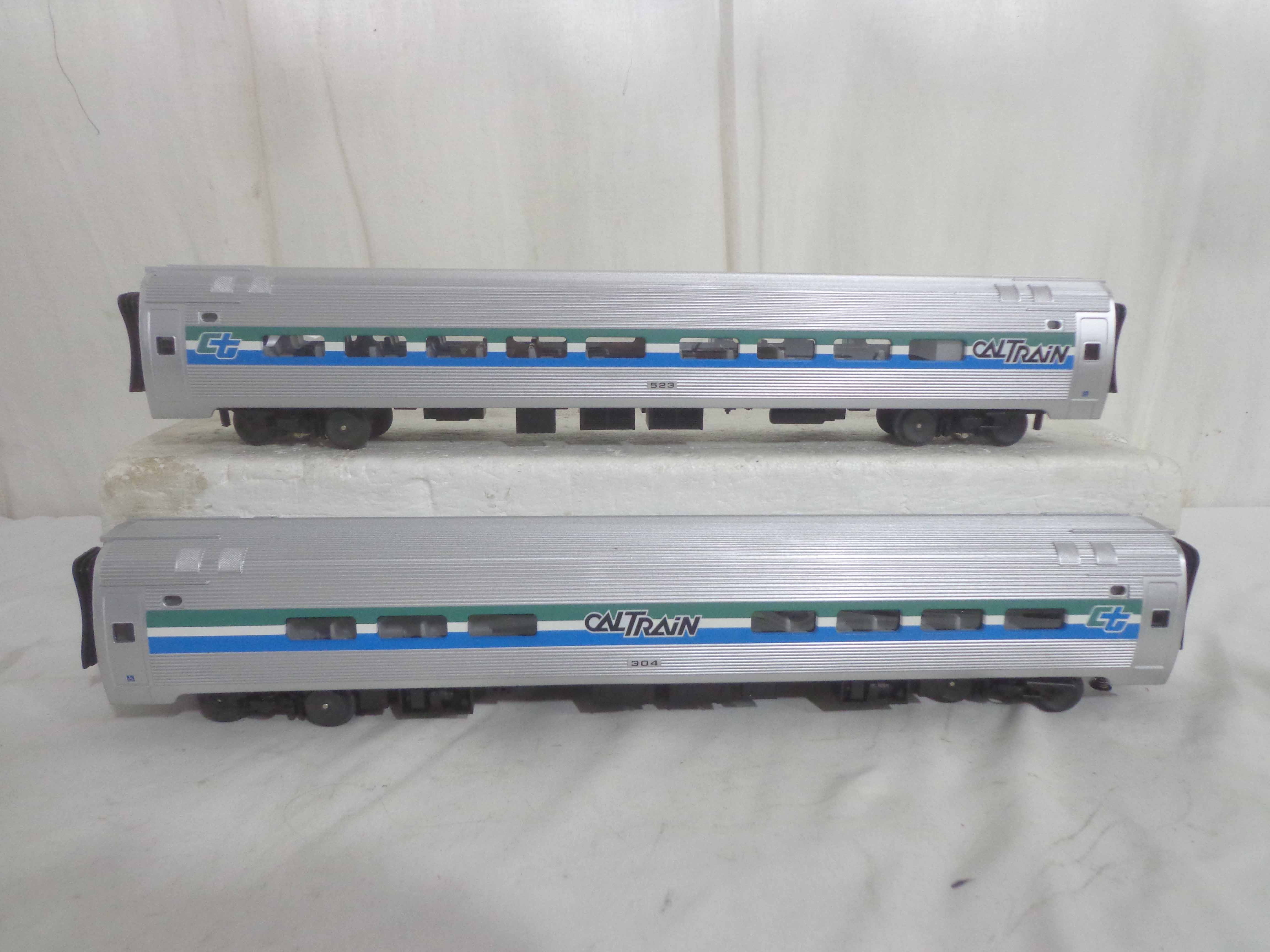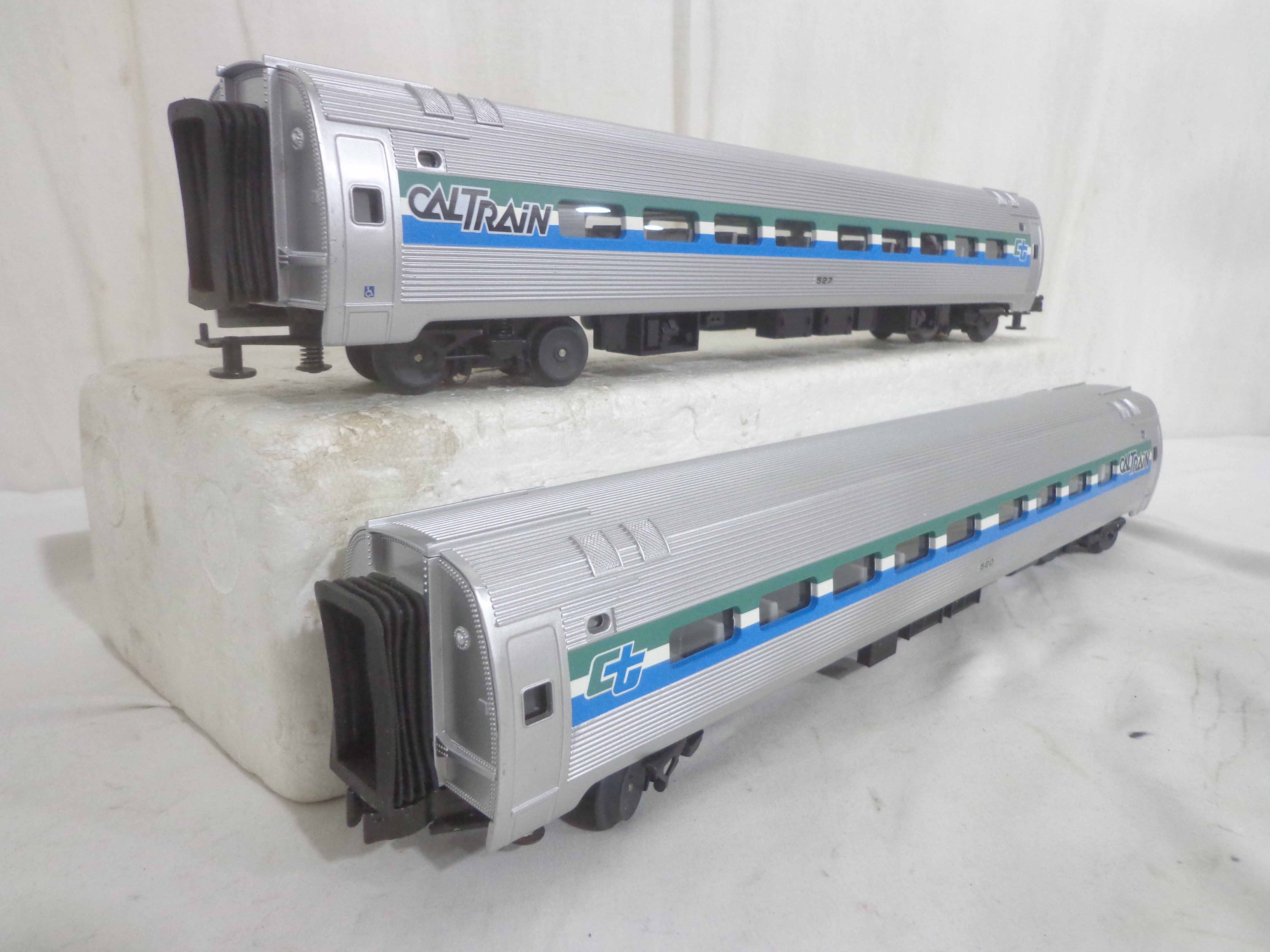 These are the #304/520/523/527 Caltrain Passenger Cars that MTH made a few years ago. Our Opinion is that it is generally in Like New Minus Condition. No Boxes. Examine closely; what is pictured is what you will receive. Please add $45.00 for US-48 Shipping and Insurance (more west of the Mississippi).