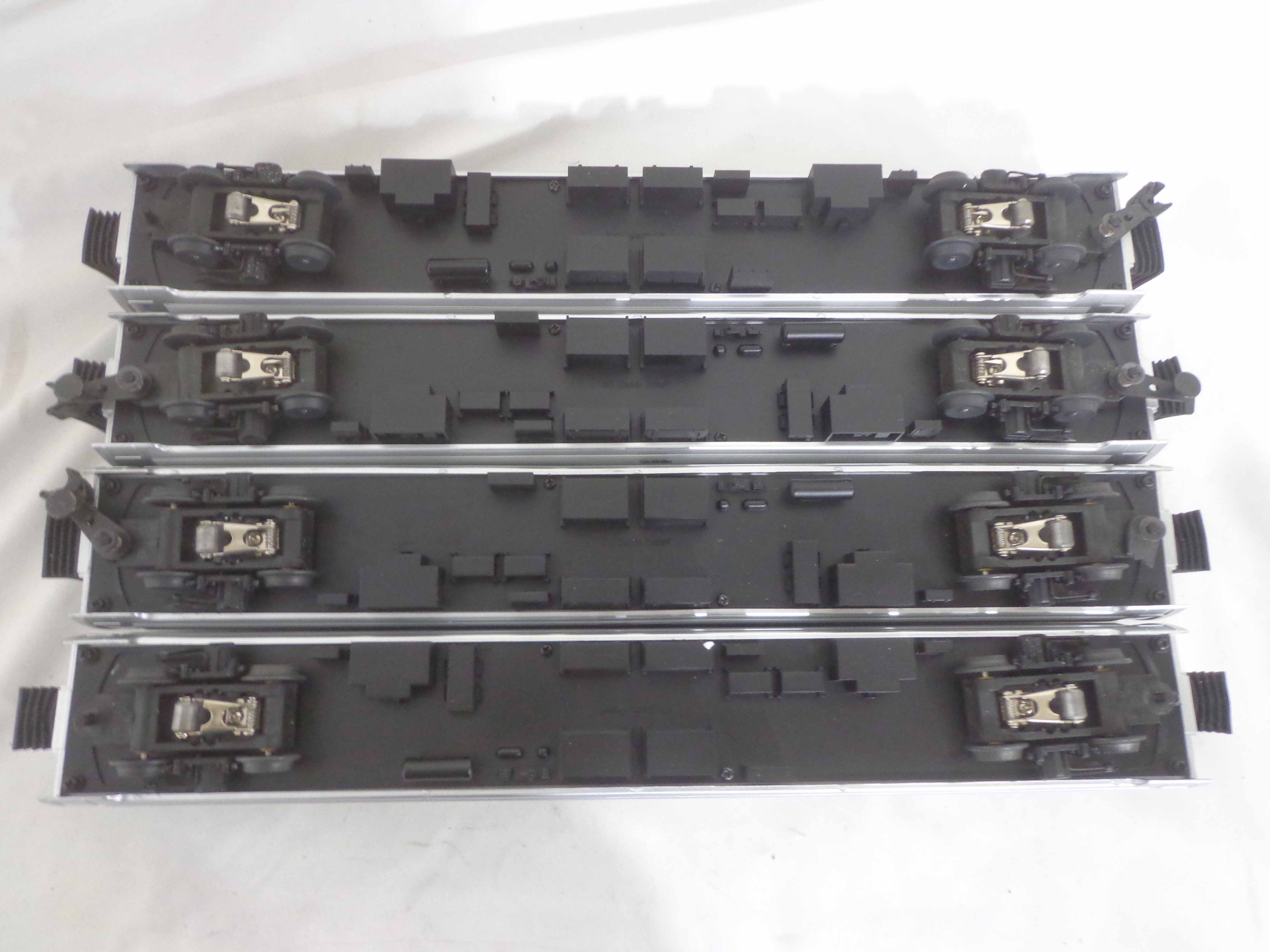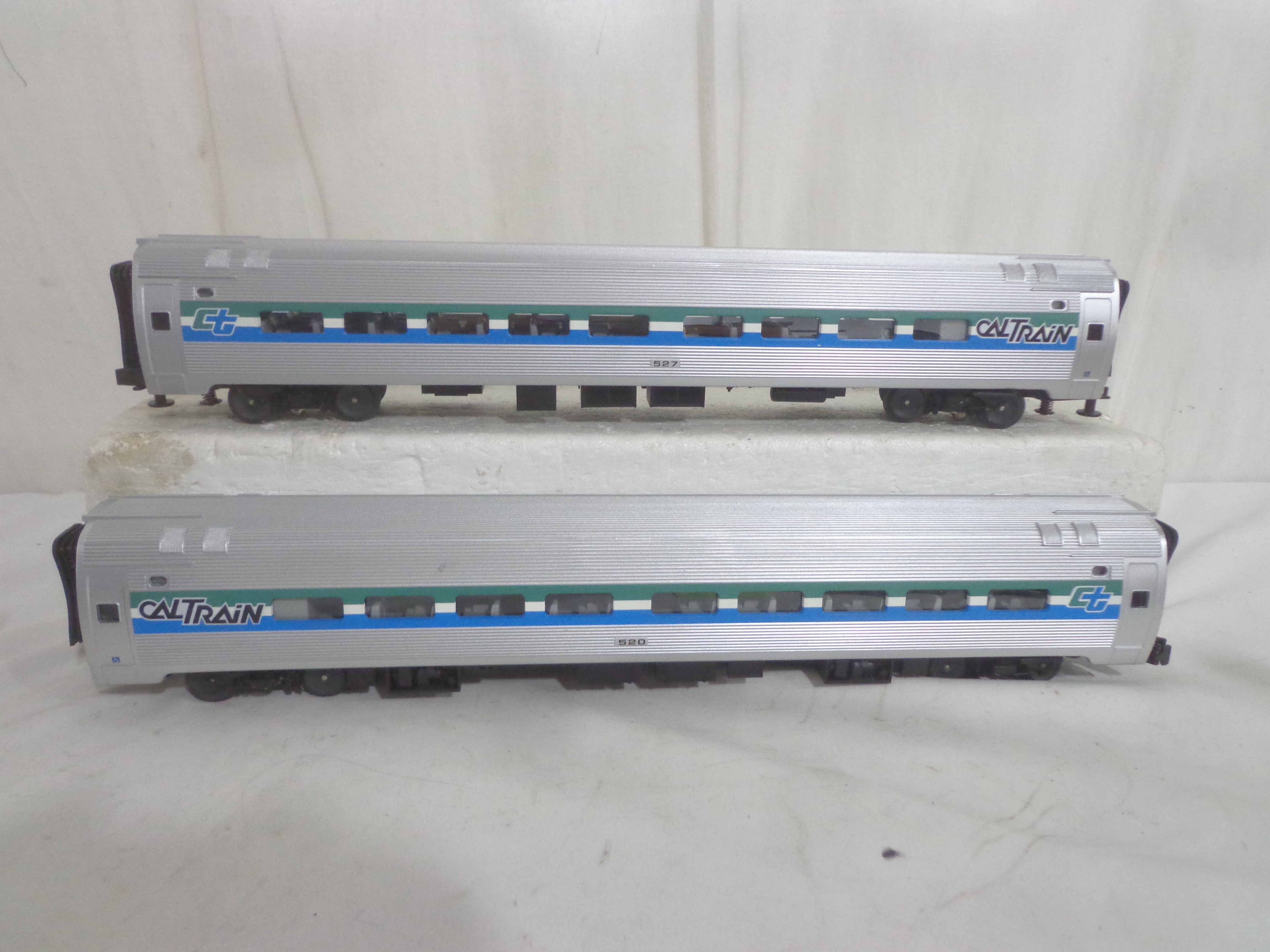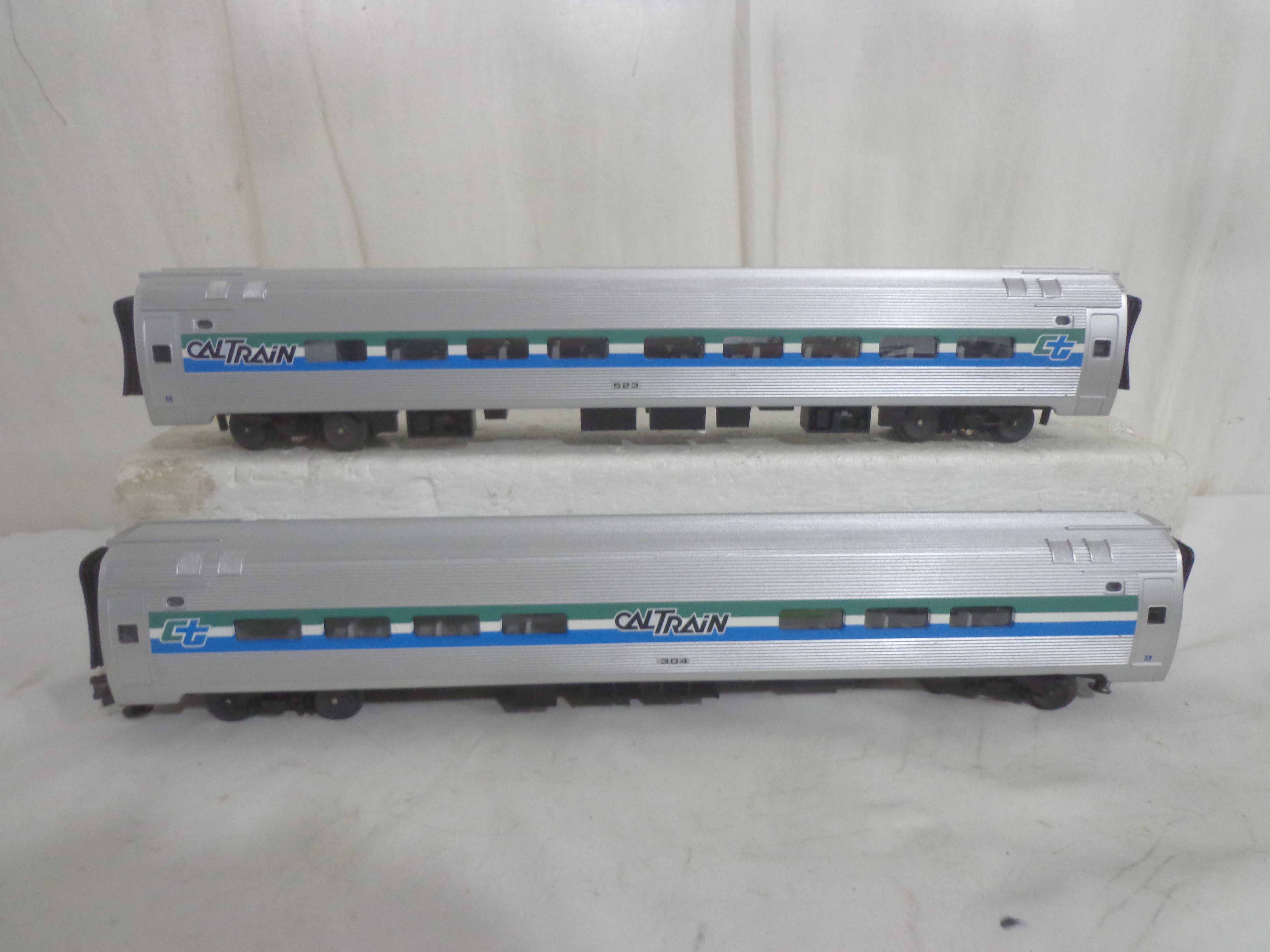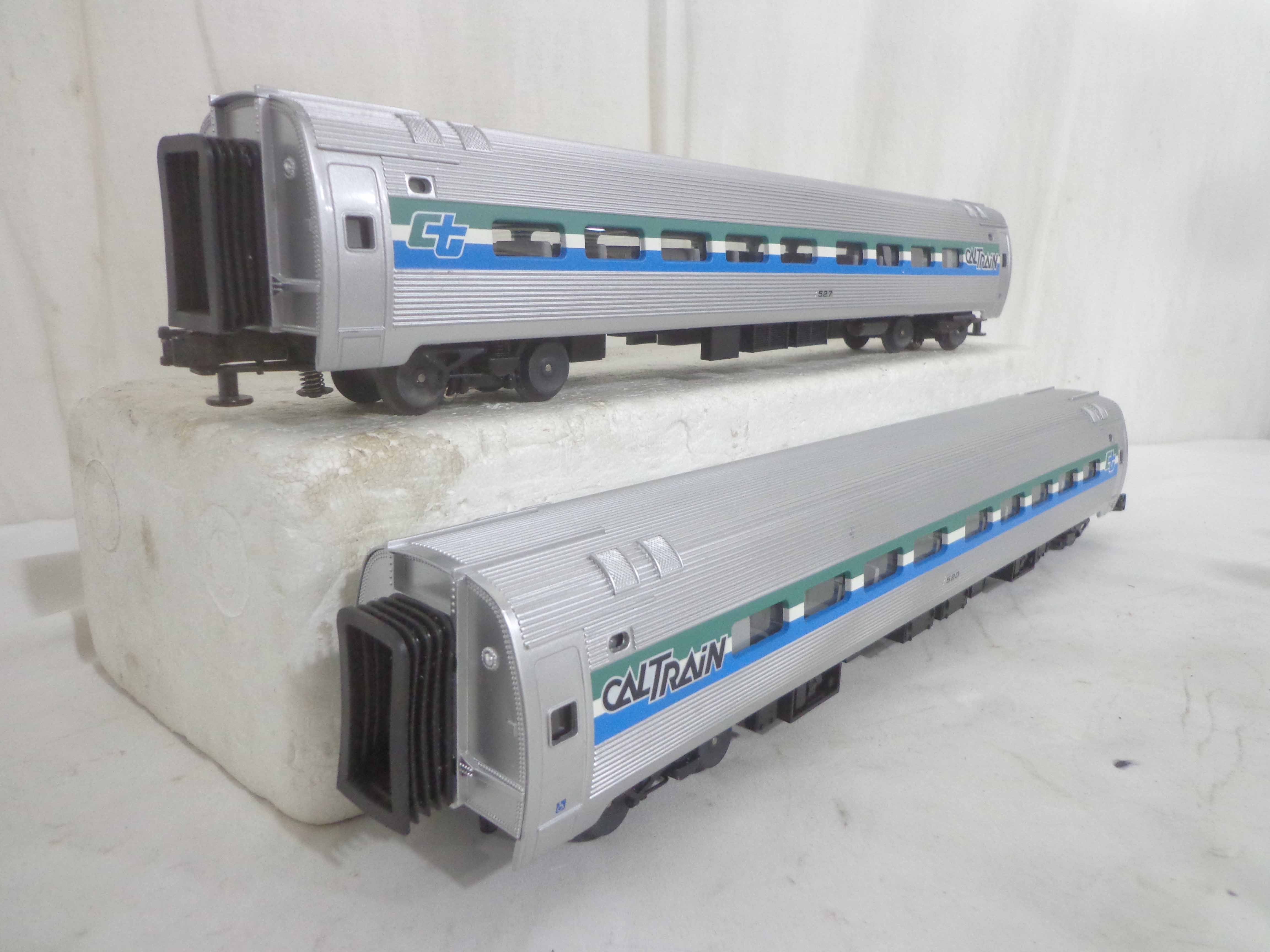 These are the #304/520/523/527 Caltrain Passenger Cars that MTH made a few years ago. Our Opinion is that it is generally in Like New Minus Condition. No Boxes. Examine closely; what is pictured is what you will receive. Please add $45.00 for US-48 Shipping and Insurance (more west of the Mississippi).