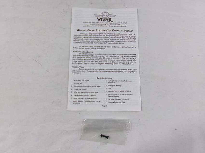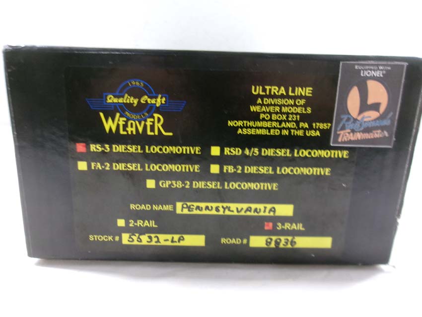 This is the #5532-LP PRR RS-3 Diesel Engine (railsounds) that Weaver made a few years ago. Our Opinion is that it is generally in Like New Minus Condition. Original Box. All Original in our Opinion. Please add $35.00 for US-48 Shipping and Insurance (more west of the Mississippi).