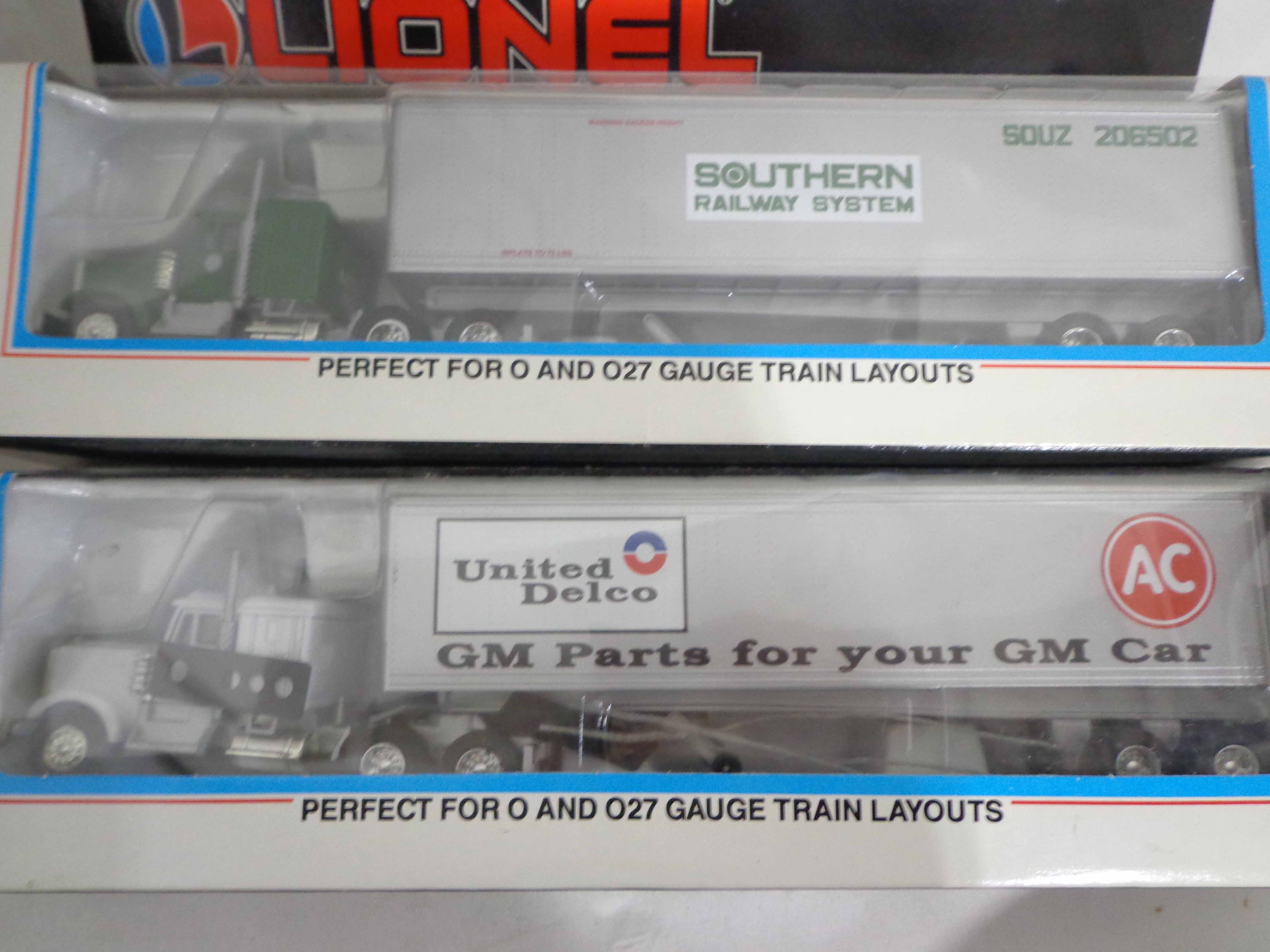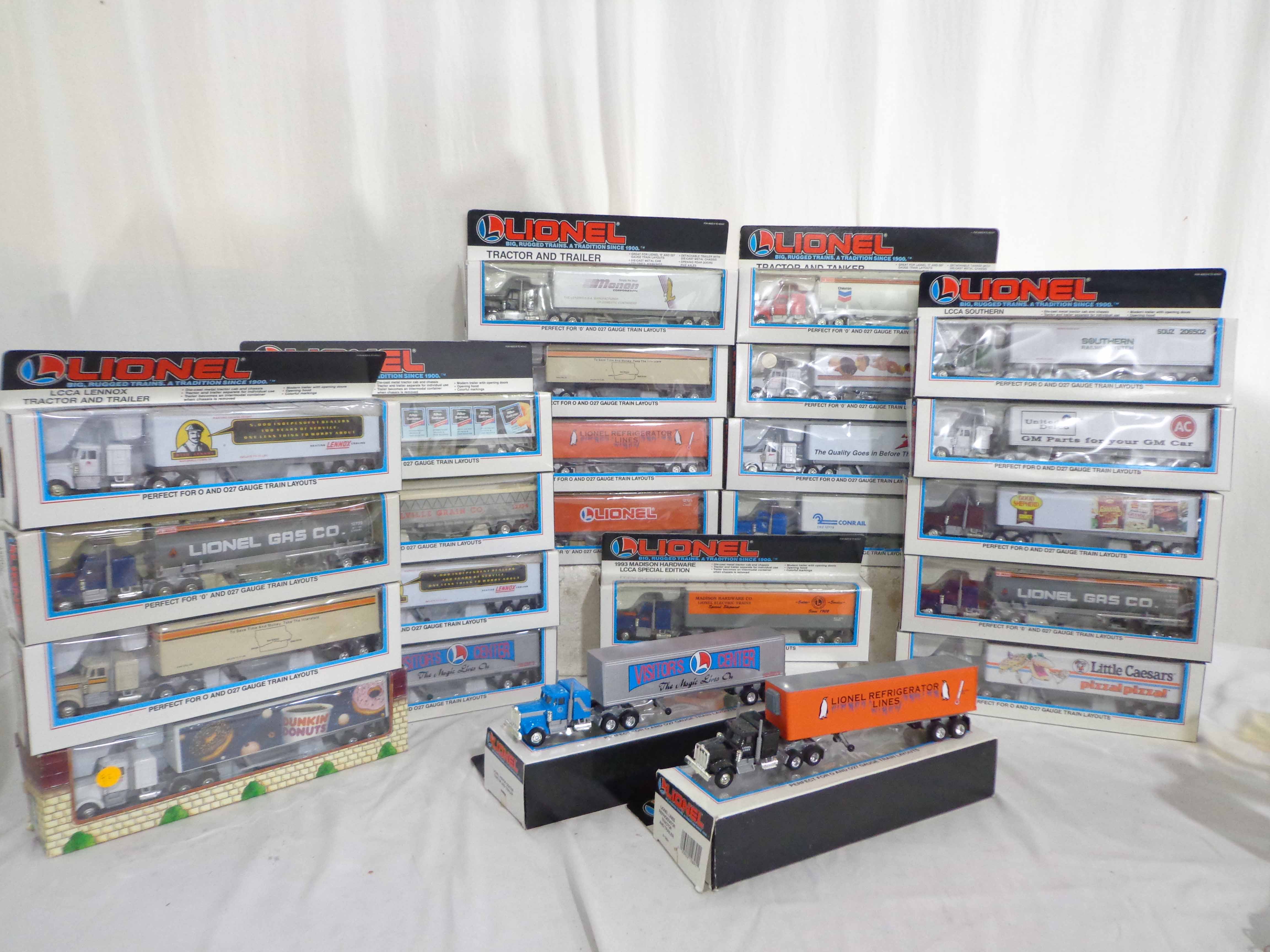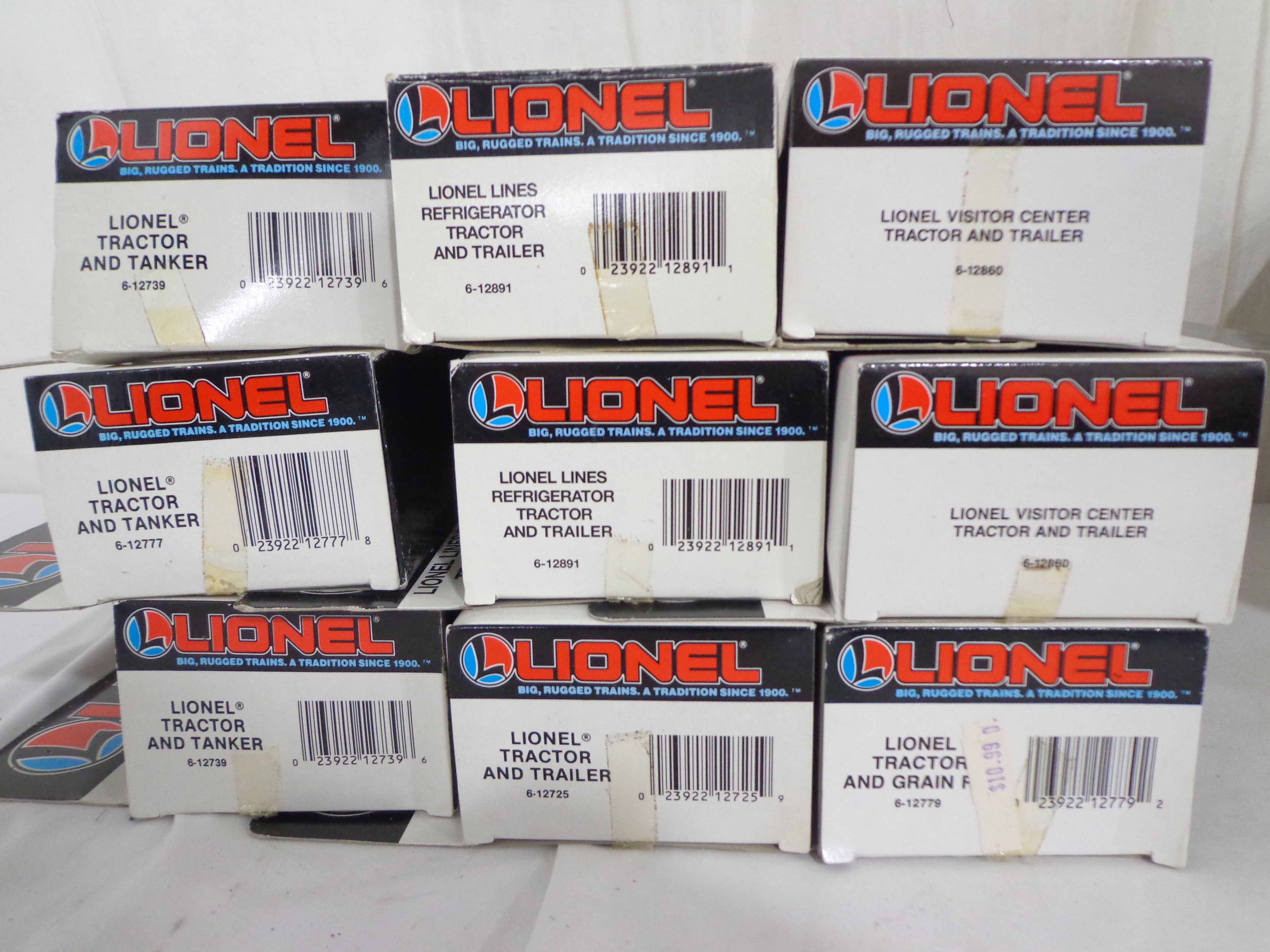 These are twenty-four Assorted Tractor Trailers that Lionel made a few yers ago. Our Opinion is that they are generally in Like New or Better Condition. Original Boxes. All Original in our Opinion. Please add $50.00 for US-48 Shipping and Insurance (more west of the Mississippi).