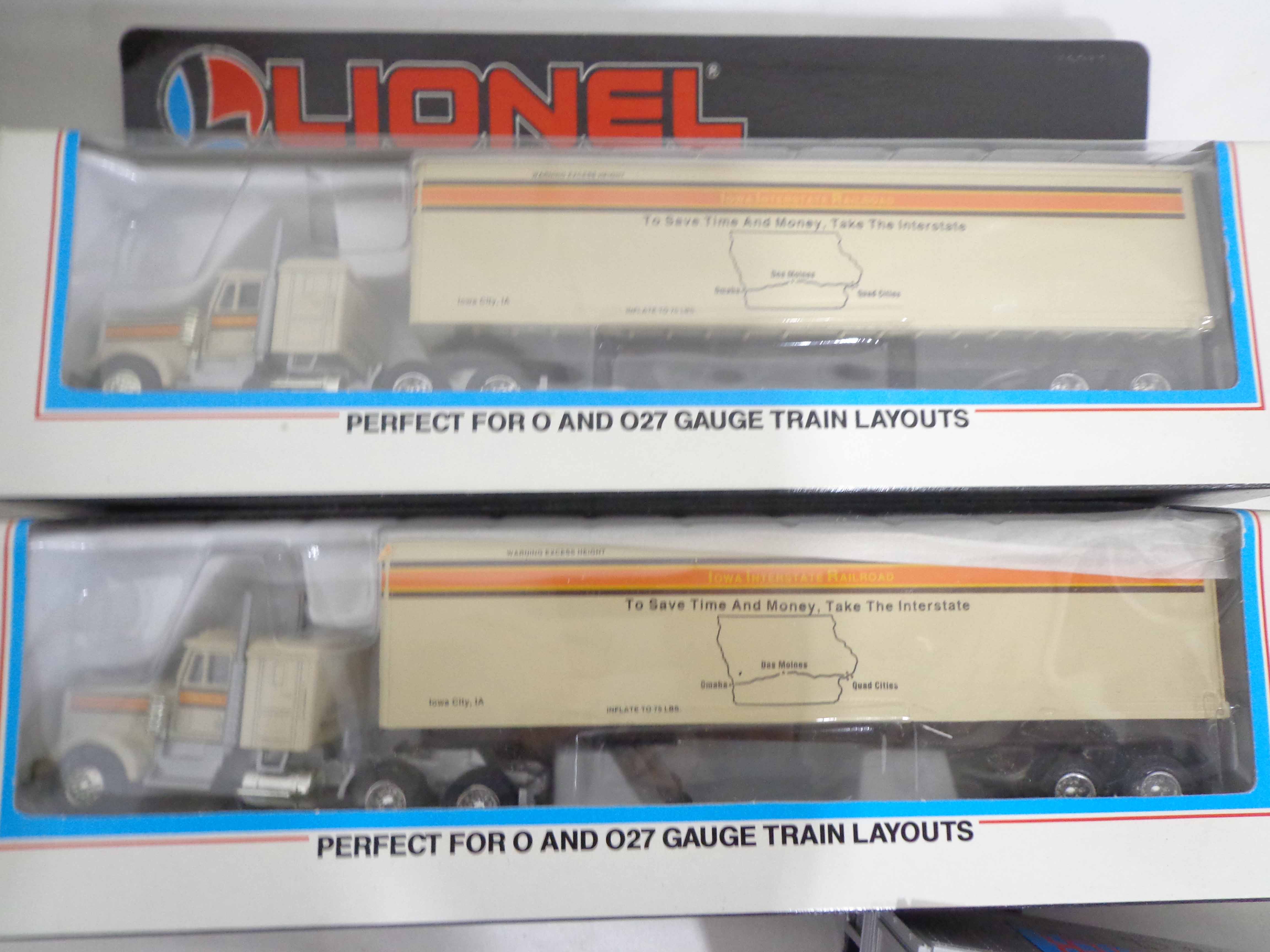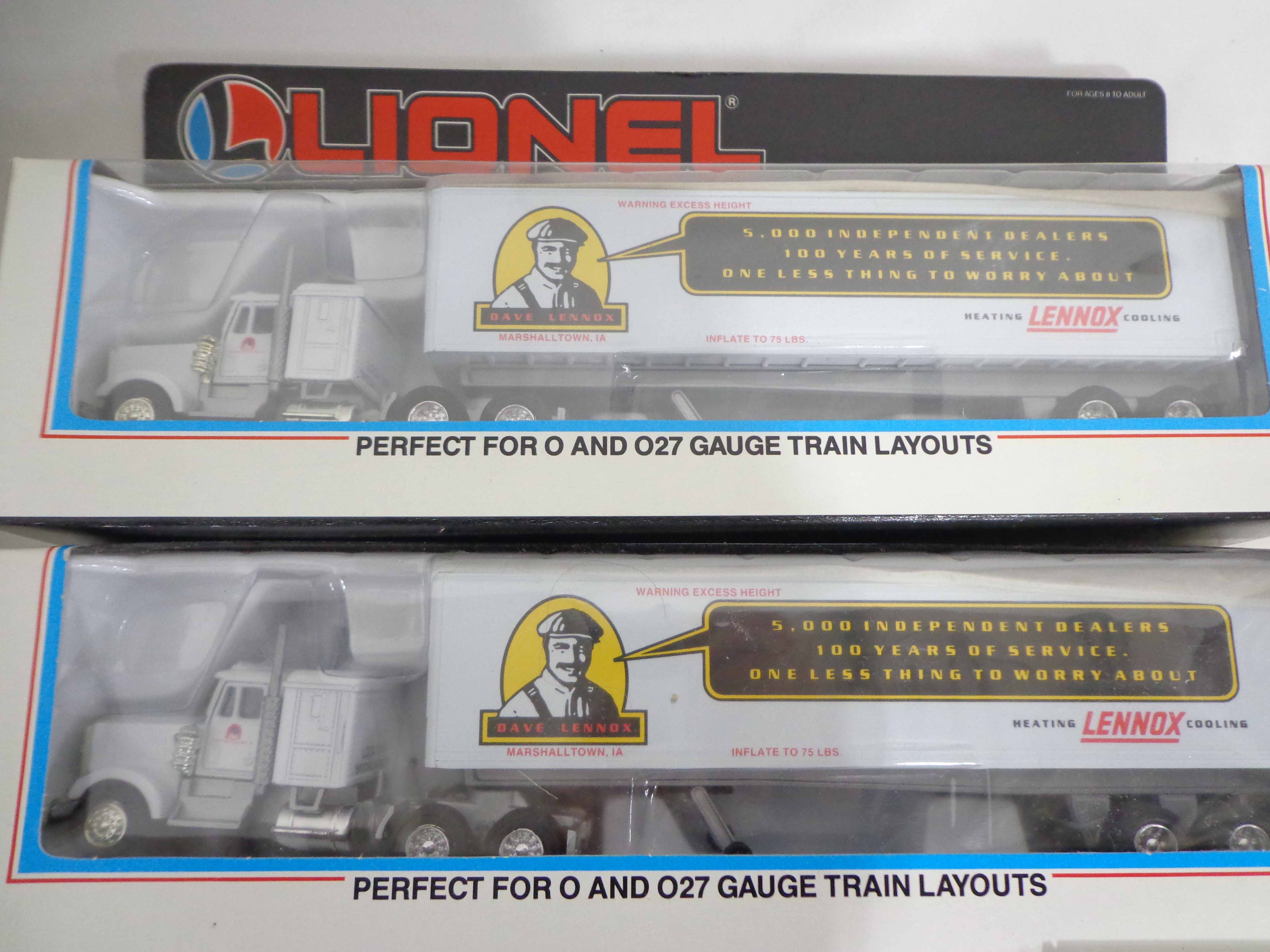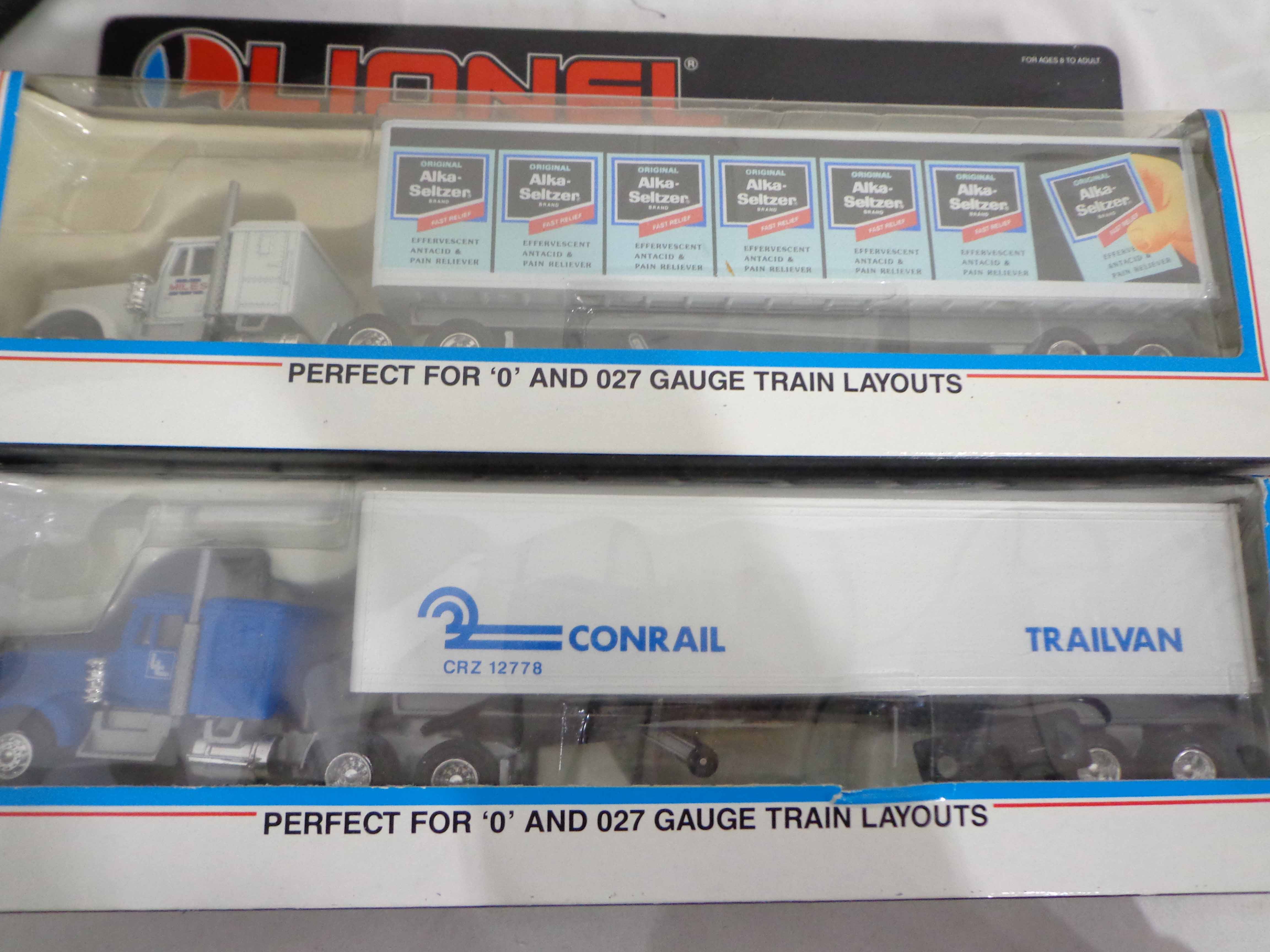 These are twenty-four Assorted Tractor Trailers that Lionel made a few yers ago. Our Opinion is that they are generally in Like New or Better Condition. Original Boxes. All Original in our Opinion. Please add $50.00 for US-48 Shipping and Insurance (more west of the Mississippi).