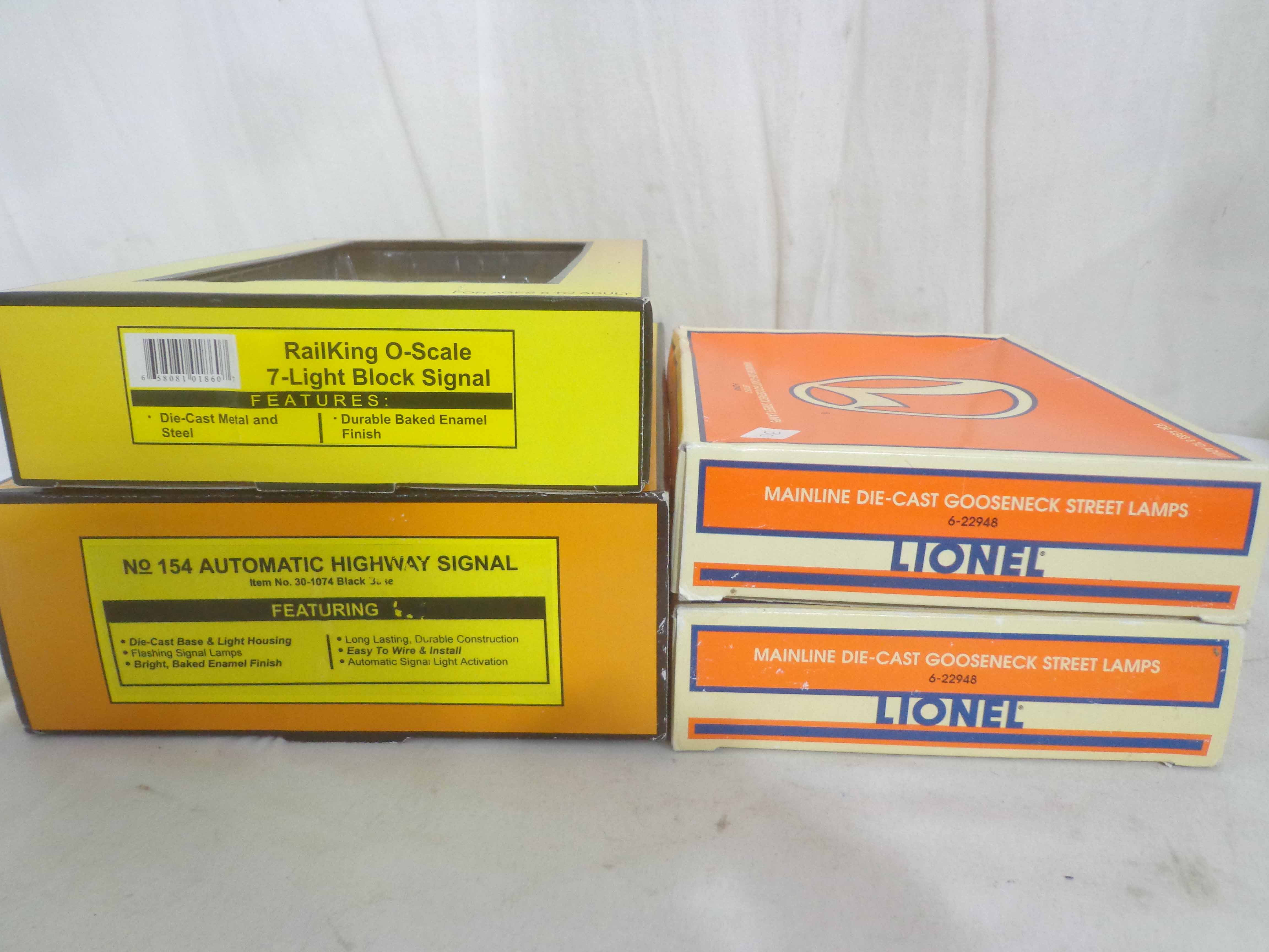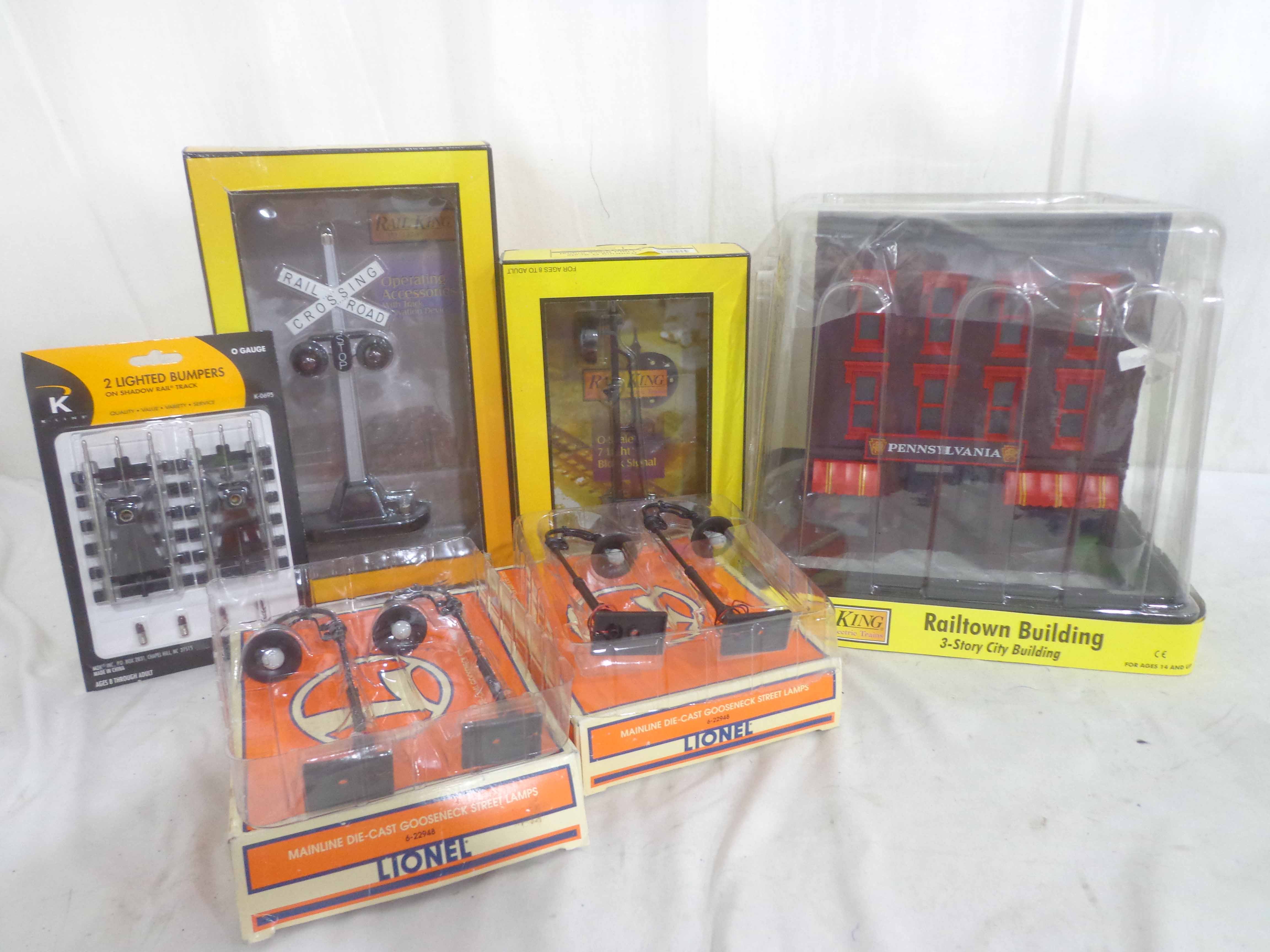 6 Mint Assorted Lionel/MTH/K-Lione Accessories/OBs and Plastic Case