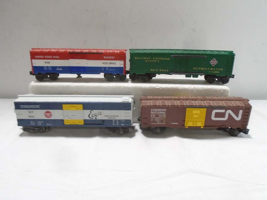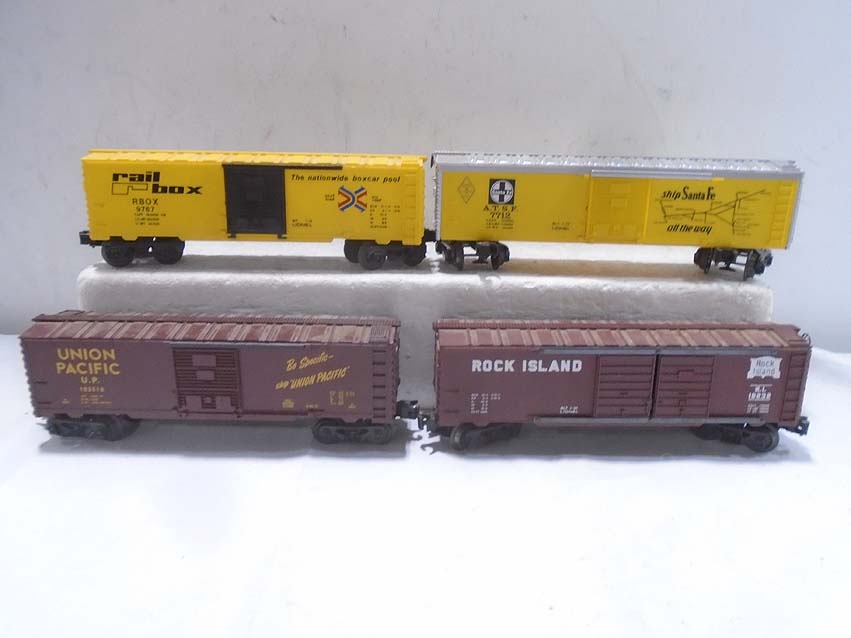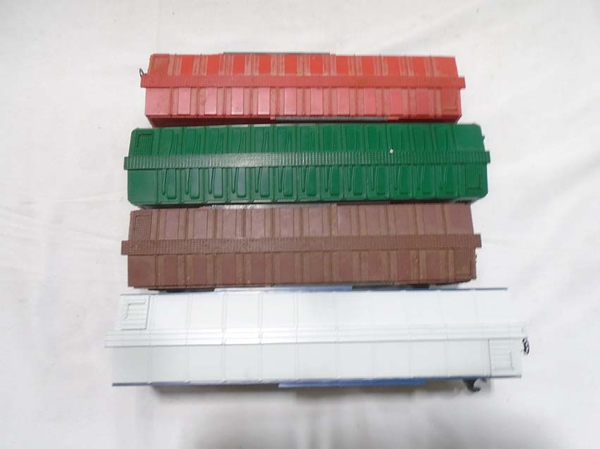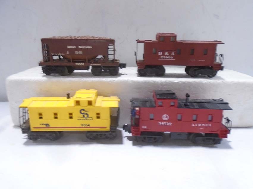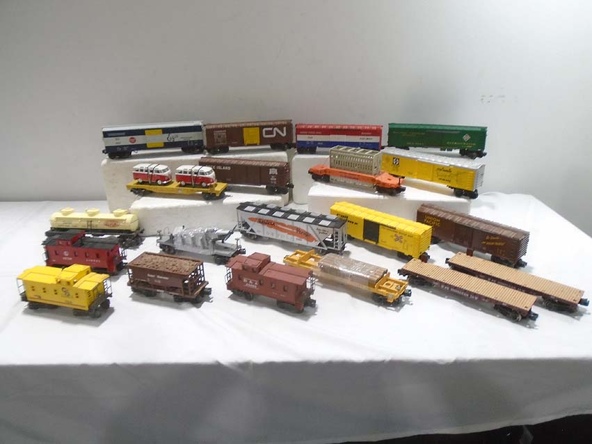 These are twenty Assorted Freight Cars & Cabooses that MTH/Lionel/Menards made a few years ago. Our Opinion is that they are generally in Excellent Condition. No Boxes. Examine closely; what is pictured is what you will receive. Please add $60.00 for US-48 Shipping and Insurance (more west of the Mississippi).