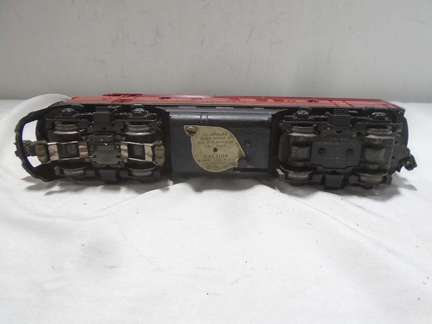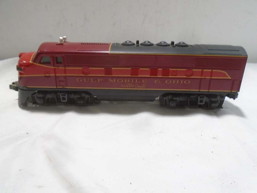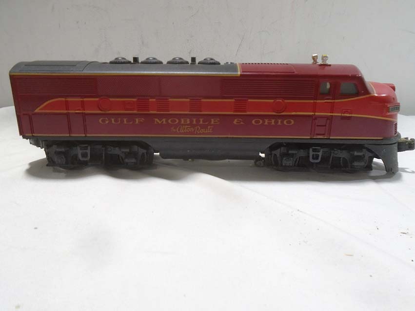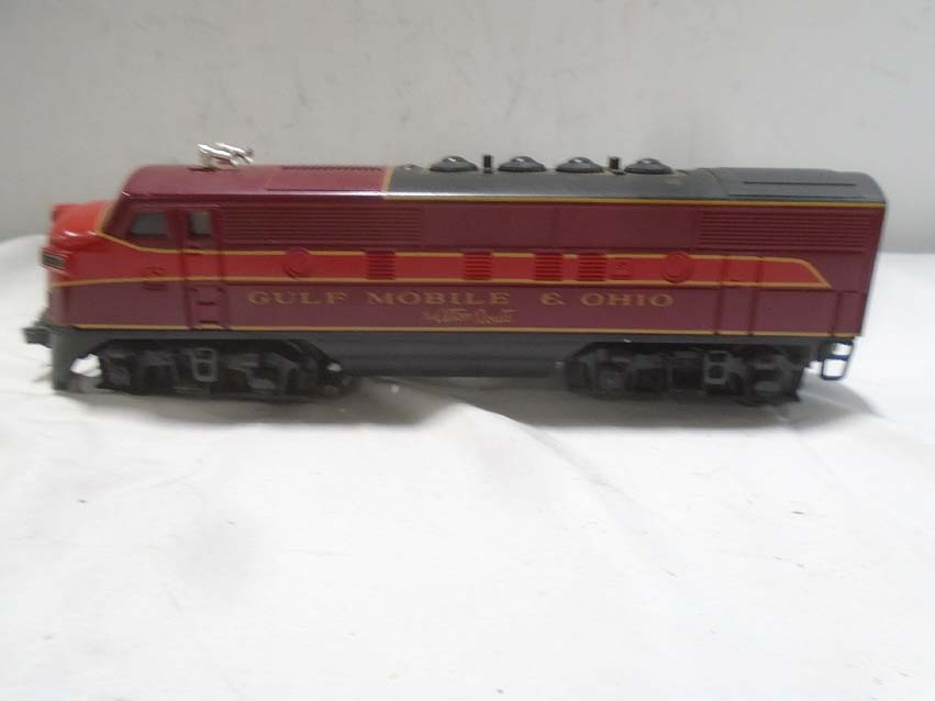 These are the #2333-20 GM&O F3 AA Diesel Engines (repainted/postwar frames that Lionel made a few years ago. Dual Motors, Magnetraction, and Horn. No Boxes. Examine very closely; what is pictured is what you will receive. Please add $45.00 for US-48 Shipping and Insurance (more west of the Mississippi). |