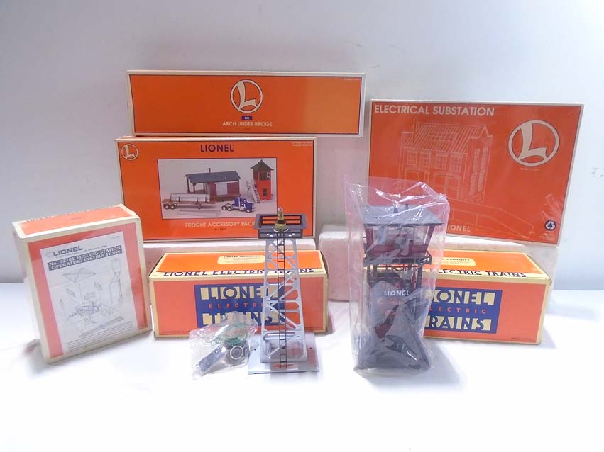 These are six Assorted Accessories that Lionel made a few years ago. Our opinion is that they are generally in Like New or Better Condition. Original Boxes (two sealed. All Original in our Opinion. Please add $50.00 for US-48 Shipping and Insurance (more west of the Mississippi).