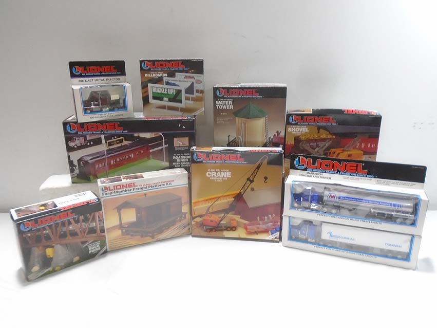 These are ten Assorted Accessories that Lionel made a few years ago. Our Opionion is that they are generally in Mint Condition. Original Boxes. All Original in our Opinion. Please add $50.00 for US-48 Shipping and Insurance (more west of the Mississippi). |