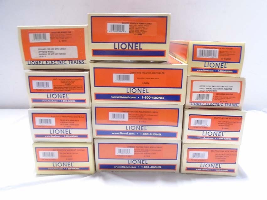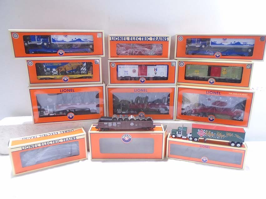 12 Mint Assorted Lionel Freight Cars and Tractor Trailers/OBs