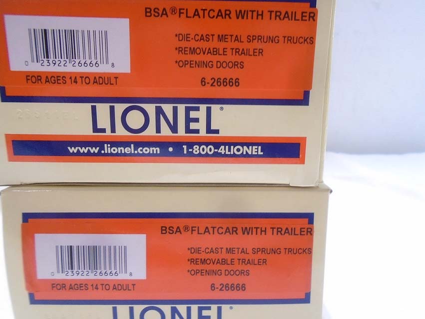 These are ten Assorted Freight Cars and Tractor Trailers that Lionel made a few years ago. Our Opionion is that they are generally in Mint Condition. Original Boxes. All Original in our Opinion. Please add $50.00 for US-48 Shipping and Insurance (more west of the Mississippi). |