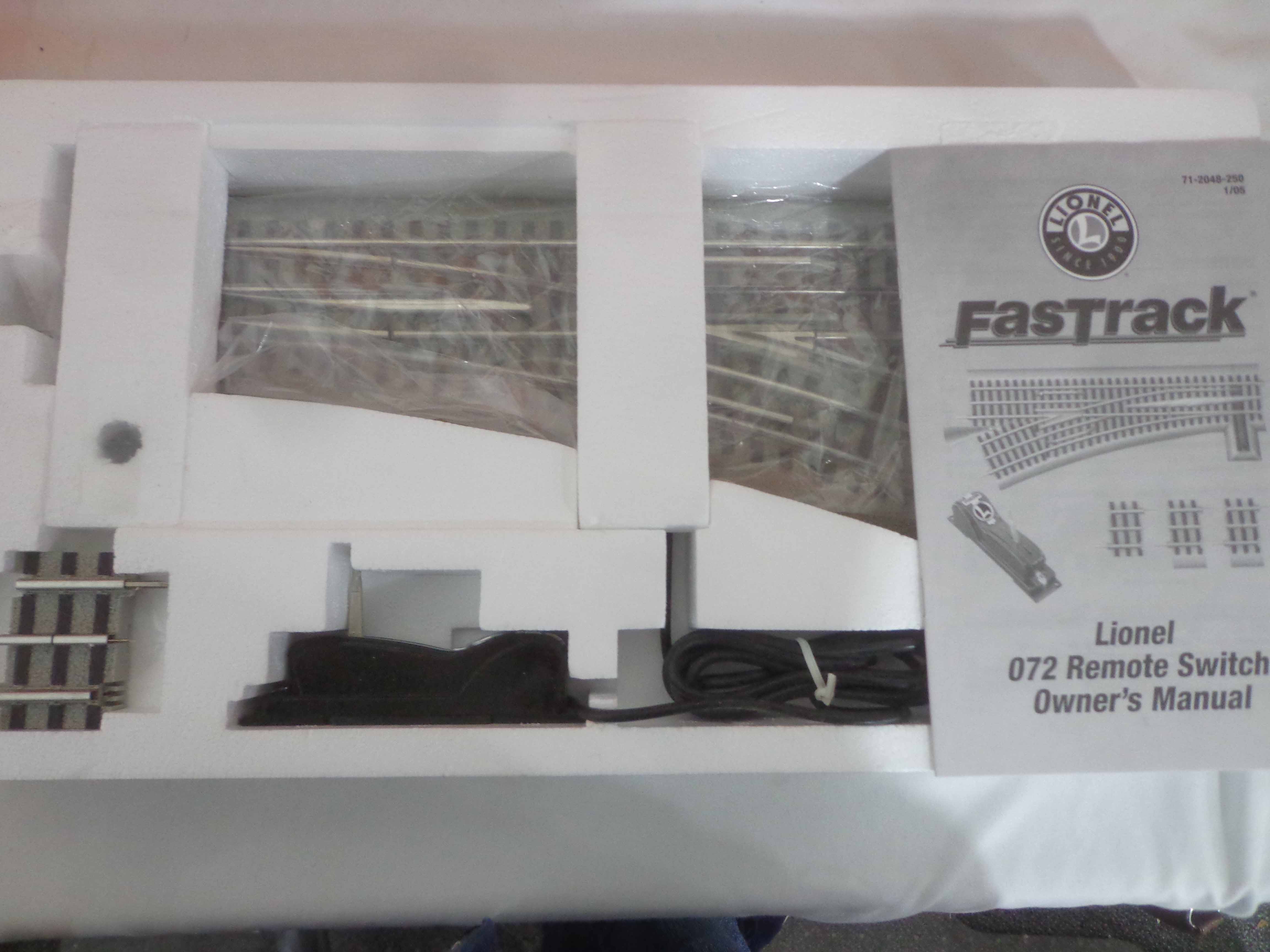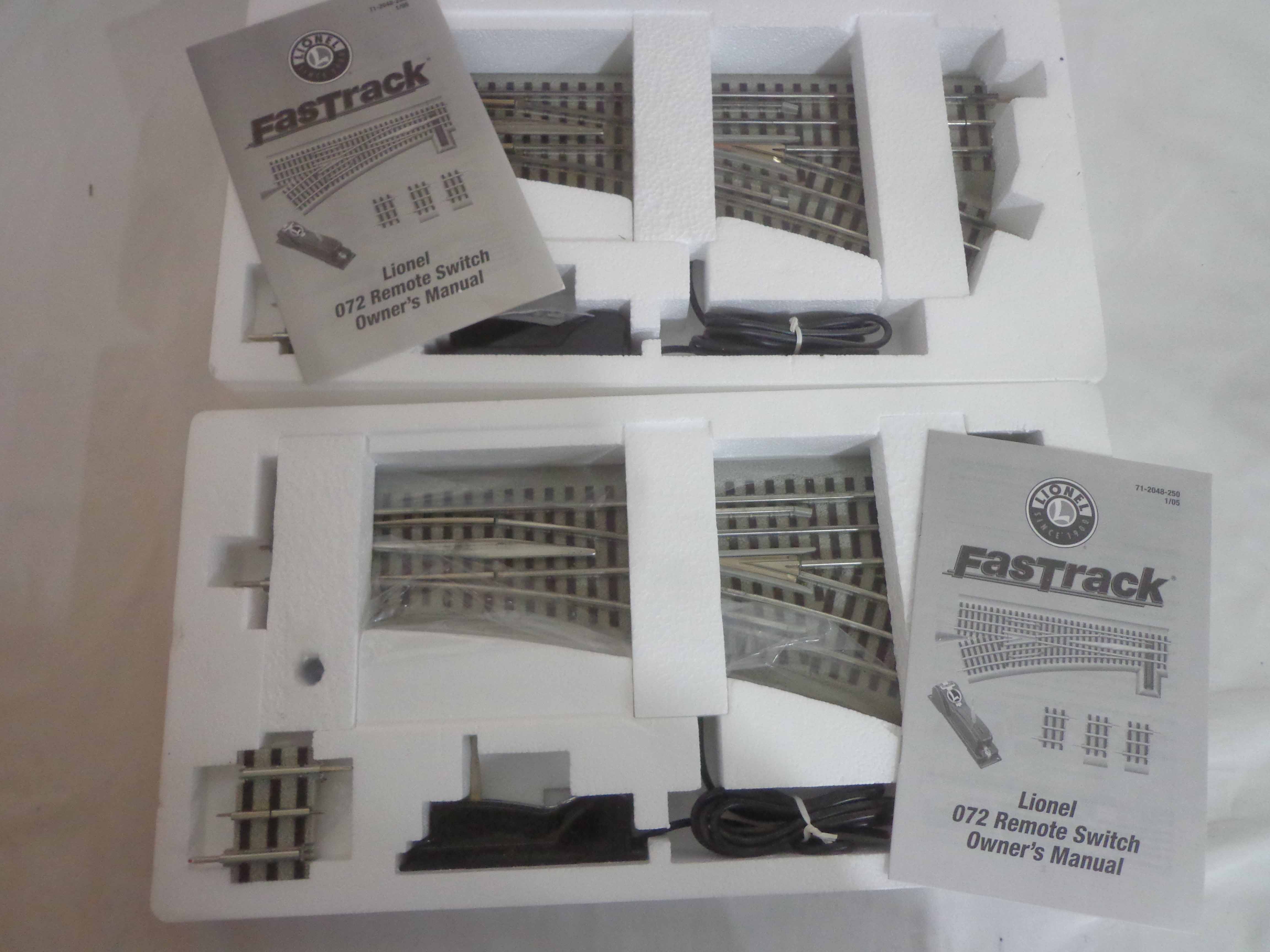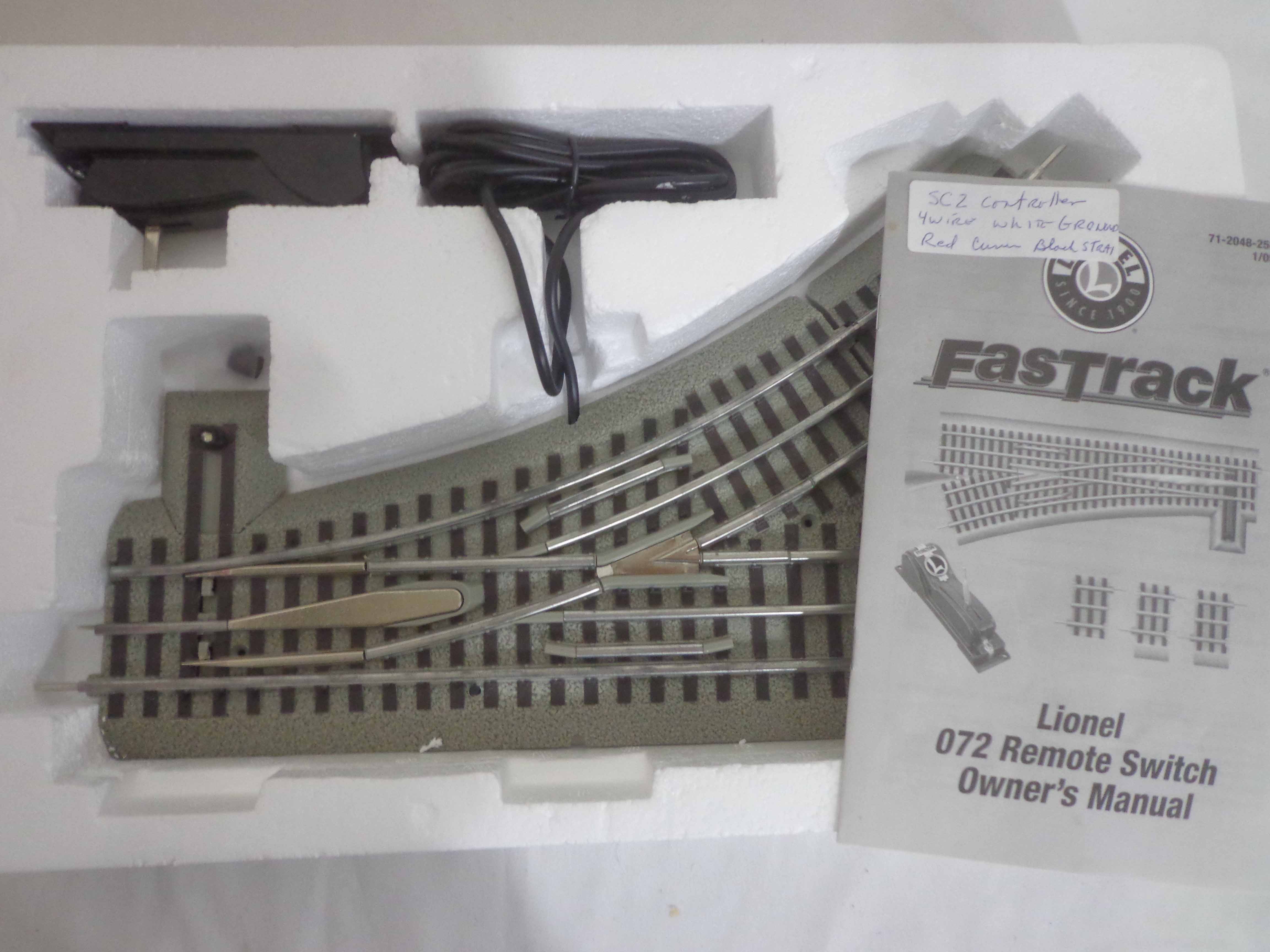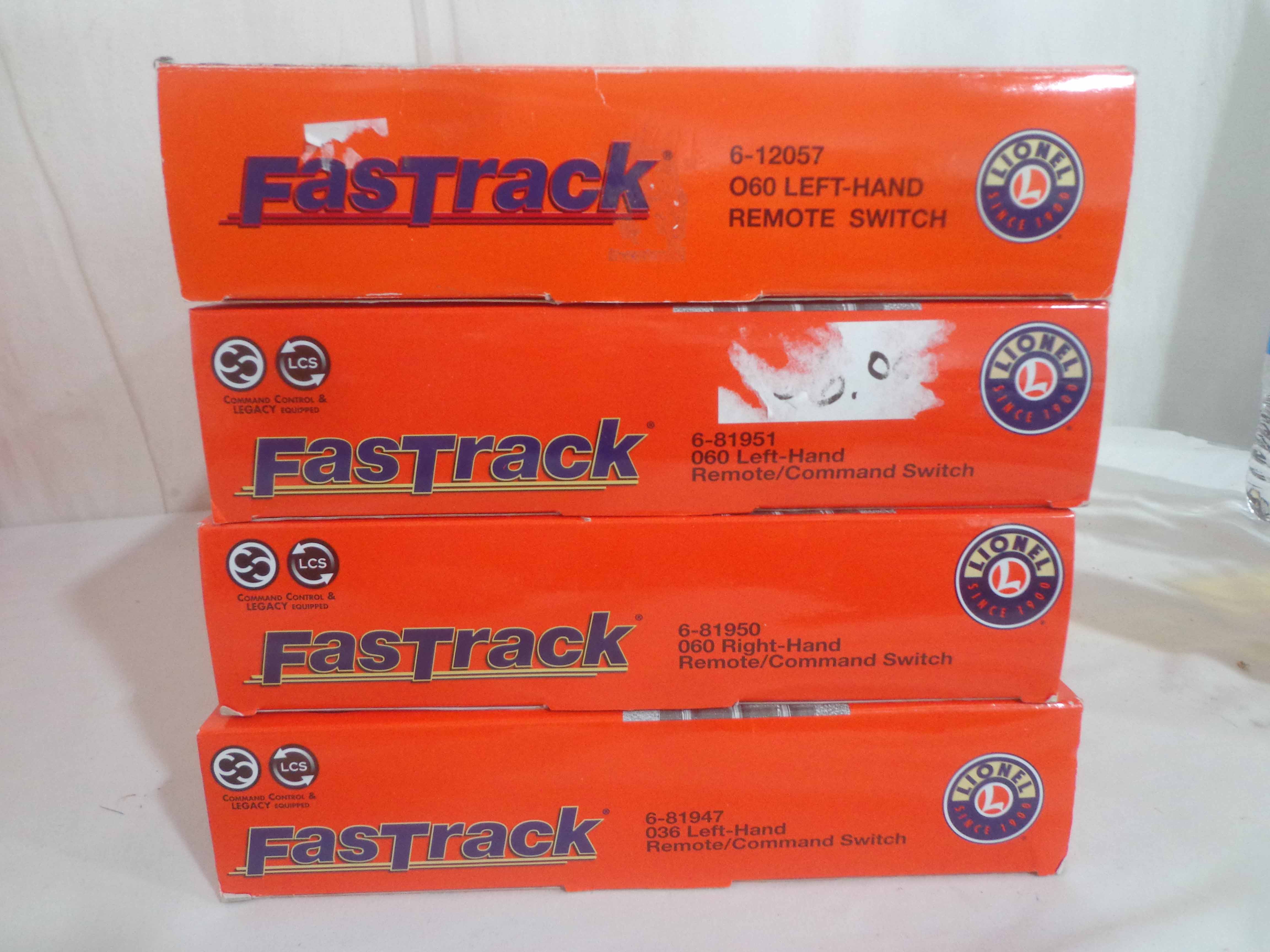 This is the nine Assorted Fastrack Control Switches that Lionel made a few years ago. Our Opinion is that they are generally in Mint Condition. Original Boxes. All Original in our Opinion. Please add $50.00 for US-48 Shipping and Insurance (more west of the Mississippi).