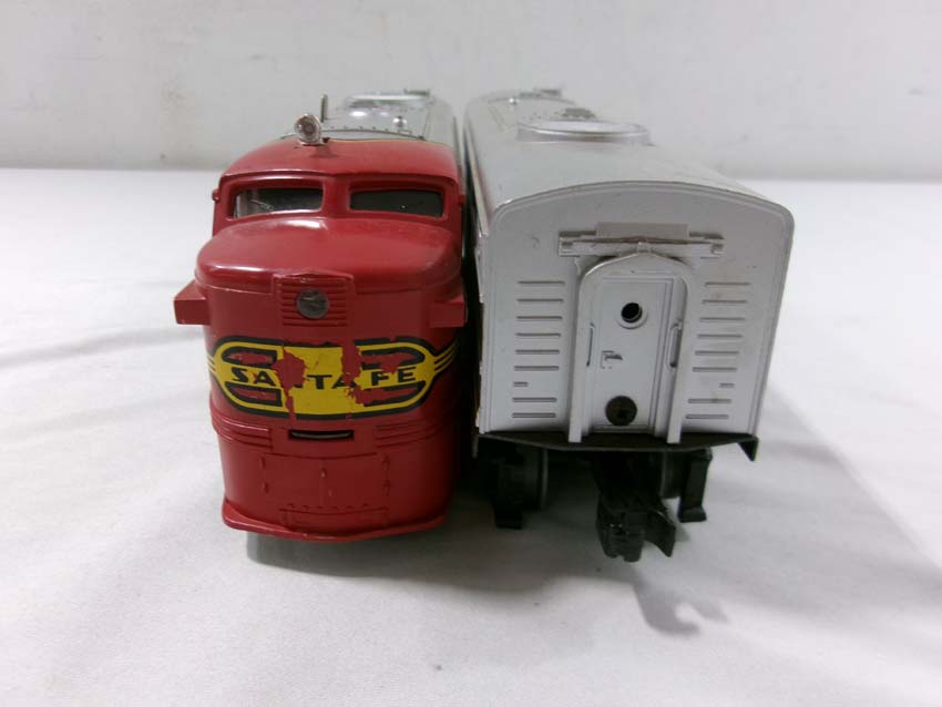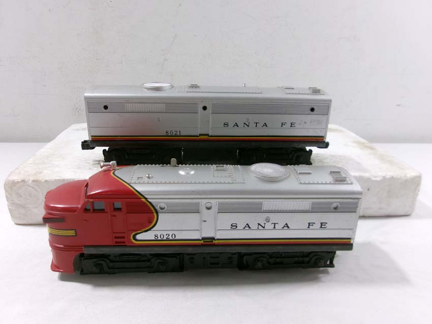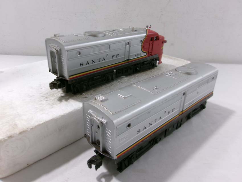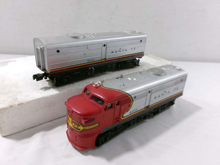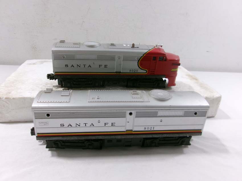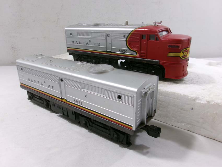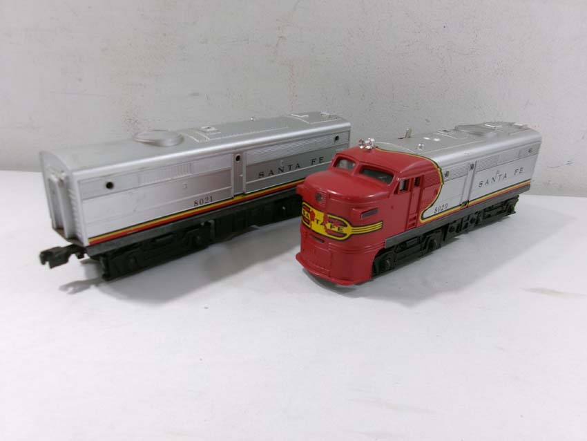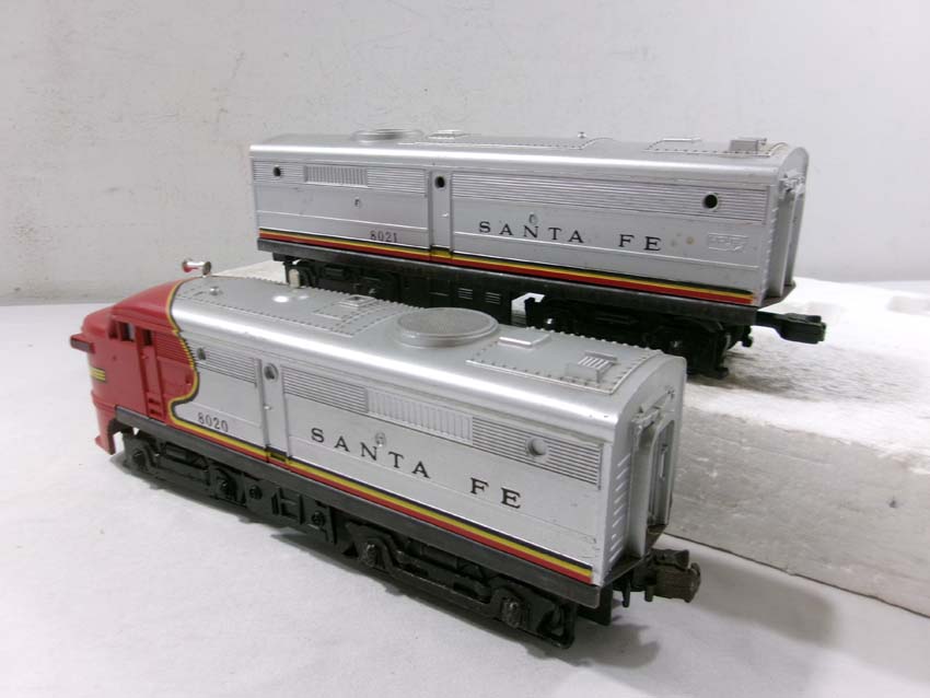 These are the #8020/8021 SF Alco AA Diesel Engines that Lionel made in the early 1970s. Our Opinion is that they are generally in Like New Minus Condition. No Boxes. Examine closely; what is pictured is what you will receive. Please add $35.00 for US-48 Shipping and Insurance (more west of the Mississippi).