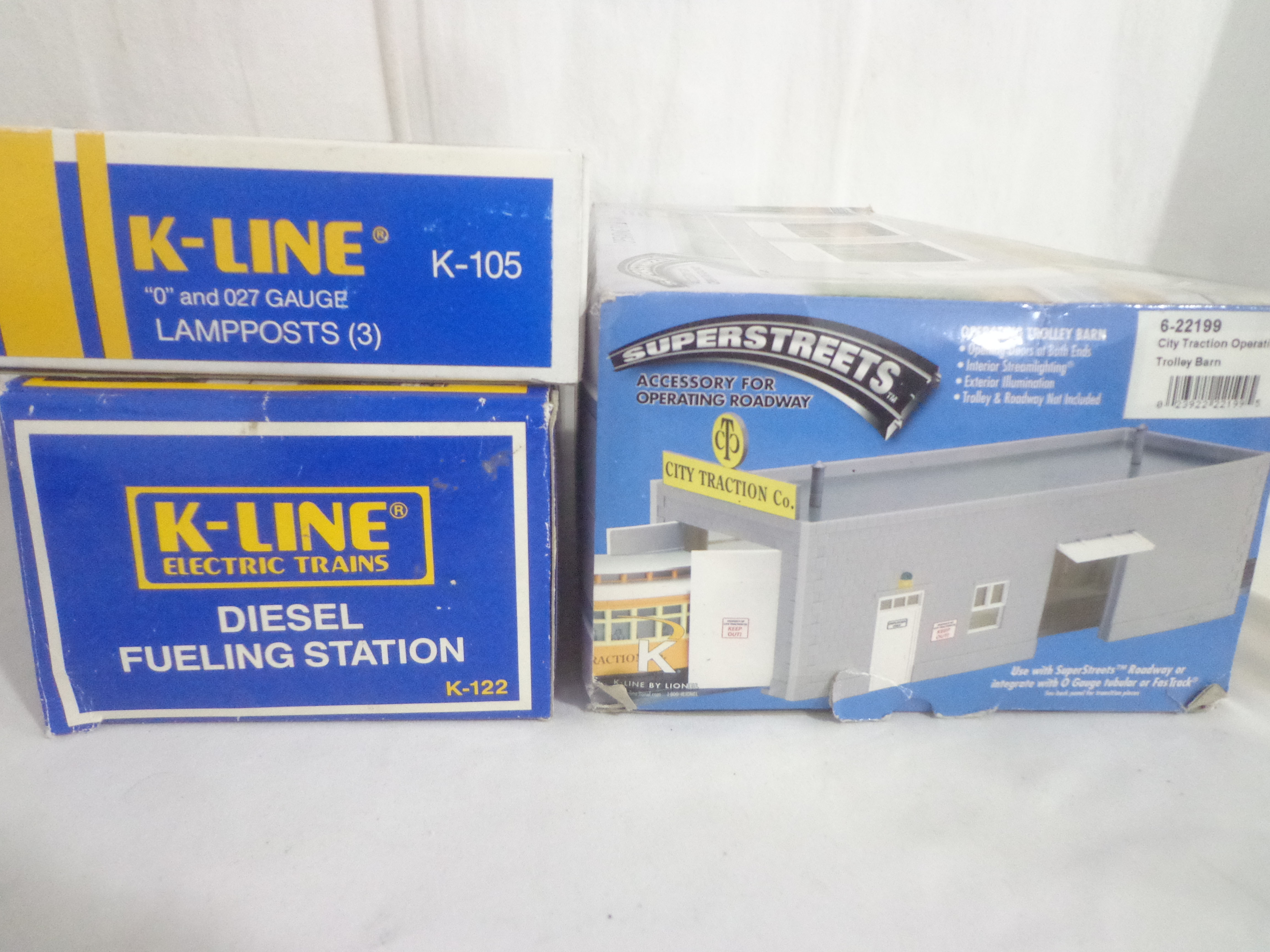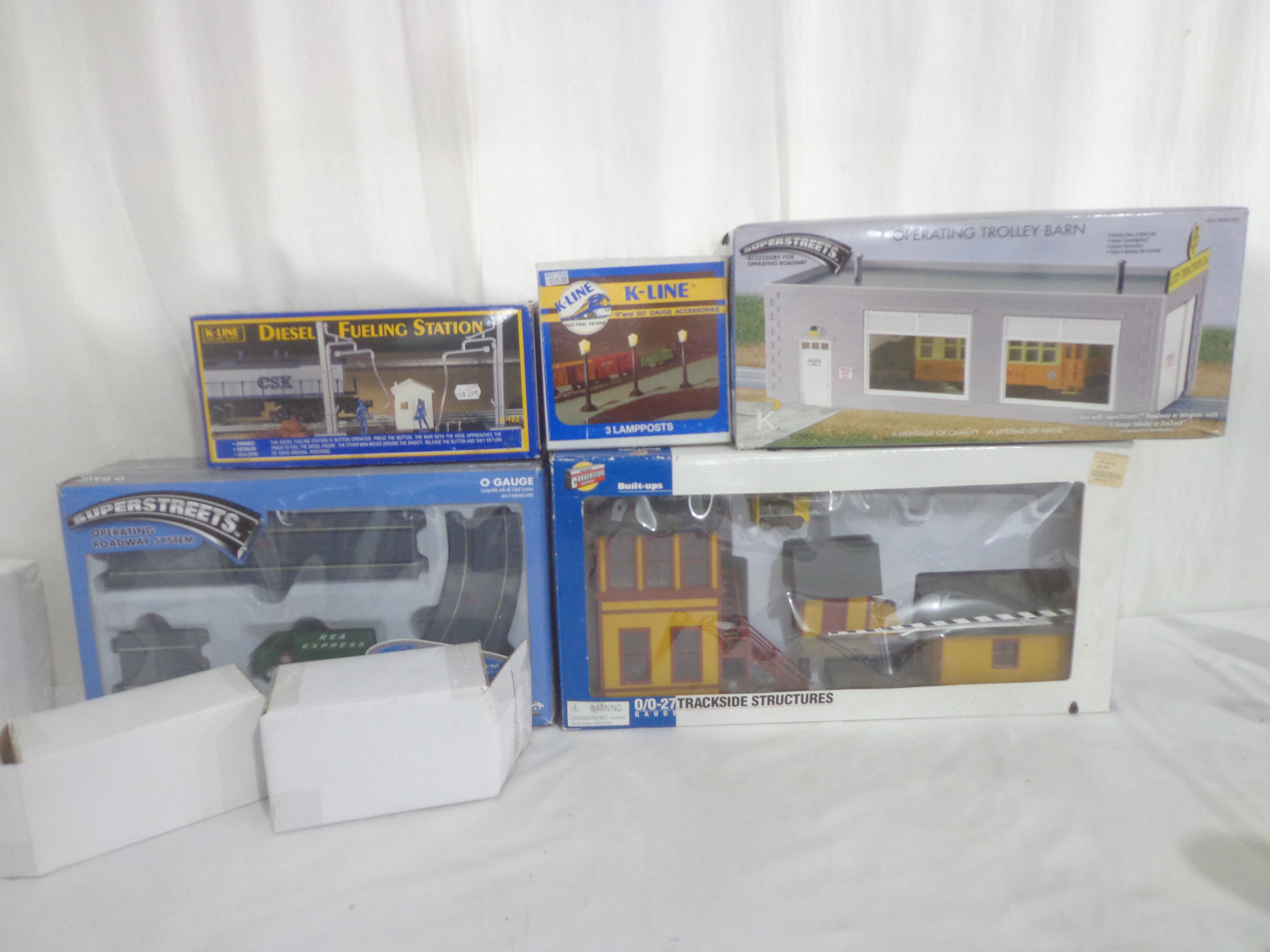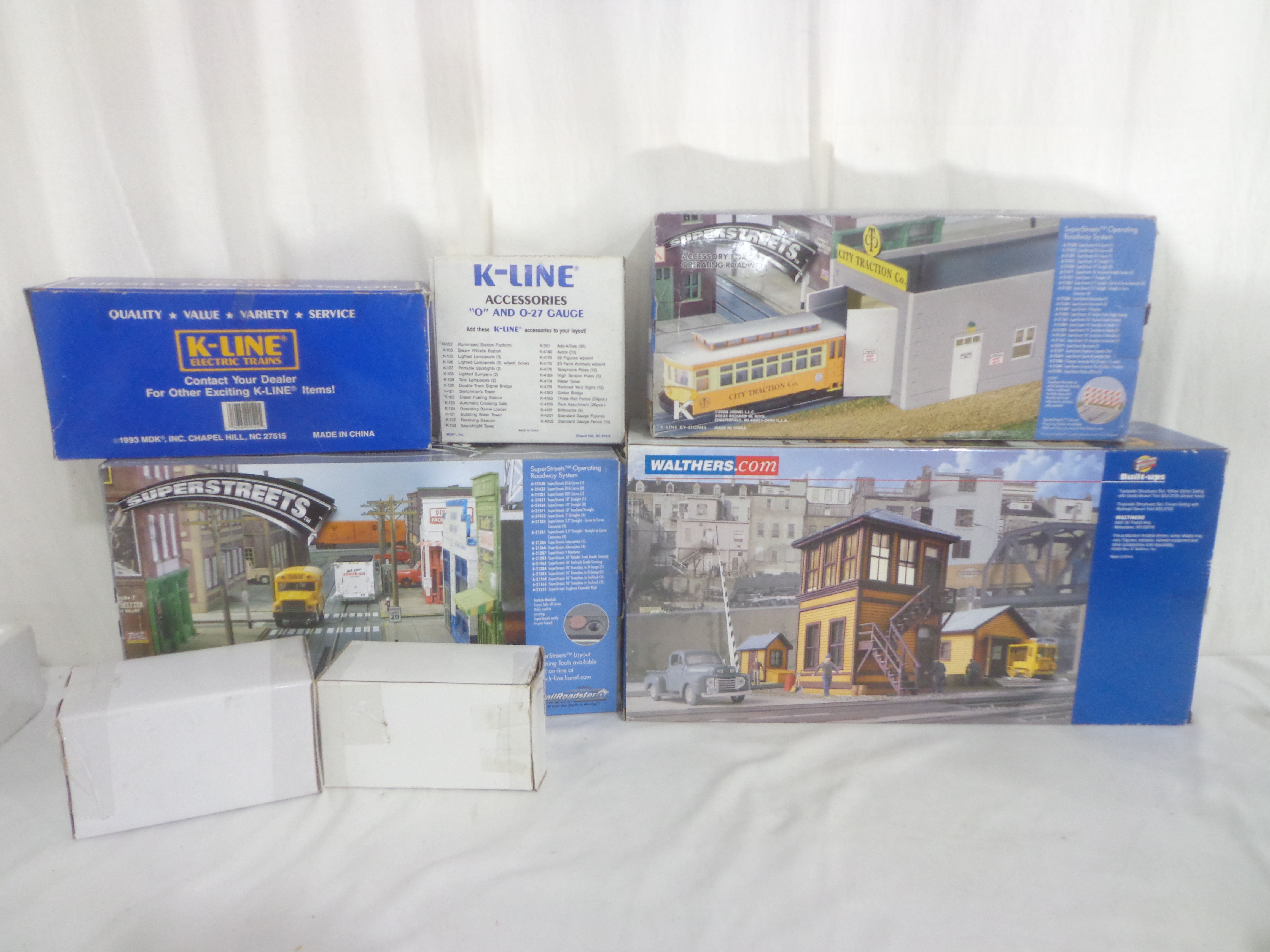 These are seven Assorted K-Line/Walthers/Mainstreet Accessories. Our Opinion is that it is generally in Like New or Better Condition. Original Boxes. All Original in our Opinion. Please add $50.00 for US-48 Shipping and Insurance (more west of the Mississippi).