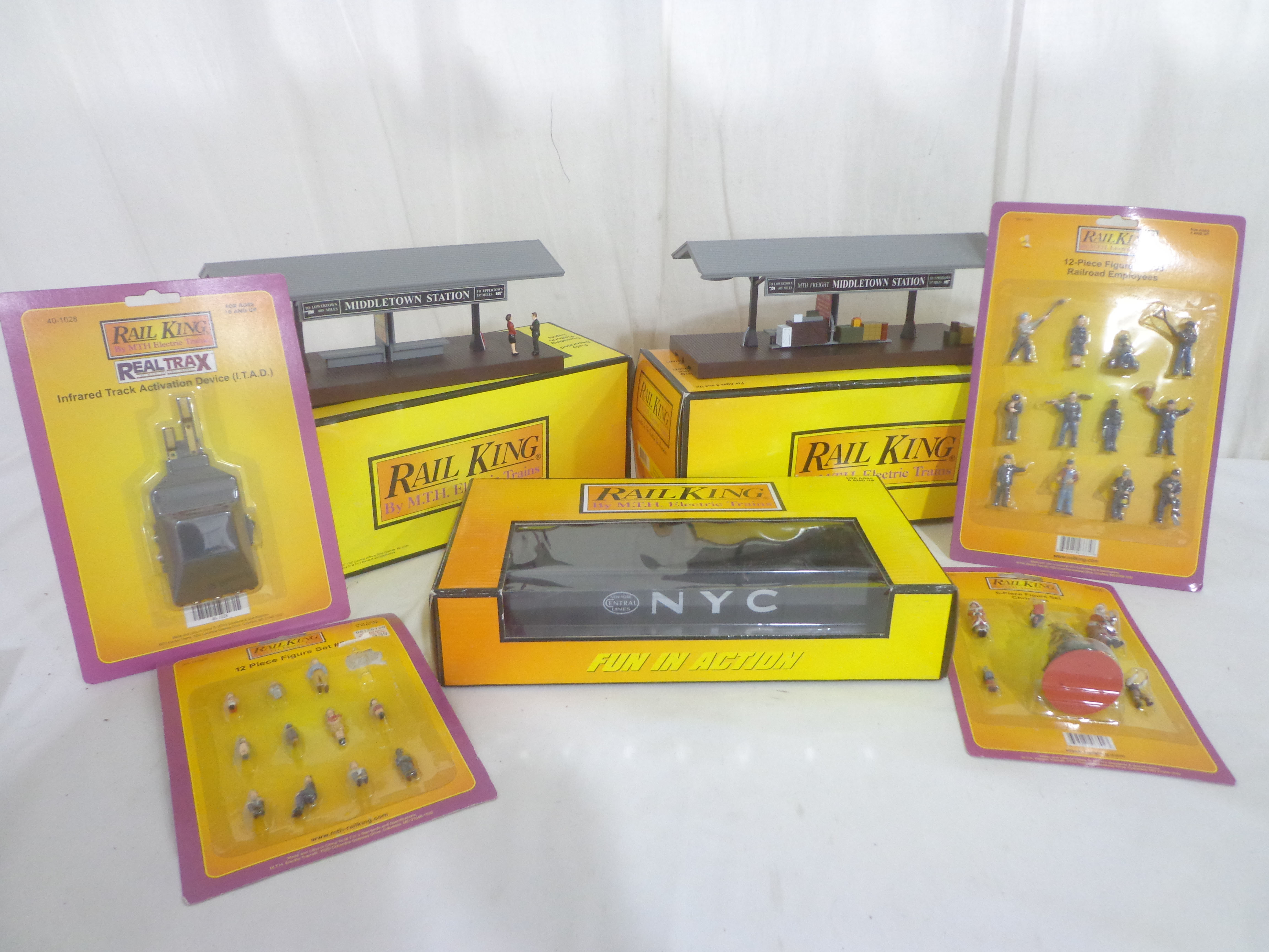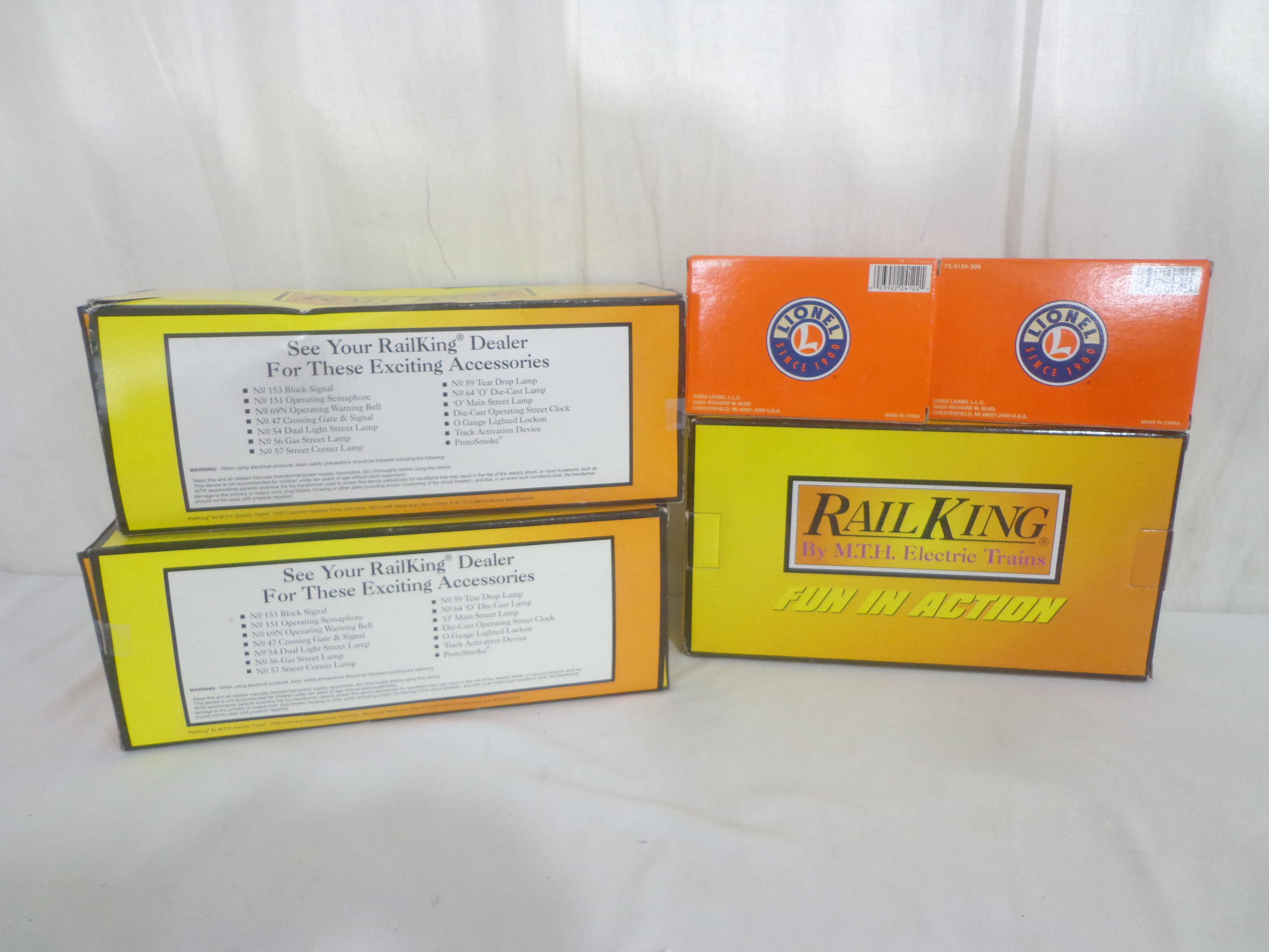 These are nine Assorted Accessories that MTH/Lionel made a few years ago. Our Opinion is that they are generally in Mint Condition. Original Boxes/Blister Packs. All Original in our Opinion. Please add $50.00 for US-48 Shipping and Insurance (more west of the Mississippi).