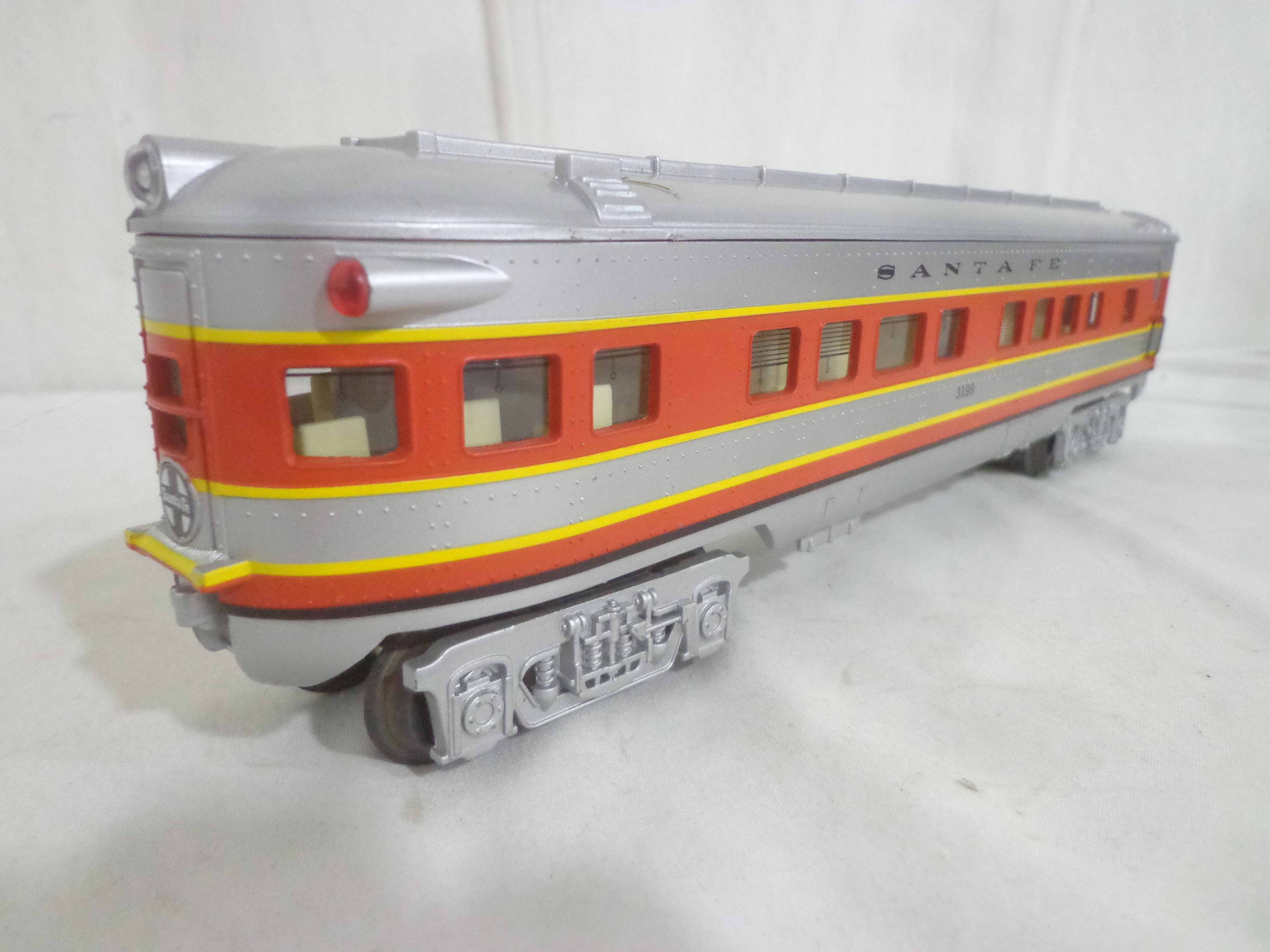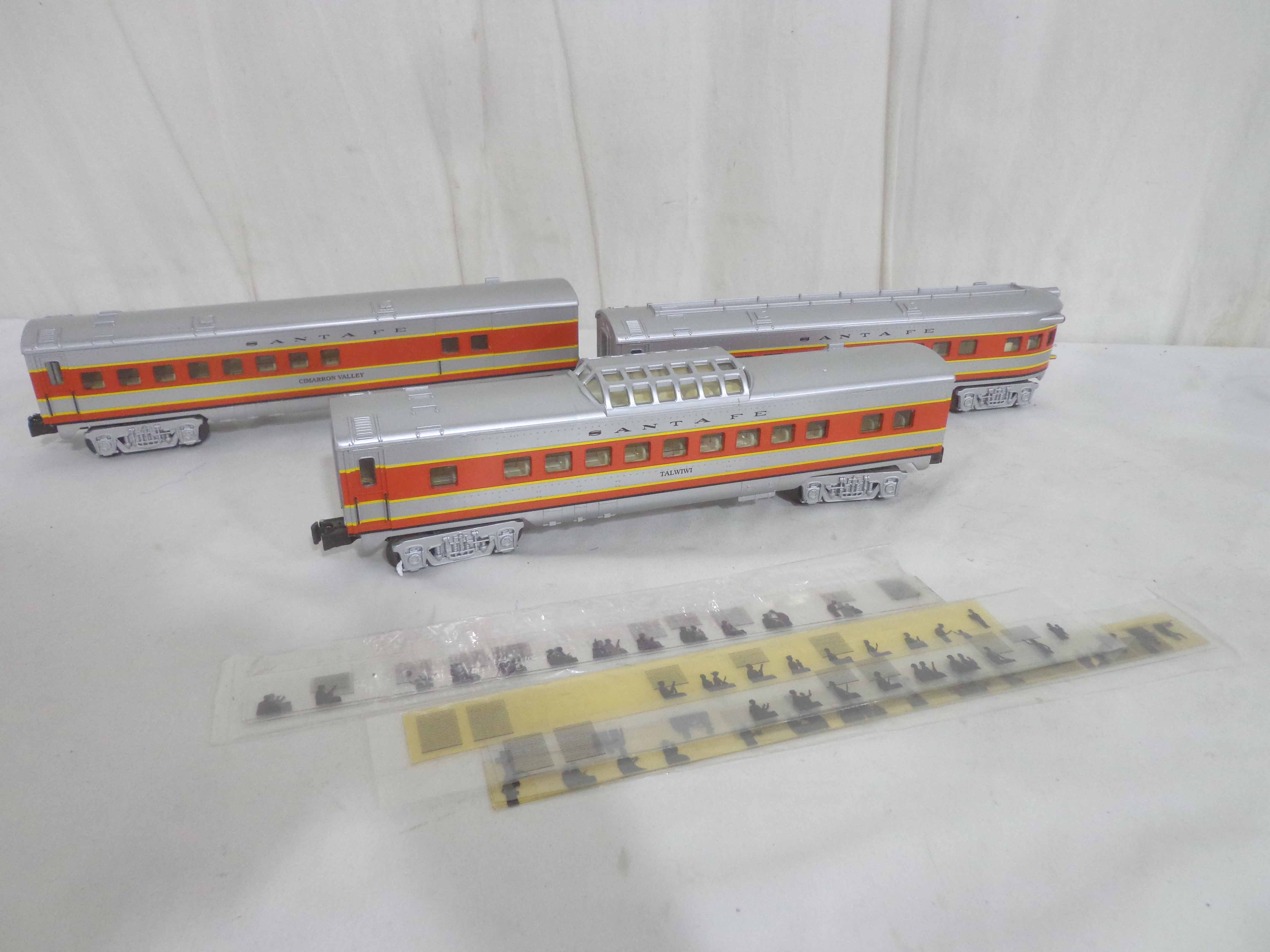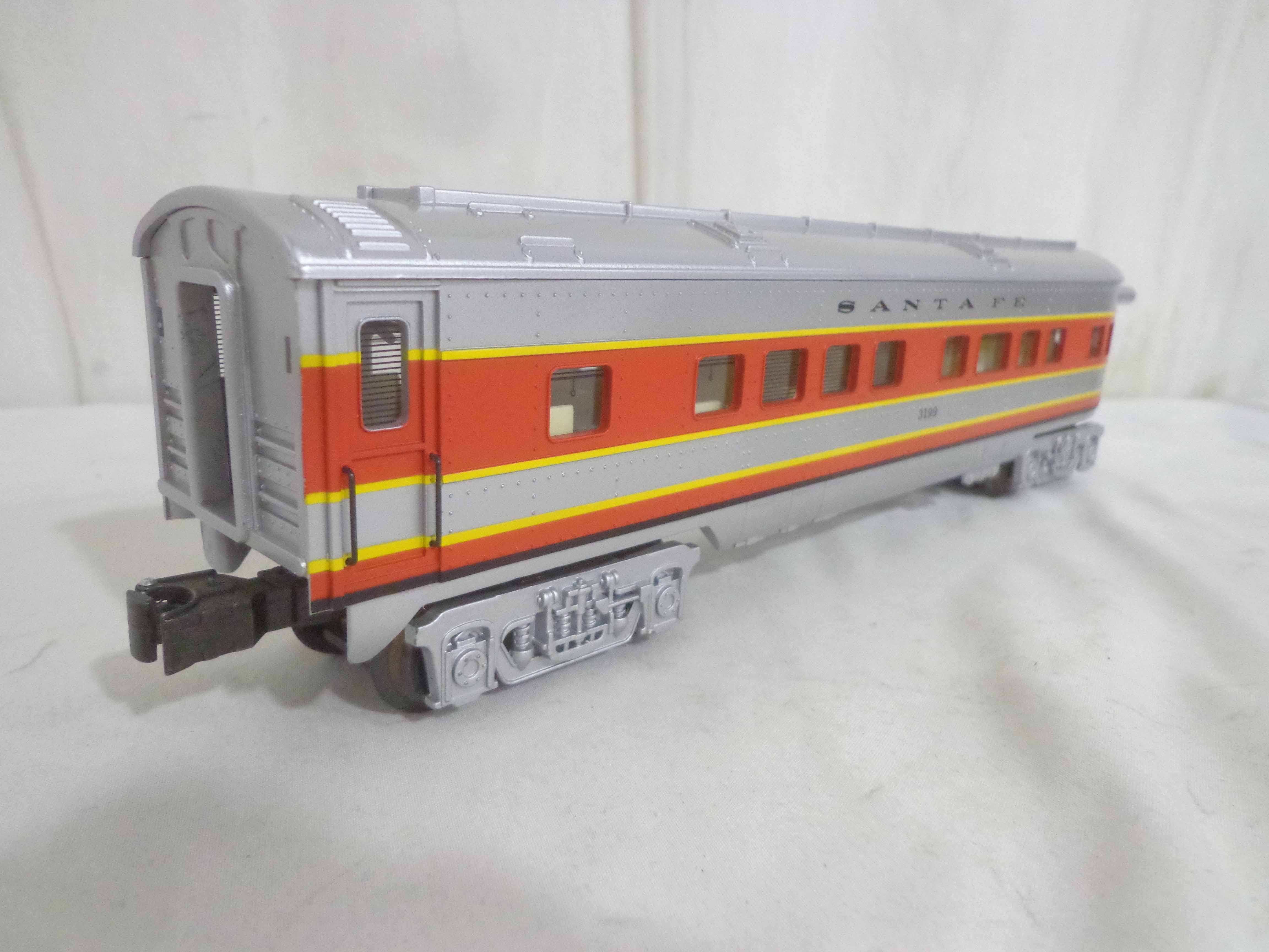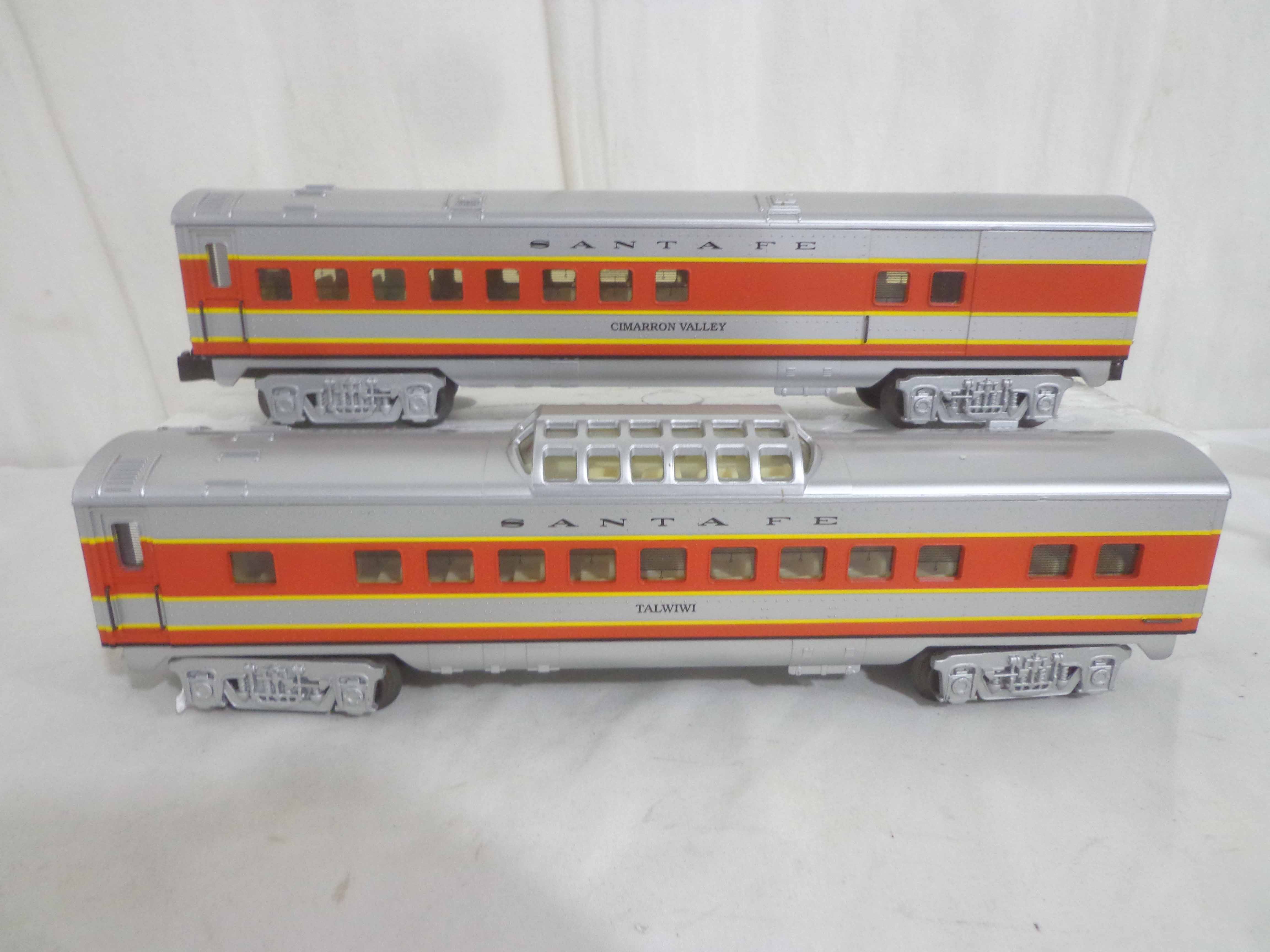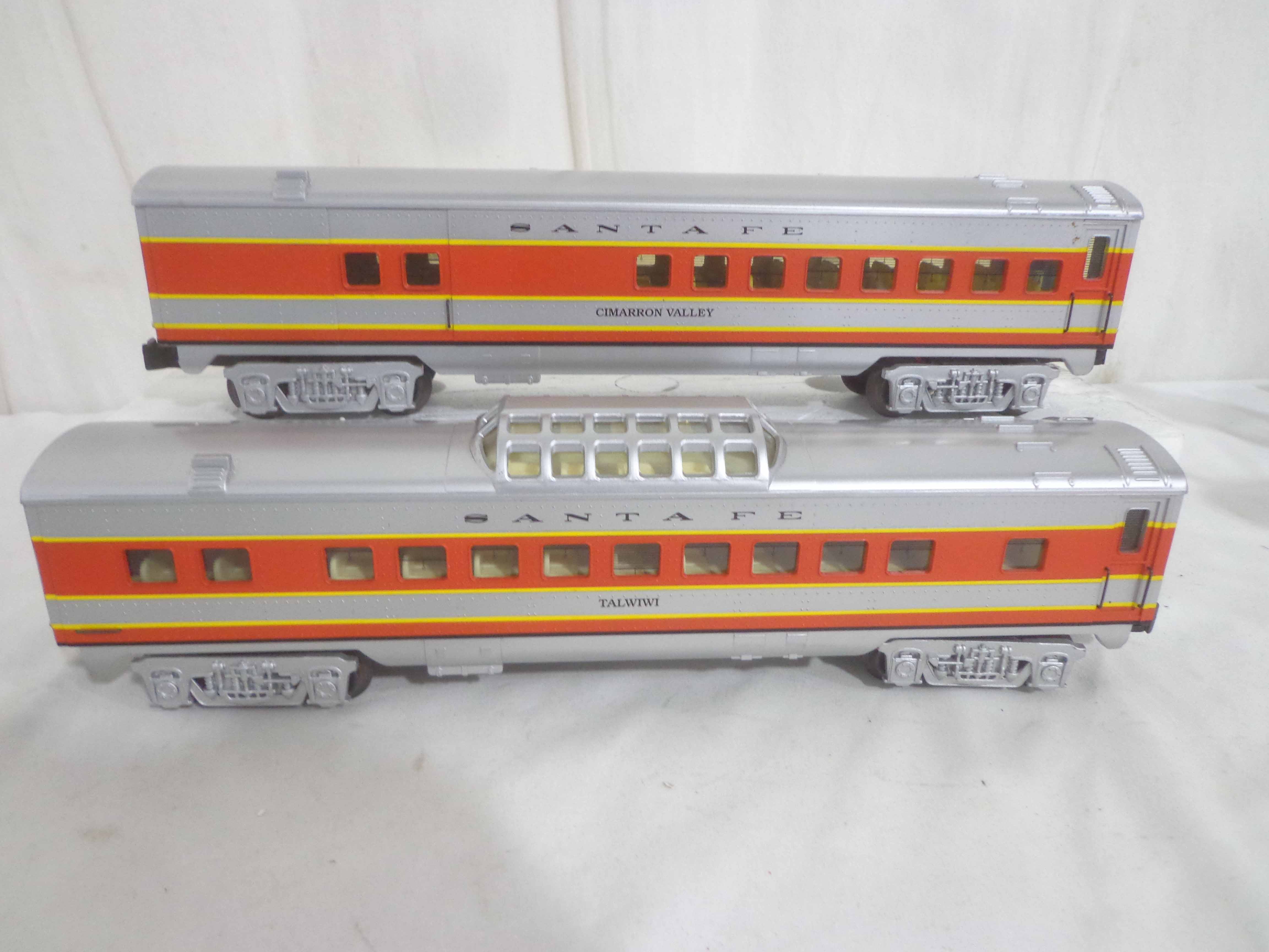 These are three Santa Fe Passenger Cars that K-Line made a few years ago. Our Opinion is that they are generally in Excellent Condition. No Boxes. Examine closely; what is pictured is what you will receive. Please add $40.00 for US-48 Shipping and Insurance (more west of the Mississippi). |