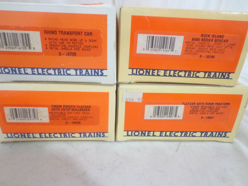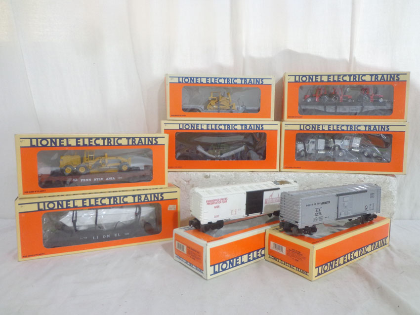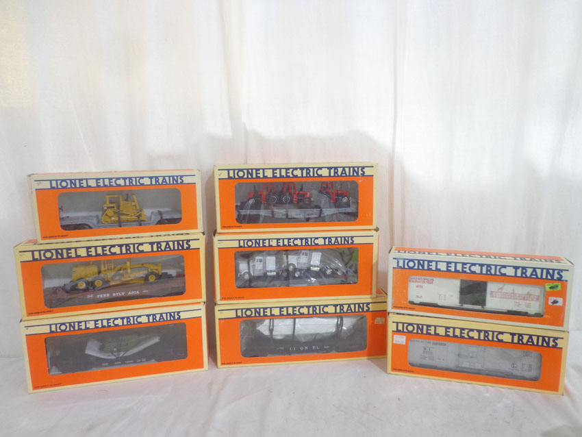These are eight Assorted Freight Cars & Trucr that Lionel made a few years ago. Our Opinion is that they are generally in Like New or Better Condition. Original Boxes. Please add $45.00 for US-48 Shipping and Insurance (more west of the Mississippi). |