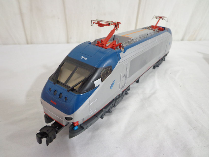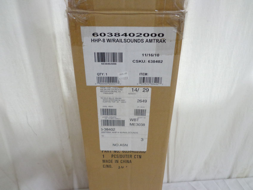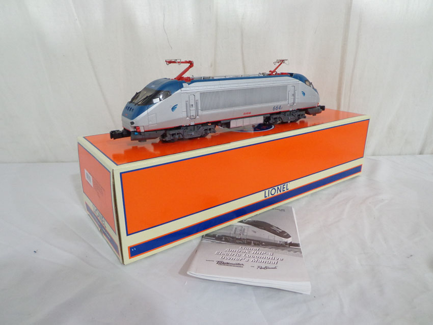 This is the #38402 Amtrak HHP-8 Electric Locomotive that Lionel made a few years ago. Features Command Control, Railsounds, Dual Motors, and Electrocouplers. Our Opinion is that it is generally in Mint Condition. Original Box. All Original in our Opinion. Please add $40.00 for US-48 Shipping and Insurance (more west of the Mississippi).
