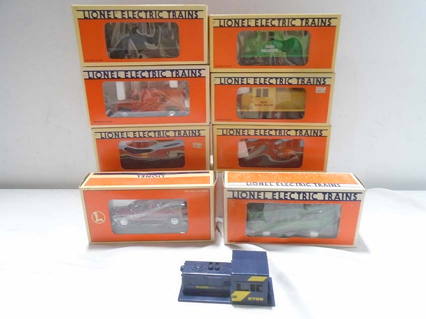 These are the #18901 CSX Diesel Switcher, the #18925 D&RG Diesel Switcher, the #18911 UP Diesel Switcher, the #18912 Amtrak Diesel Switcher, the #18926 Reading Diesel Switcher, the #18436 Dodge Track Inspection Truck, the #18423 On-Track Step Van, the #18404 San Francisco Trolley and the #8769 Republic Steel Switcher Shell that Lionel made a few years ago. Our Opinion is that they are generally in Like New Condition. Eight Original Boxes. All Original in our Opinion. Please add $50.00 for US-48 Shipping and Insurance (more west of the Mississippi).