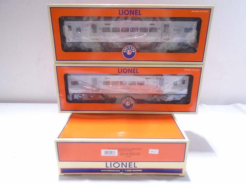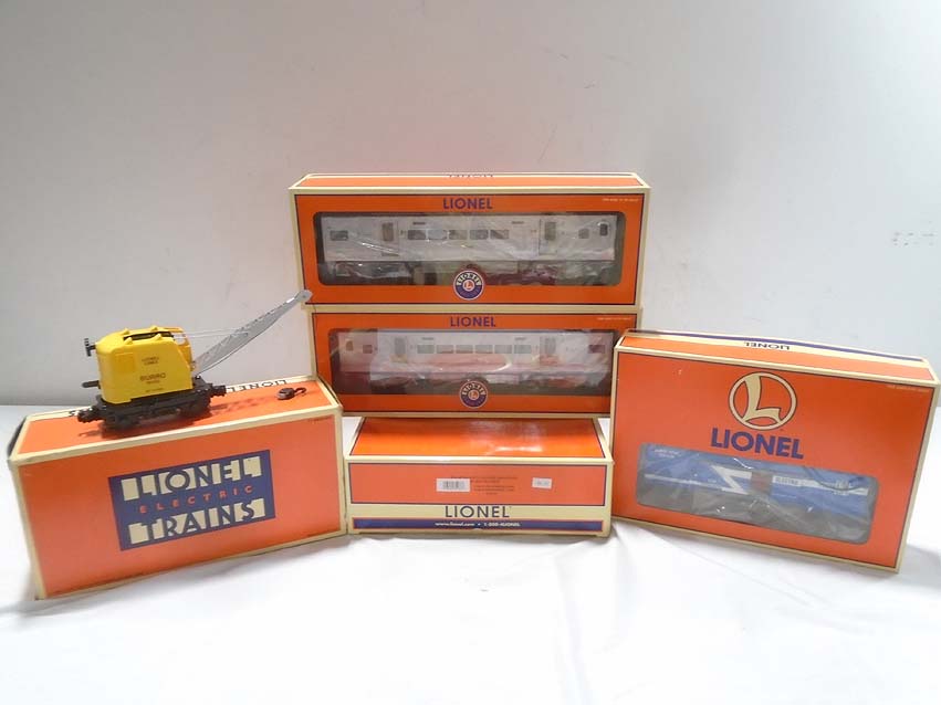 Lionel #18402 Operating Burro Crane, #35133 MTA Metro North RR M-7 Commuter Add-On 2-Pack and #19831 Operating GM Generator Car/OBs