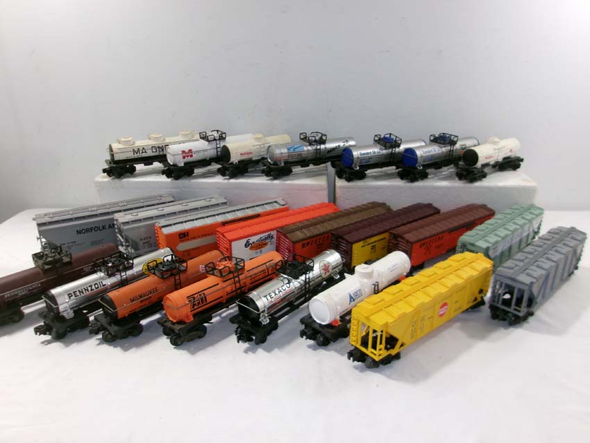 These are twenty-three Assorted Freight Cars that Lionel made a few years ago. Our Opinion is that they are generally in Excellent Condition. No Boxes. Examine closely; what is pictured is what you will receive. Please add $60.00 for US-48 Shipping and Insurance (more west of the Mississippi).