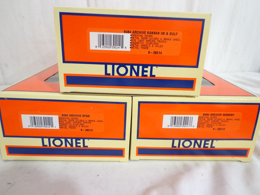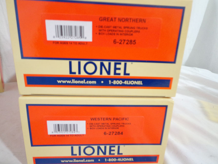 These are the #39211 6464 Archive Box Cars Set of 3, the #27283 Postwar Box Cars Set of 2, the #82674 Union Pacific Rotary Gondolas Set of 2, and the #19978 Railroader Club Box Car that Lionel made a few years ago. Our Opinion is that they are generally in Mint Condition. Original Boxes. All Original in our Opinion. Please add $50.00 for US-48 Shipping and Insurance (more west of the Mississippi).