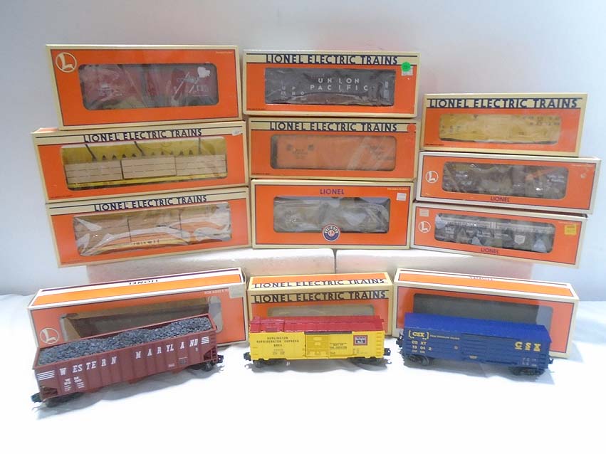 These are twelve Assorted Freight Cars that Lionel made a few years ago. Our Opinion is that they are generally in Mint Condition. Original Boxes. All Original in our Opinion. Please add $50.00 for US-48 Shipping and Insurance (more west of the Mississippi).