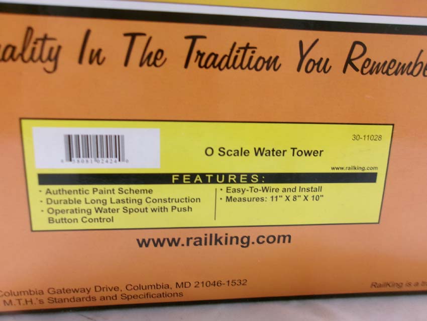These are the #30-9043 Operating Coaling Tower and #30-11028 Scale Water Tower from the recent past, the former a remake of American Flyer item from the 1950s. Our Opinion is that they are generally in Like Condition. Original Boxes. All Original in our Opinion. Please add $40.00 for US-48 Shipping and Insurance (more west of the Mississippi).