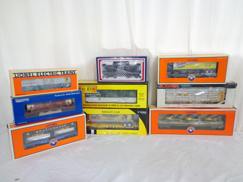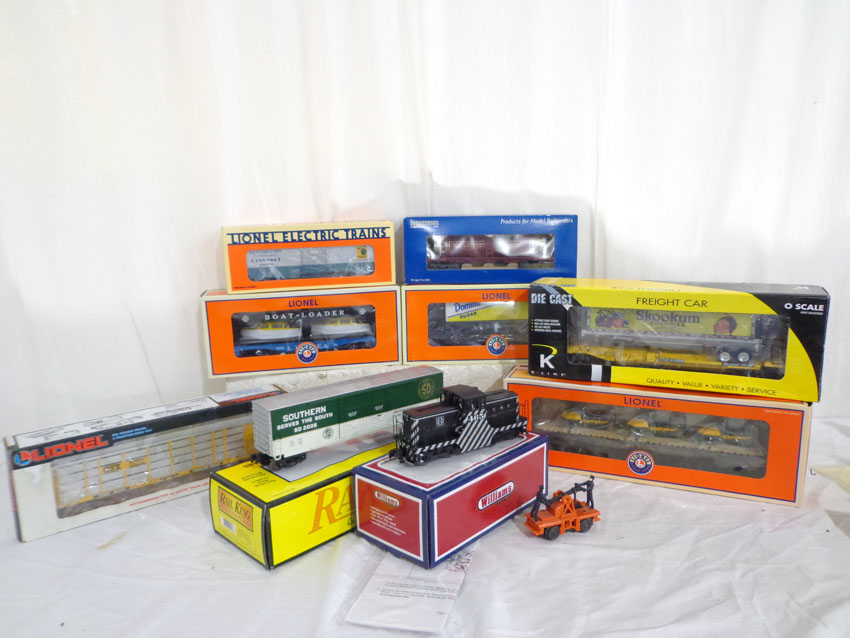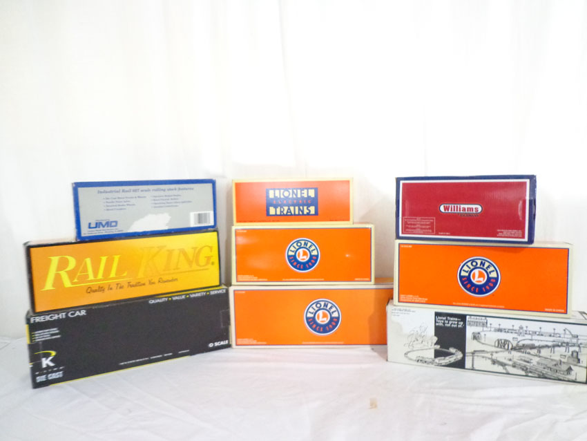 These are ten Assorted Manufactures #23102 Santa Fe Engine, the Hand Car, and eight Assorted Freight Cars. Our Opinion is that they are generally in Like New or Better Condition. Nine Original Boxes. All Origial in our Opinion. Please add $50.00 for US-48 Shipping and Insurance (more west of the Mississippi).