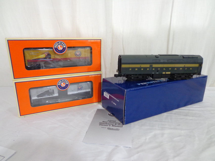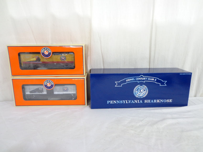 Mint Lionel #24510 Pennsylvania Sharknose B Unit, #39215 Niagara Century Club Box Car, and #39237 Union Pacific Club II Box Car/OBs