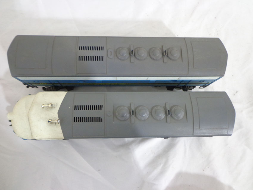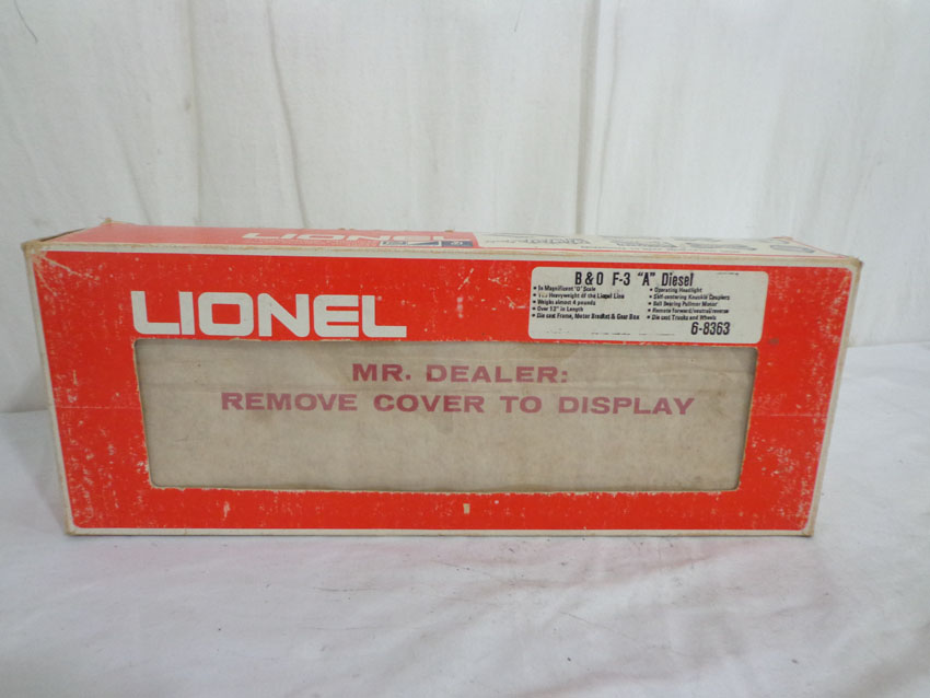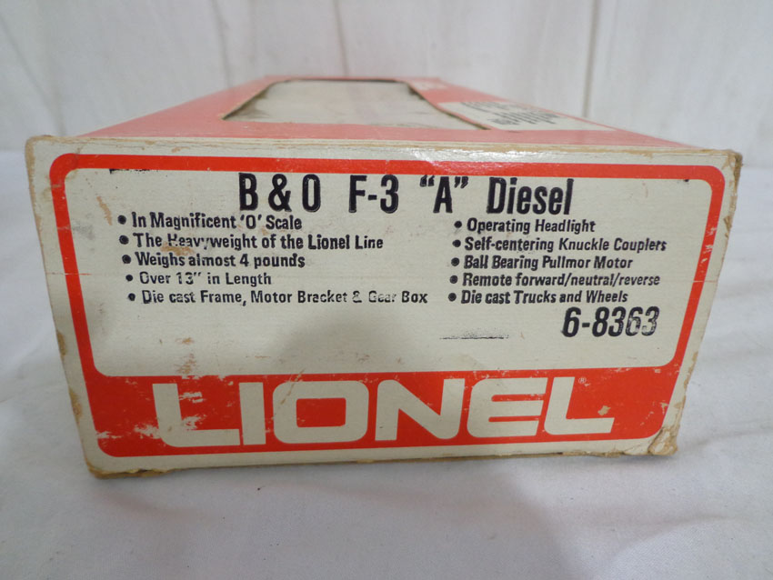 These are the #8363 Baltimore and Ohio Engine and the #8468 Baltimore and Ohio B Unit that Lionel made in the 1970s. Our Opinion is that they are generally in LIke New Minus Condition. Original Box. All Original in our Opinion. Please add $45.00 for US-48 Shipping and Insurance (more west of the Mississippi). |