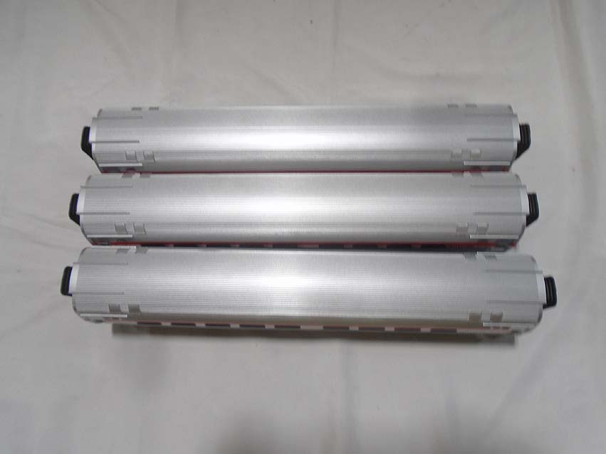 These are the #30-4025 Amtrak F40PH Diesel Engine(399) w/Proto Sound and #44080/48152/44277 Amtrak Passenger Cars that MTH made a few years ago. Our Opinion is that it is generally in Excellent to Like New Condition. No Boxes. Examine closely; what is pictured is what you will receive. Please add $50.00 for US-48 Shipping and Insurance (more west of the Mississippi). |