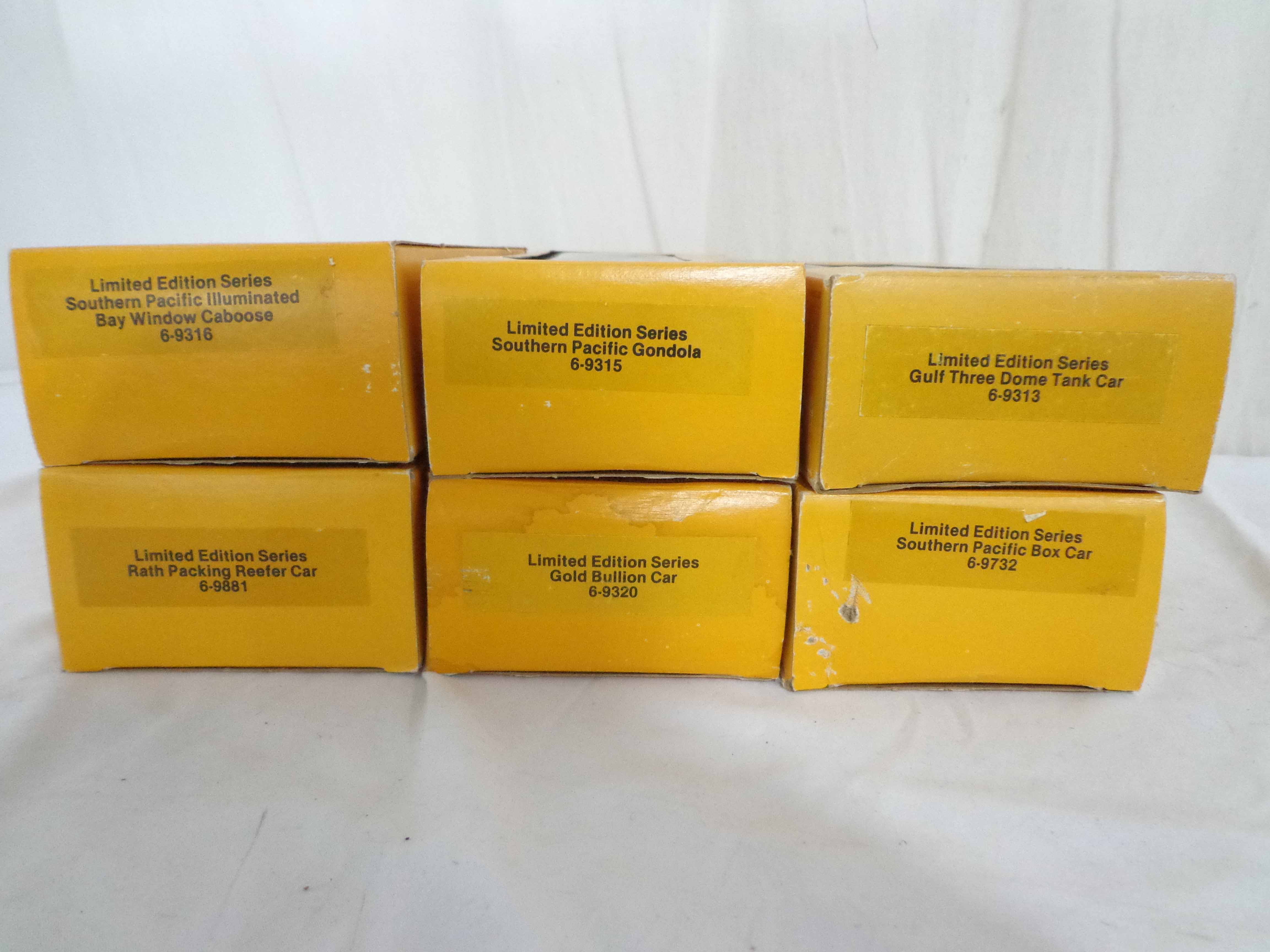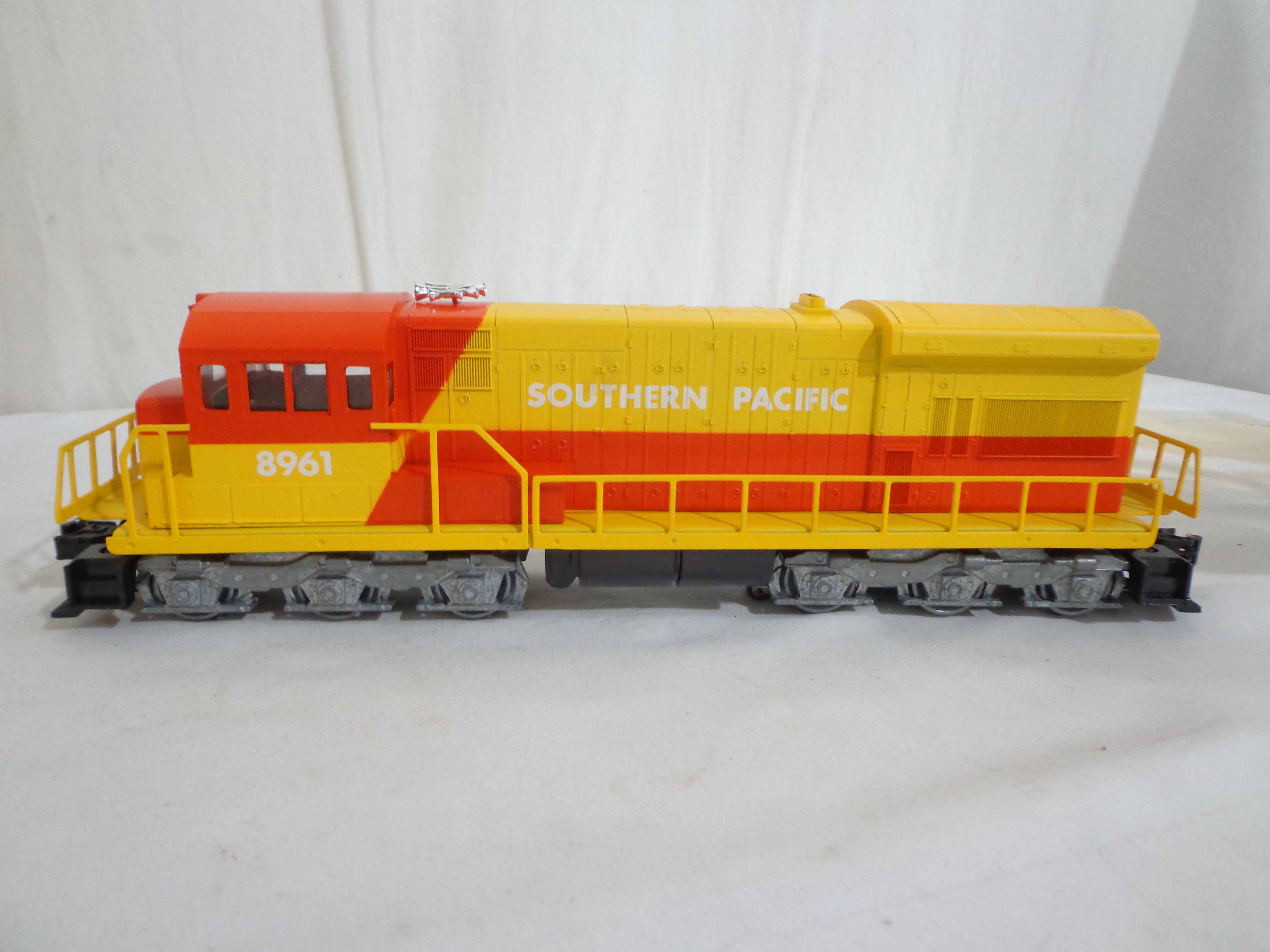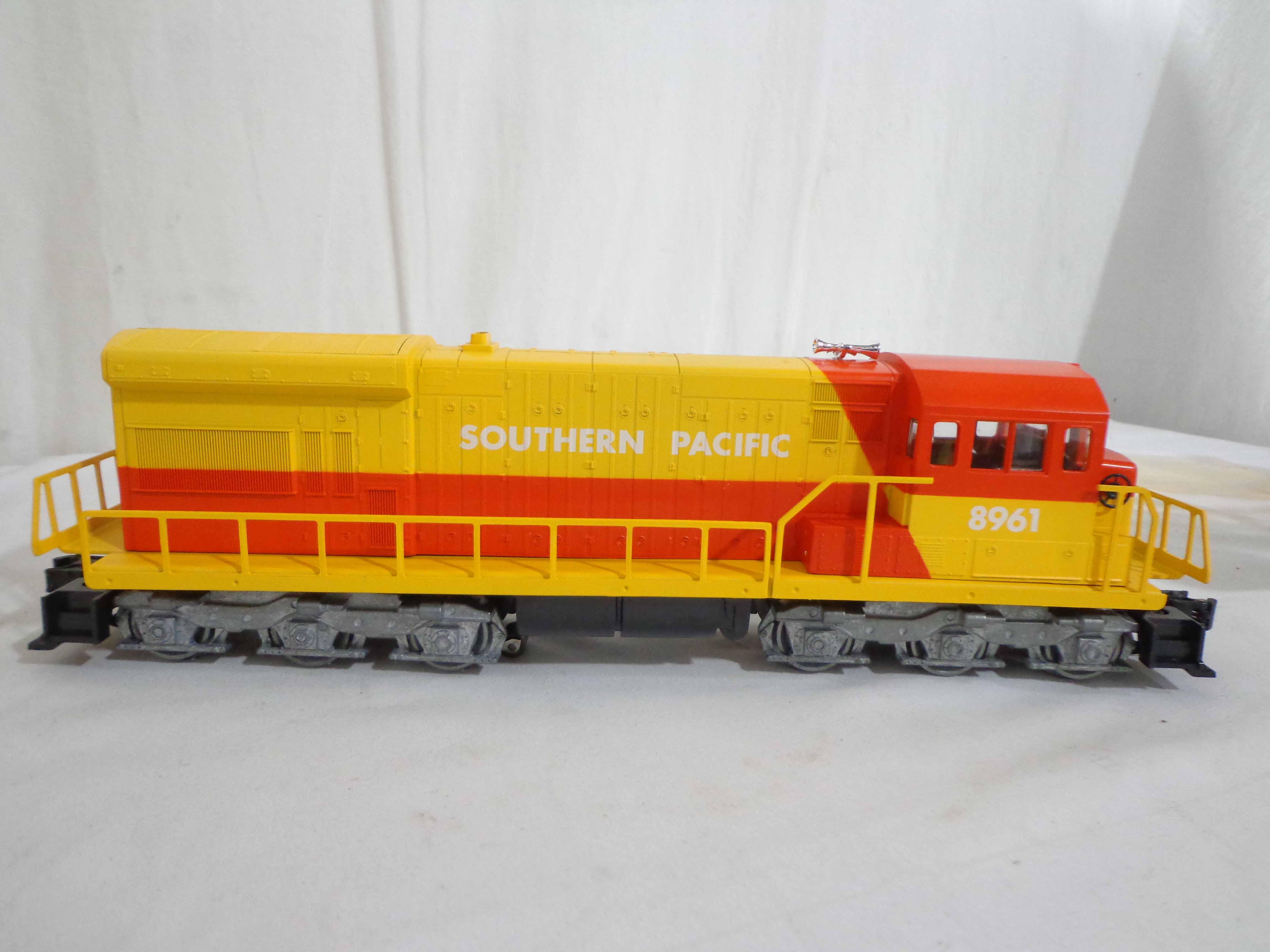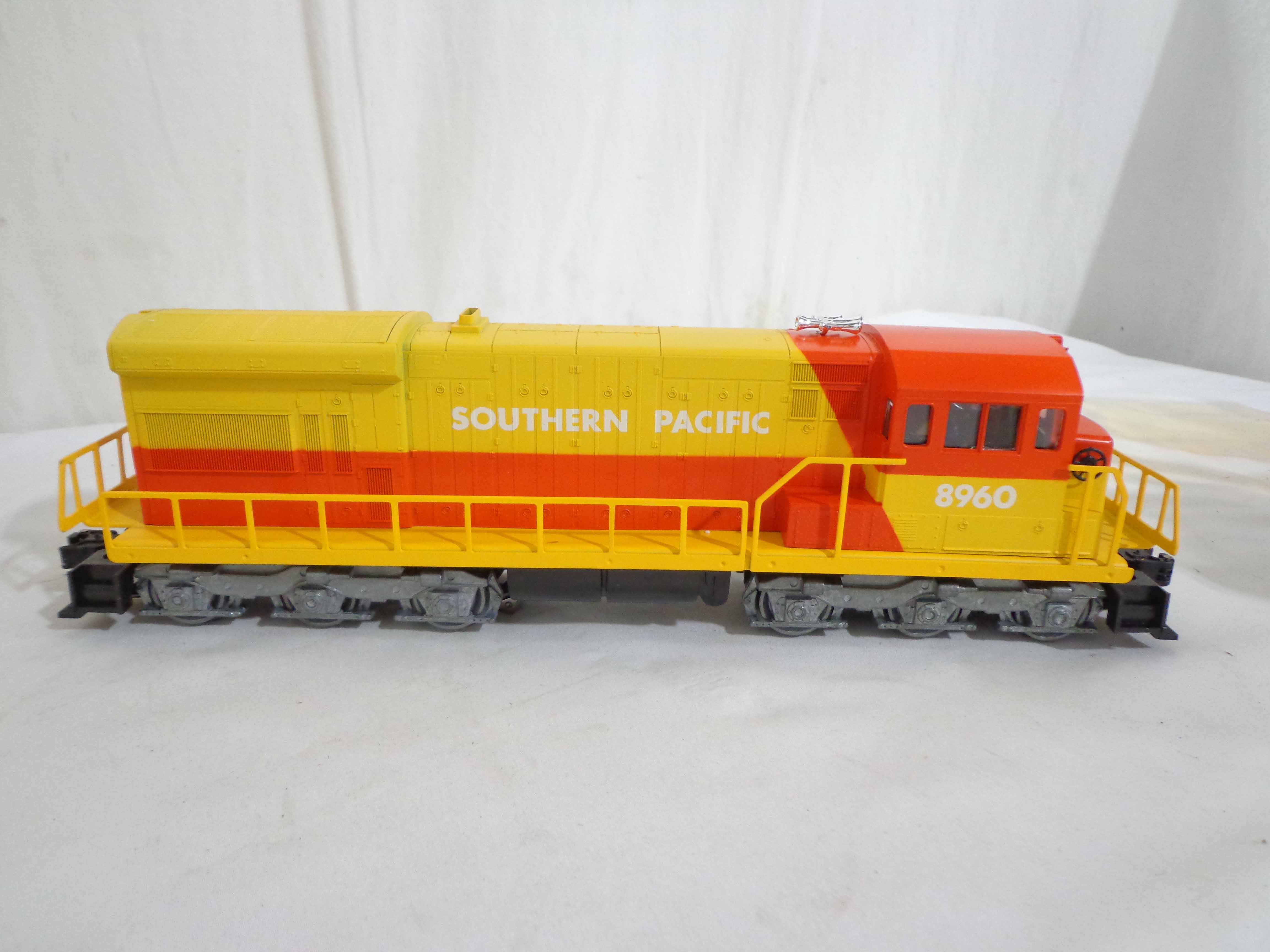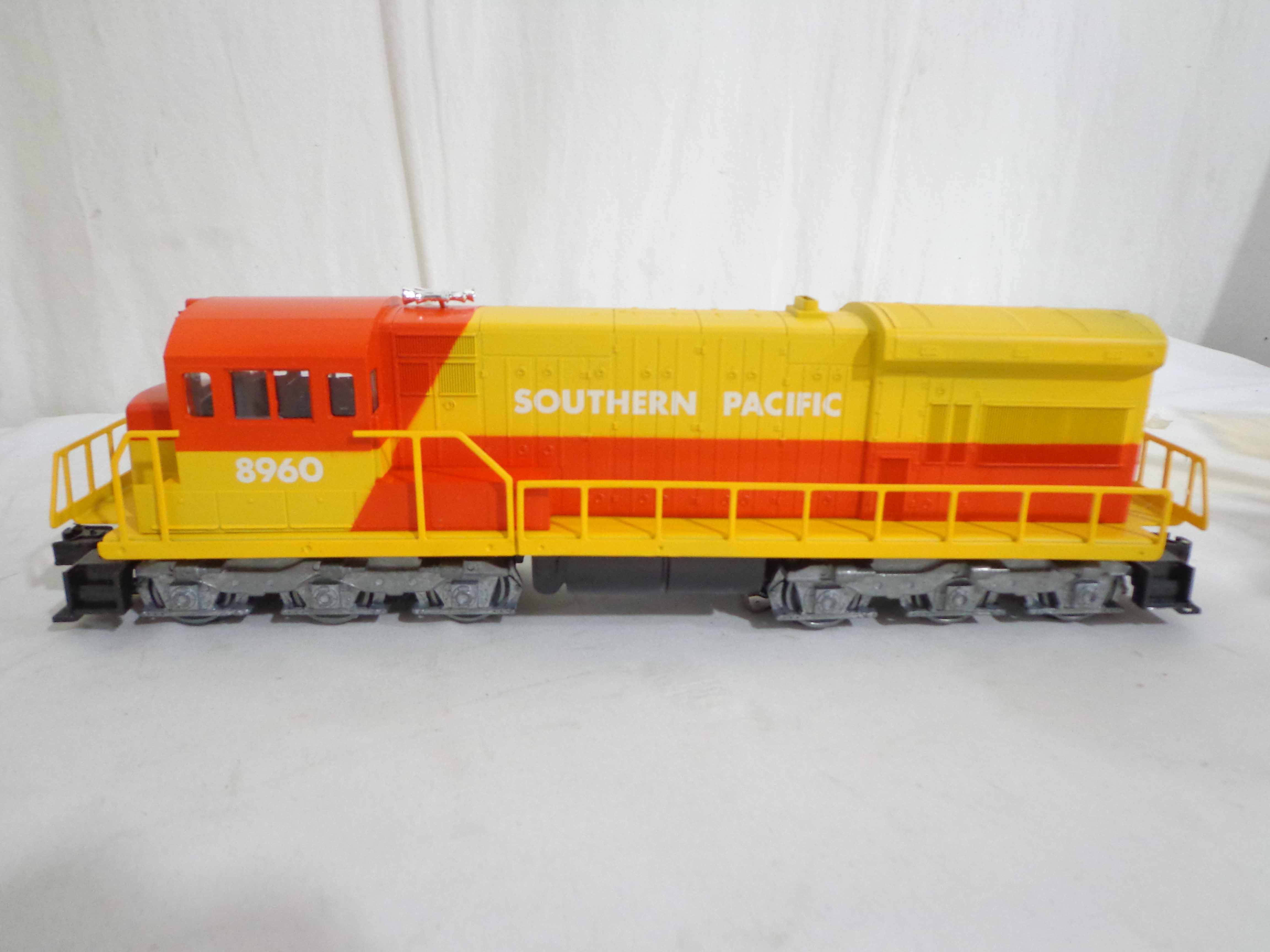 This is the #1970 Southern Pacific Limited Freight Set that Lionel made circa 1979. This Set includes the #8960 Southern Pacific U36C Powered Diesel Locomotive, the #8961 Non-Powered SP Diesel Locomotive, the #9315 SP Gondola, the #9320 Gold Bullion Car, the #9313 Gulf Three Dome Tank Car, the #9732 Silver Southern Pacific Box Car, the #9881 Rath Packing Refrigerator Car and the #9316 SP Illuminated Bay Window Caboose.Our Opinion is that the Set is generally in Mint Condition, test ran. Original Boxes; no Set Box. All Original in our Opinion. Please add $50.00 for US-48 Shipping and Insurance (more west of the Mississippi).