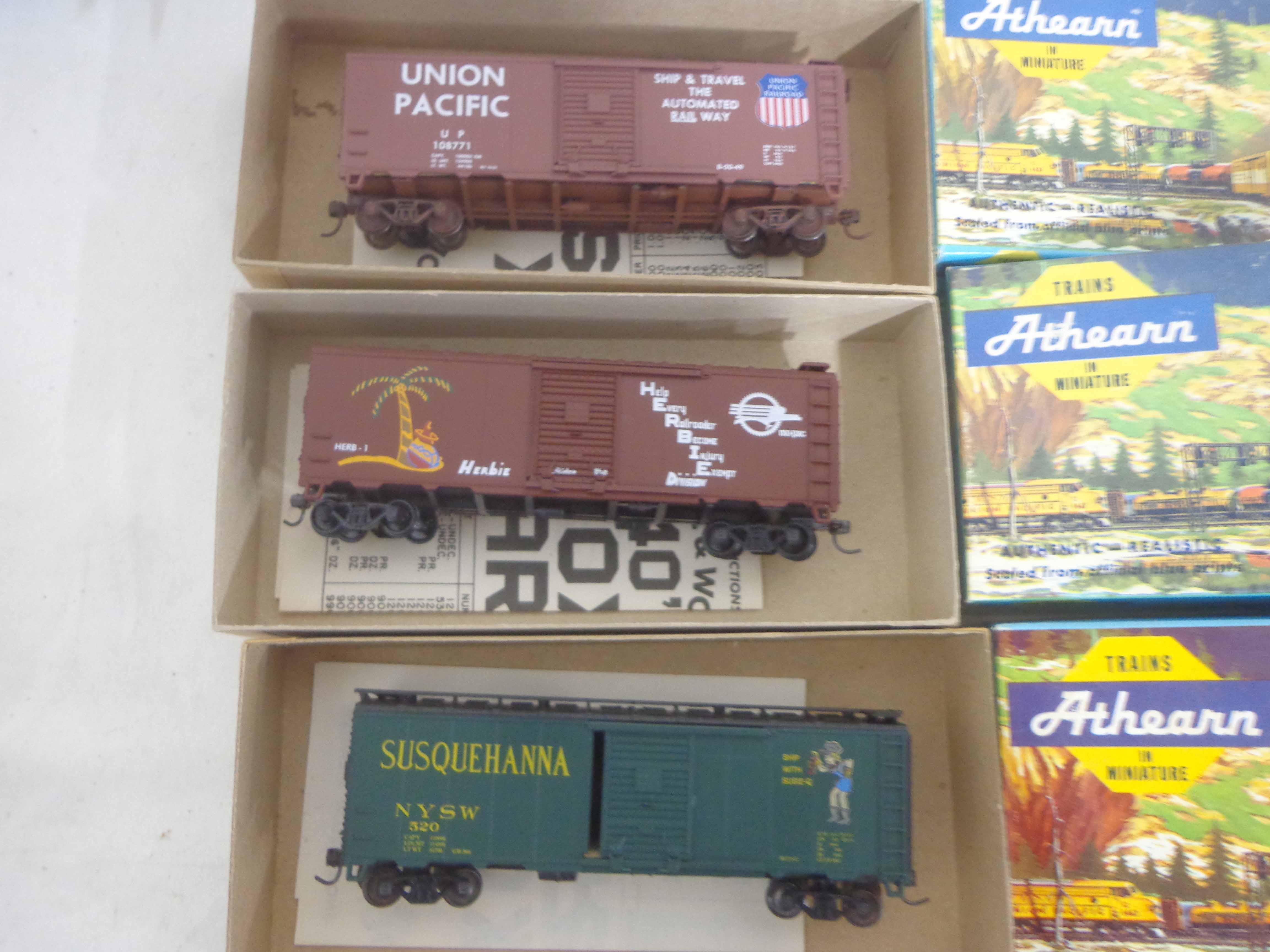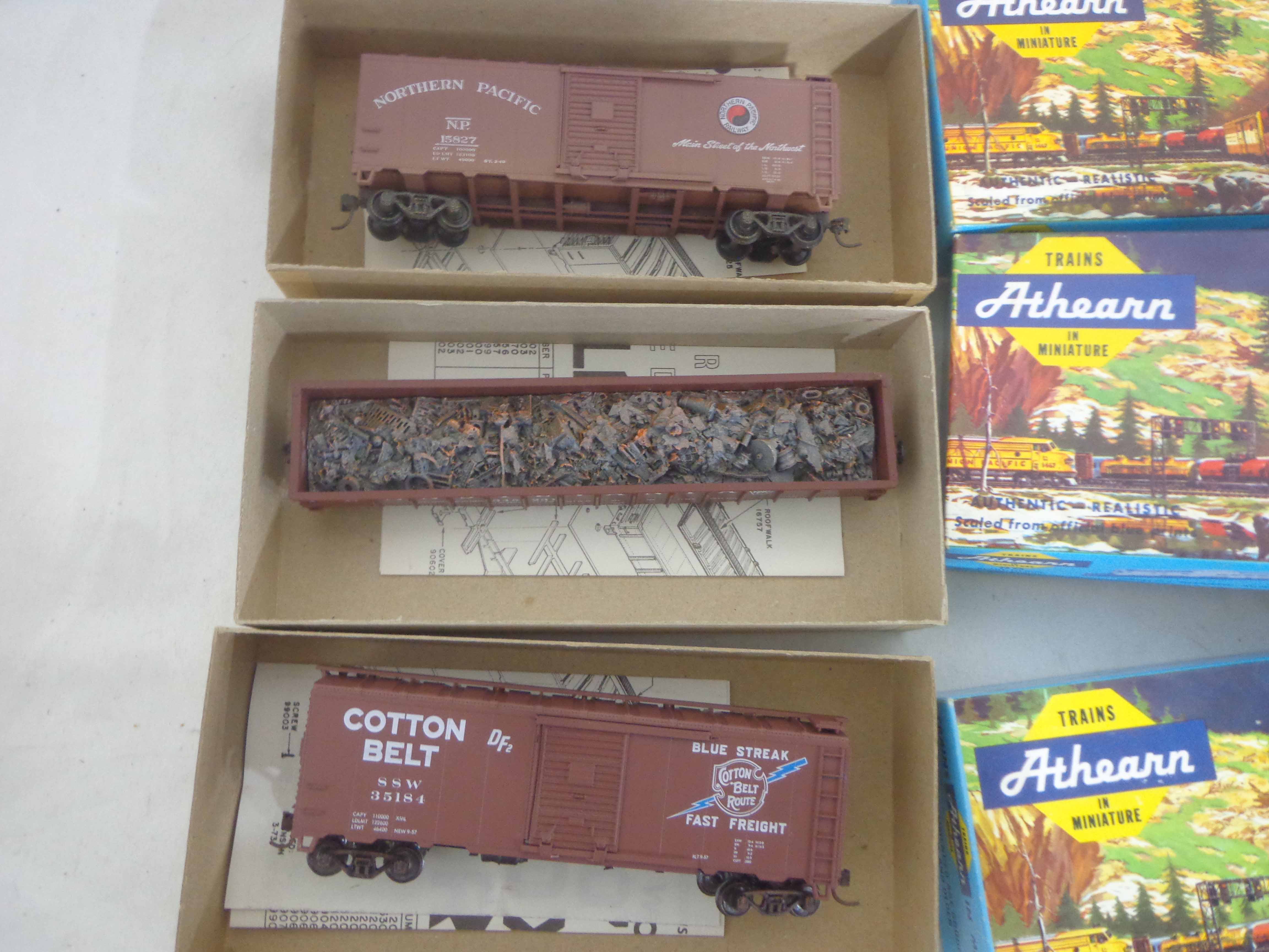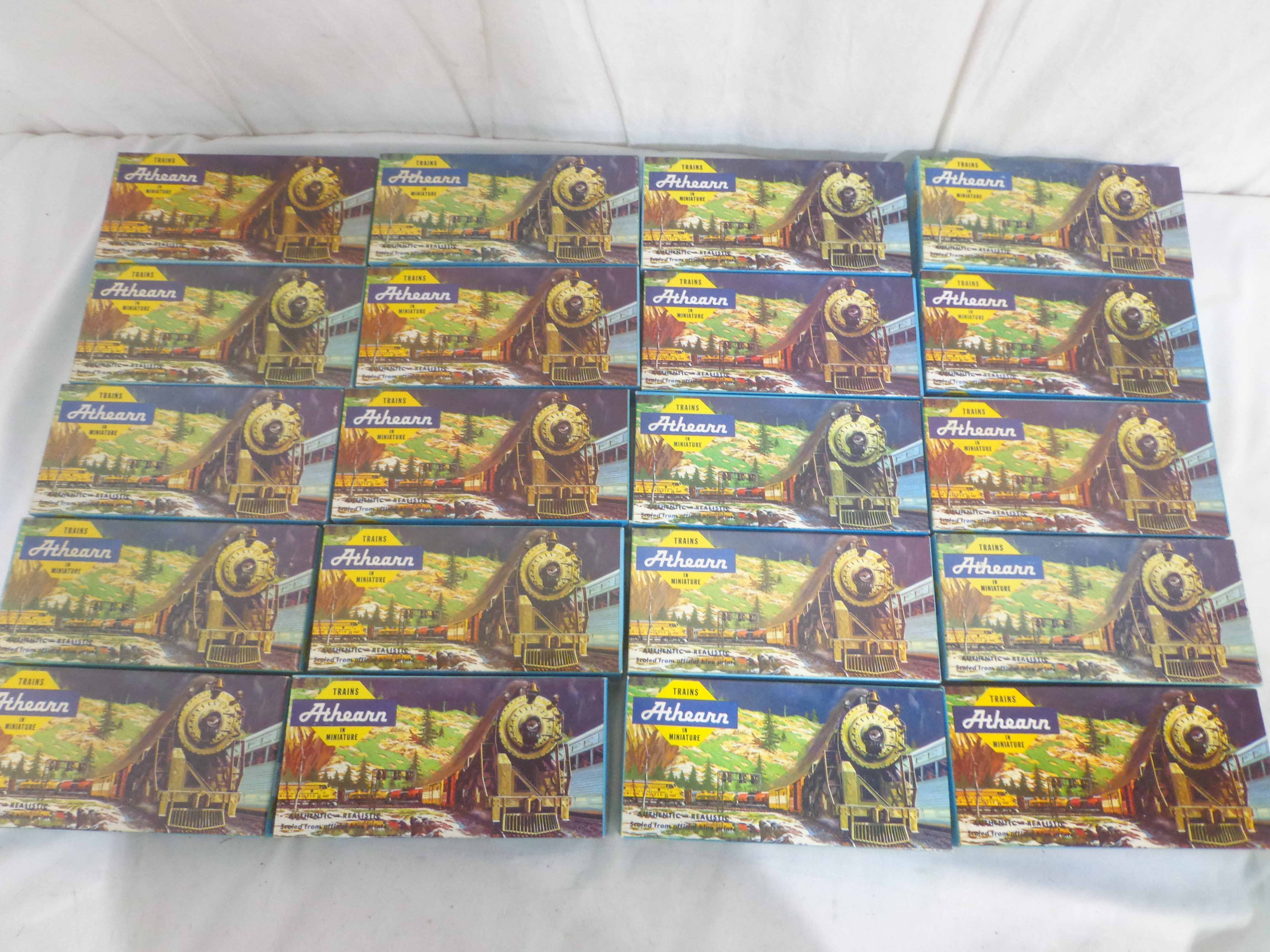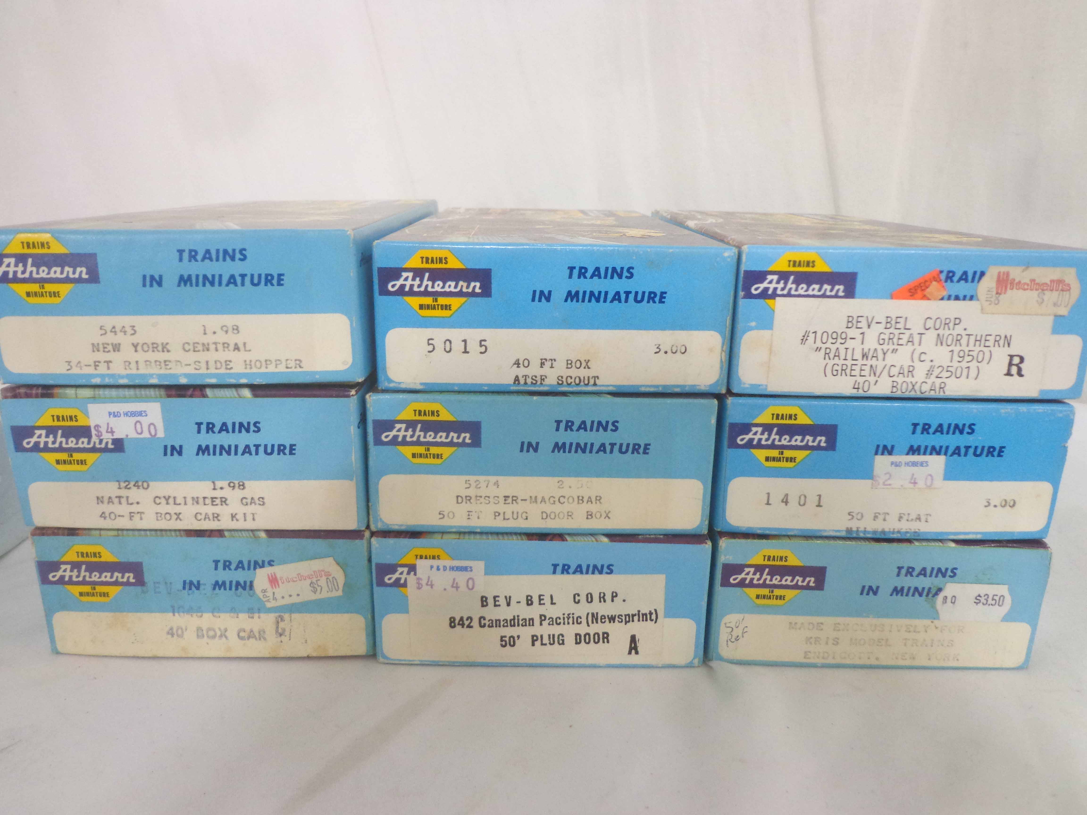 These are twenty-two Assorted Freight Cars and Kits that Athearn made in HO Gauge some time in the past. Twenty Original Boxes. Examine very, very closely; what is clearly pictured is what you will receive. Please add $45.00 for US-48 Shipping and Insurance (more west of the Mississippi). |